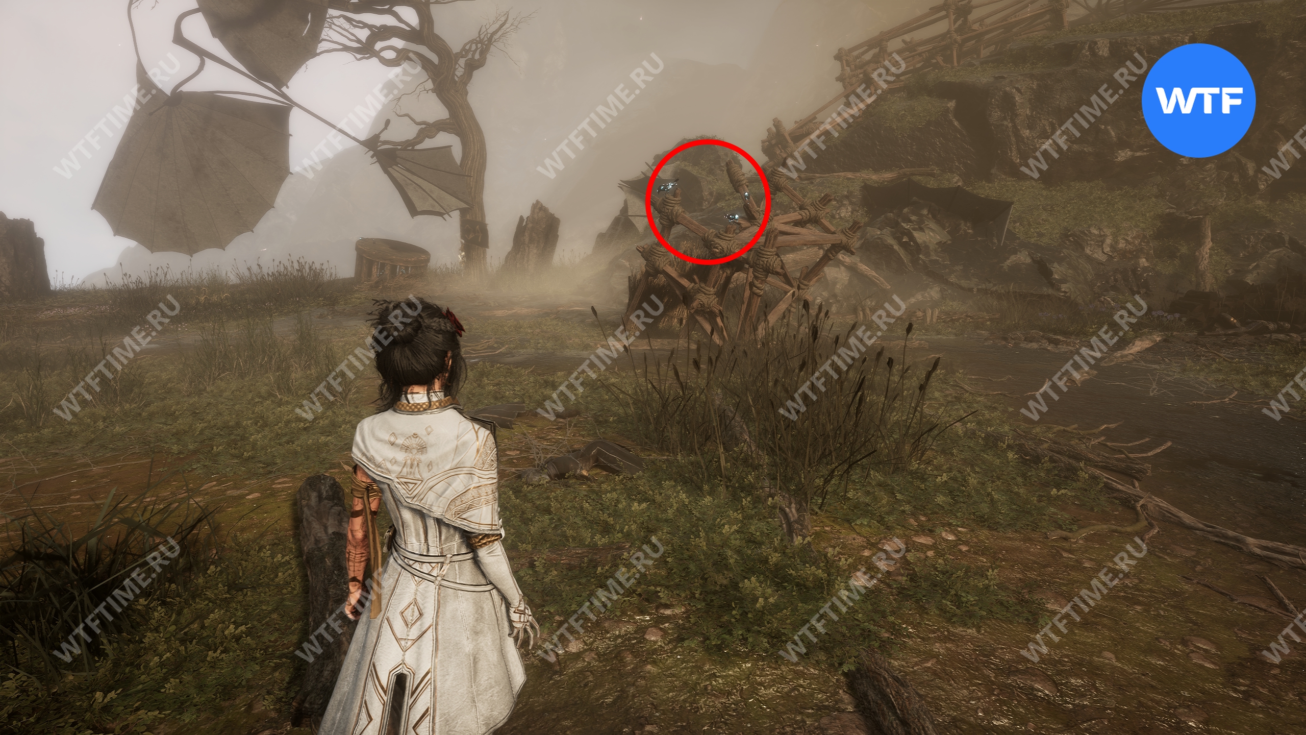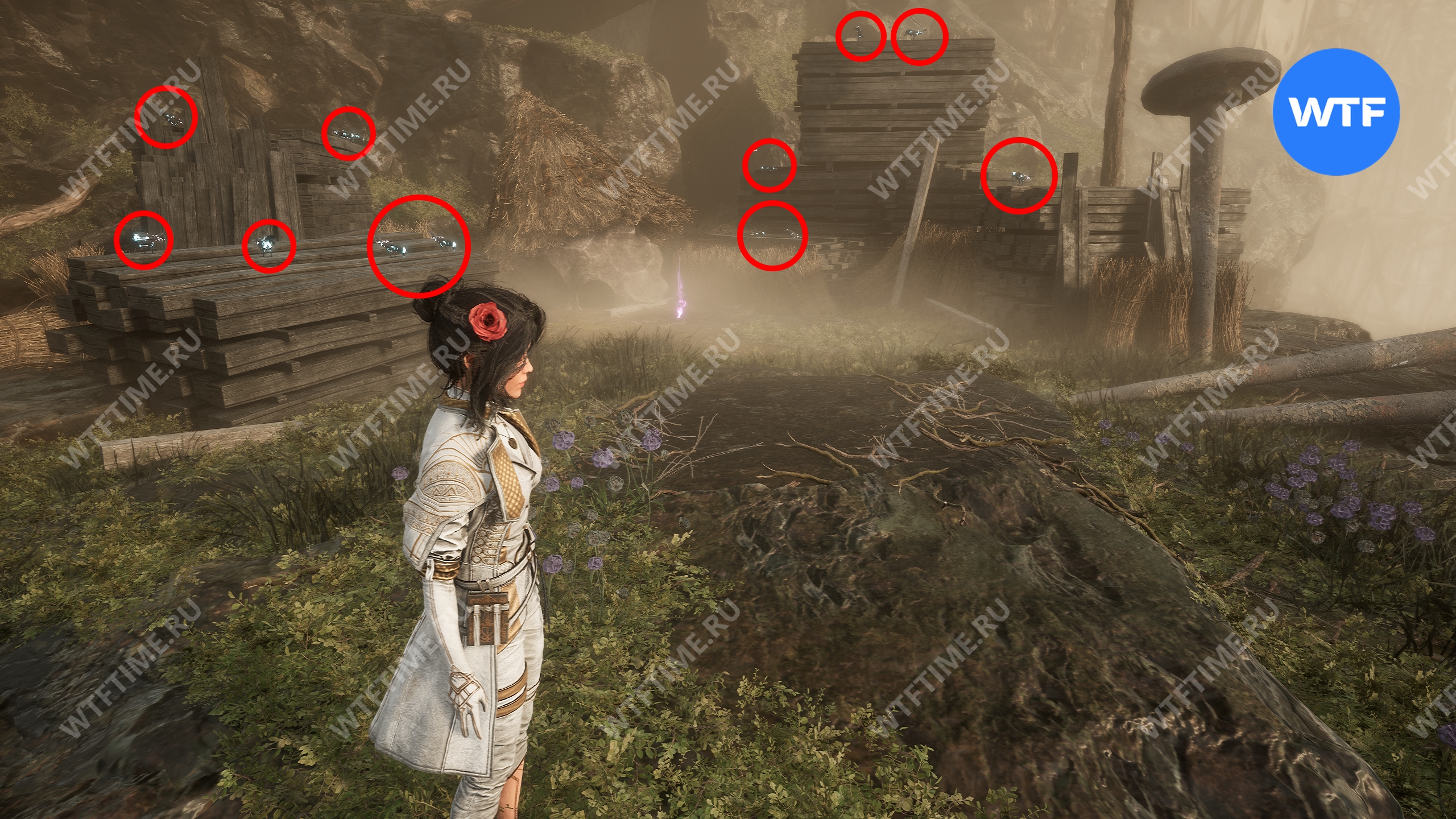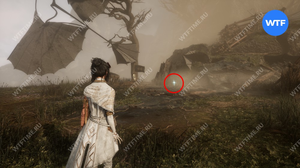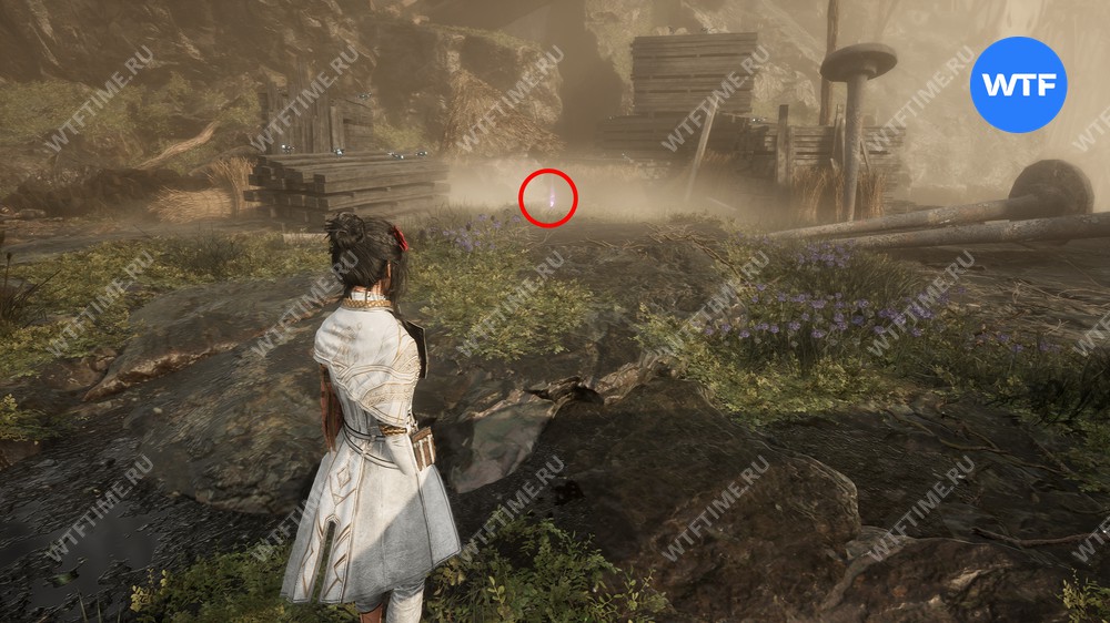 Затем идите в дальний правый угол локации и подберите цвет люмины, лежащий возле деревянных палок. На первый взгляд может показаться, что больше здесь нет ничего интересного, однако это не так.