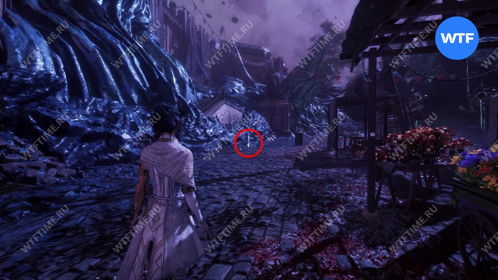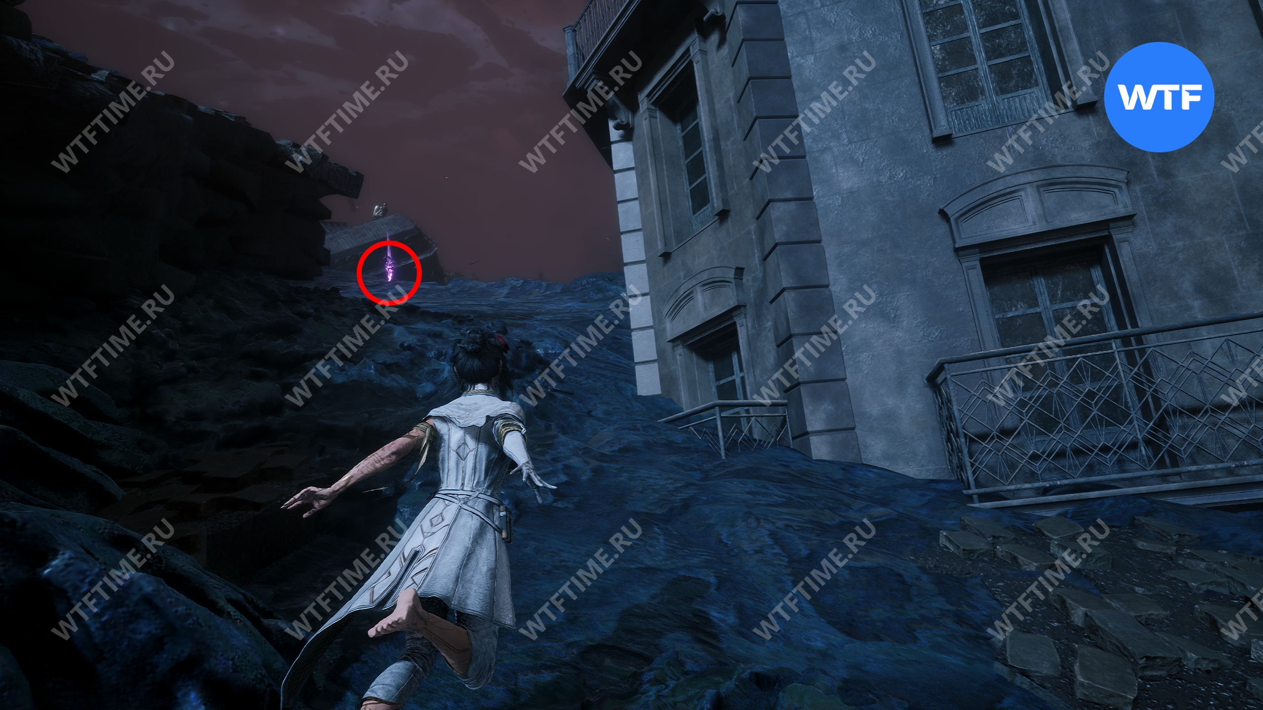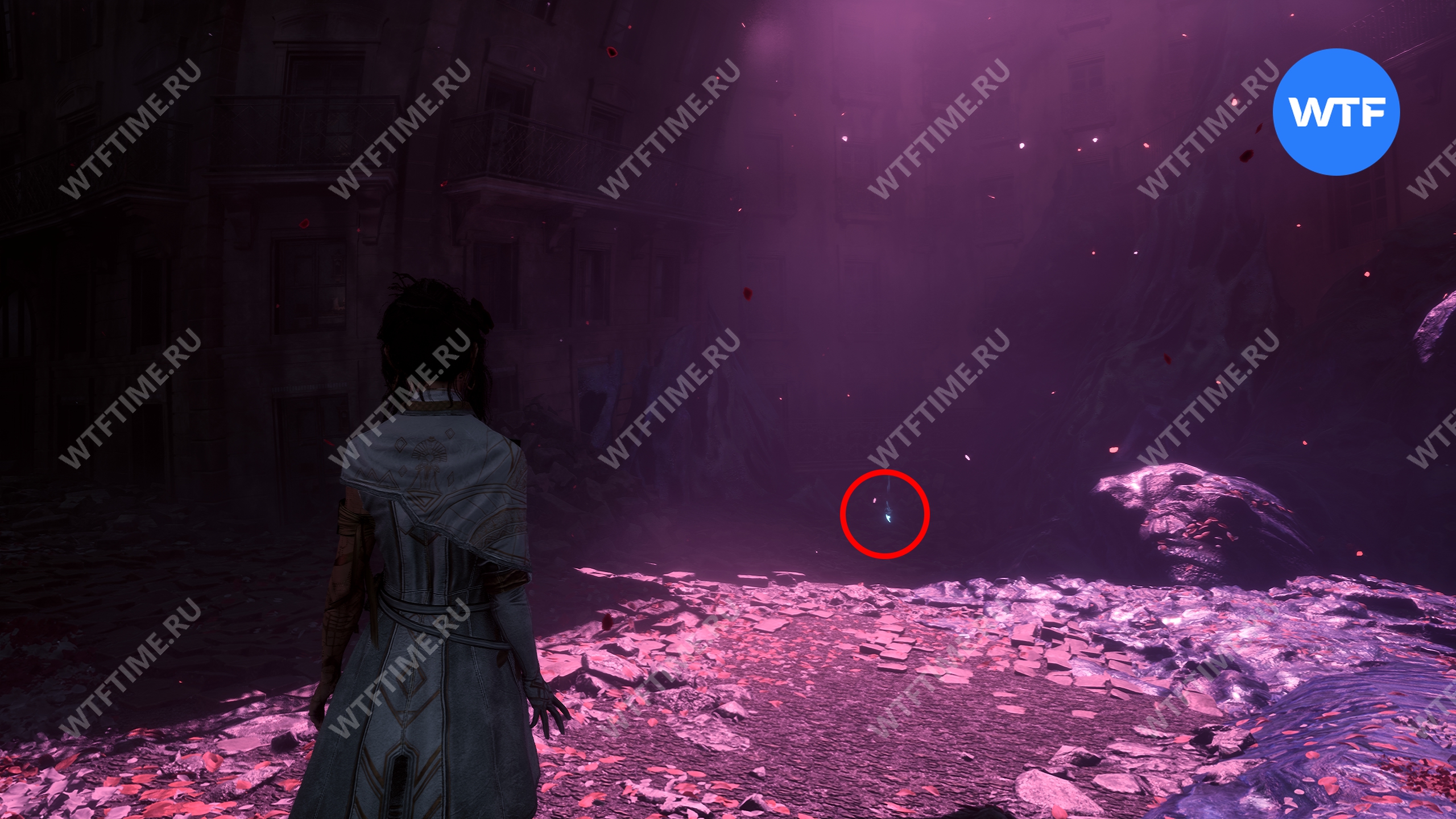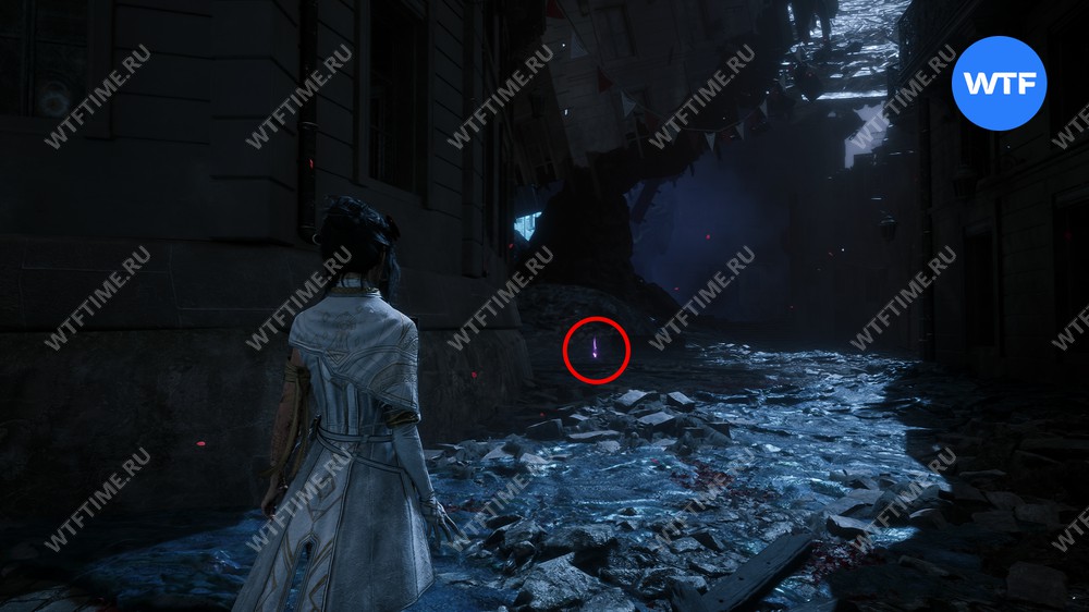 Войдите в переулок слева от предыдущего цвета люмины, разберитесь с врагами, а затем при первой же возможности поверните направо и заберите сверкающий катализатор хромы, лежащий на ступеньках.