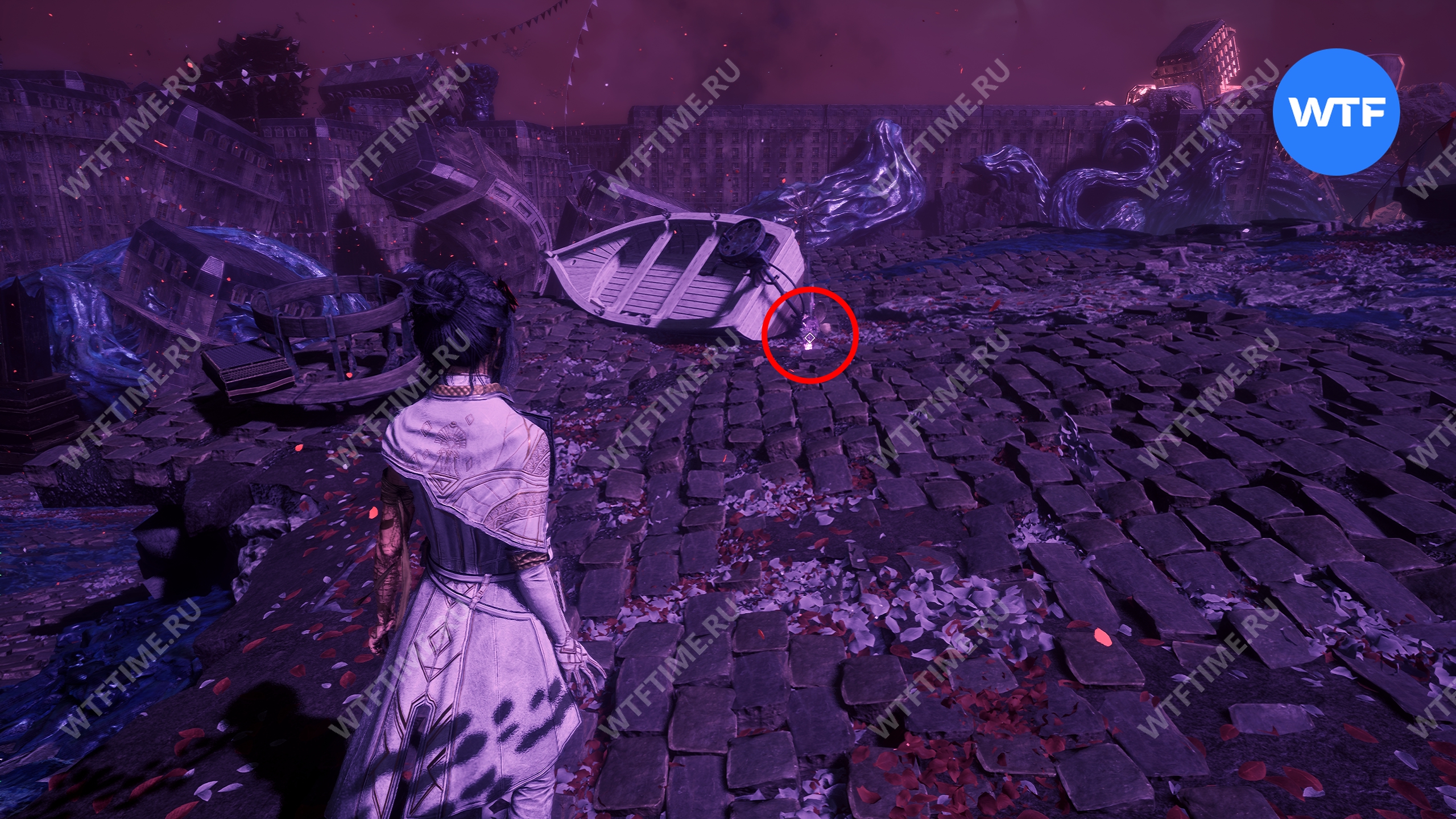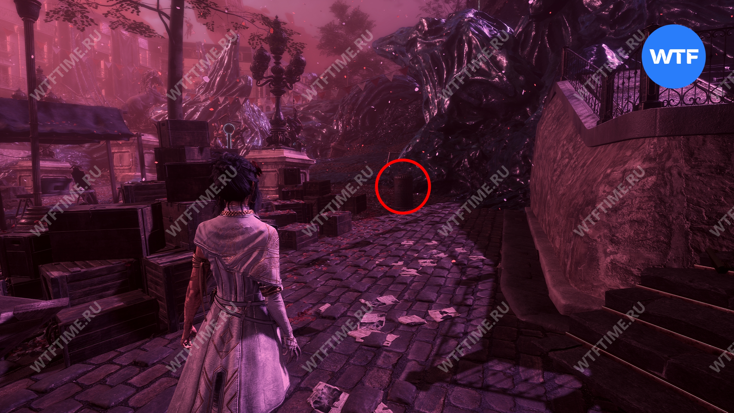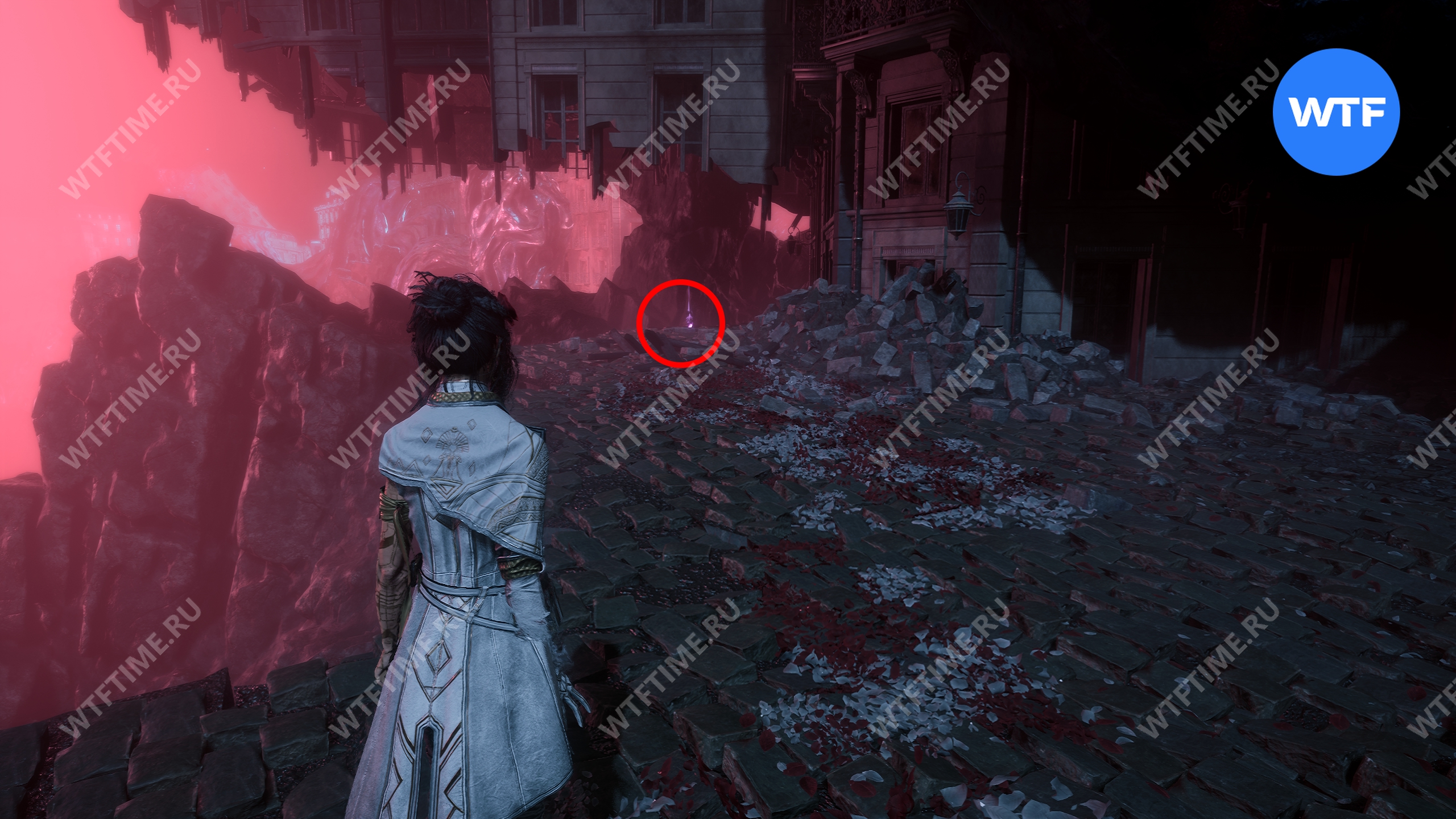 Войдите в переулок слева от предыдущего цвета люмины, разберитесь с врагами, а затем при первой же возможности поверните направо и заберите сверкающий катализатор хромы, лежащий на ступеньках.