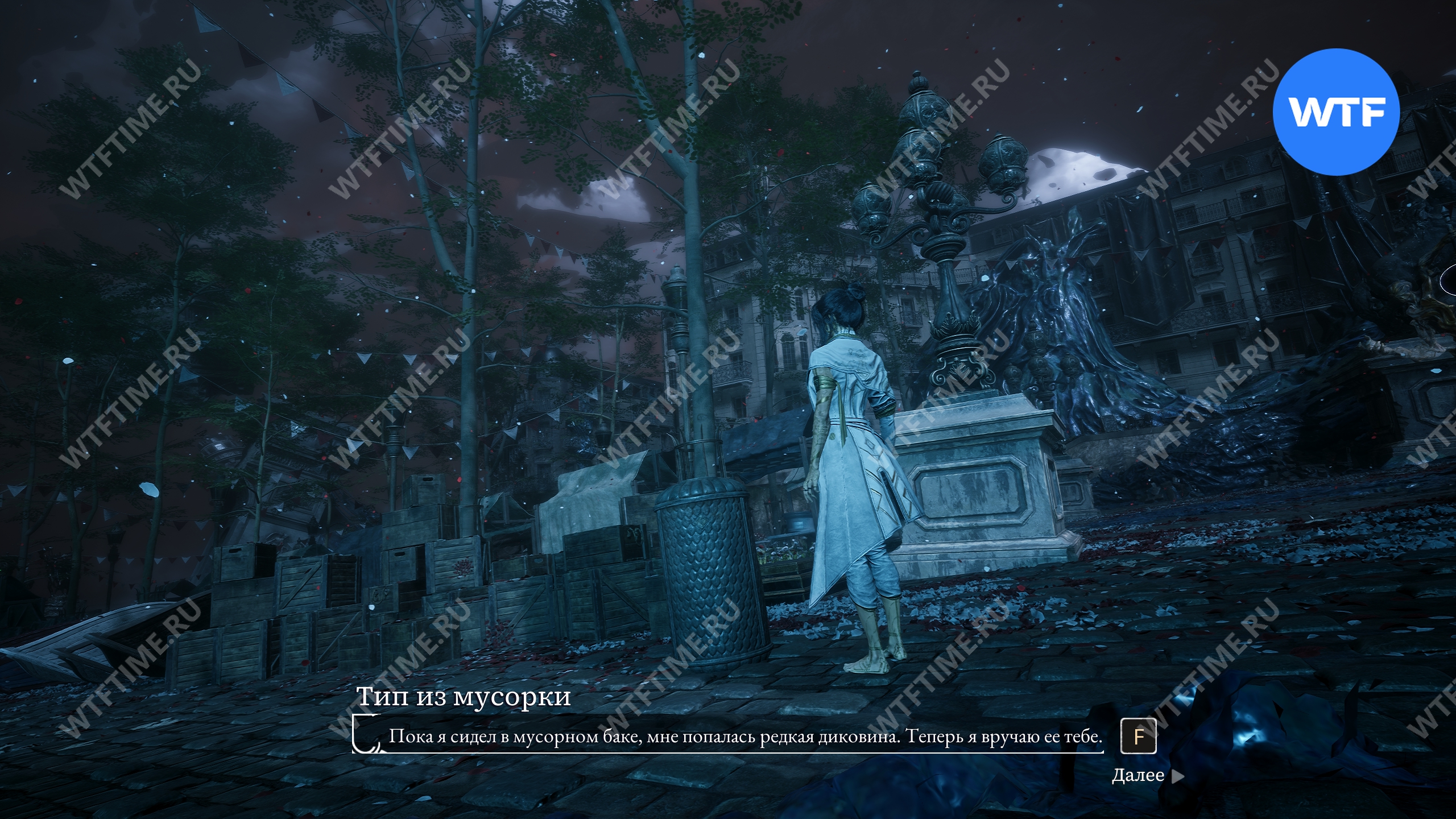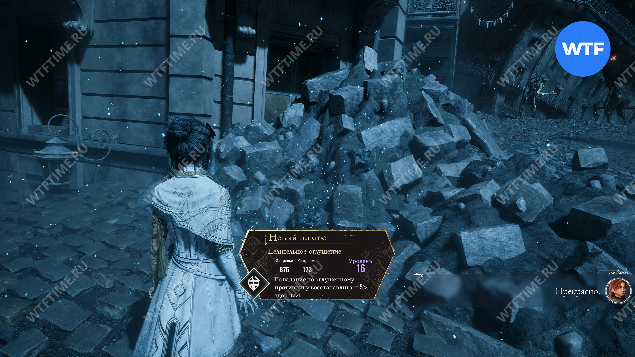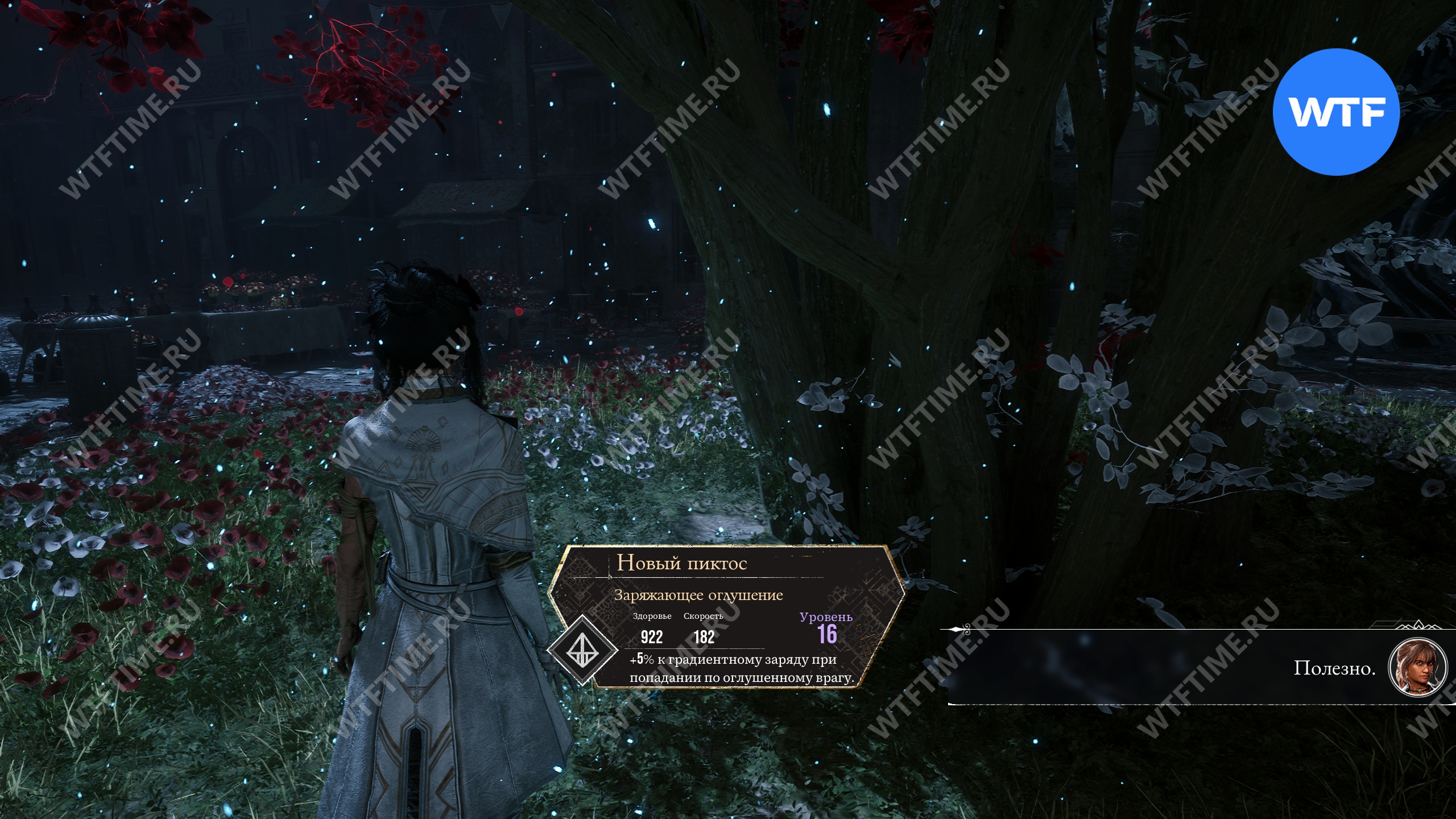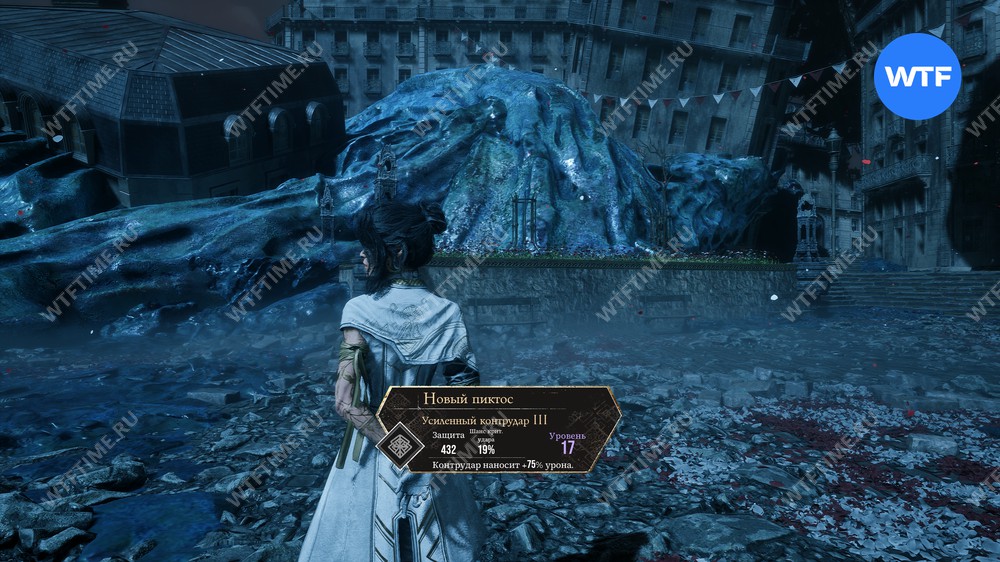 Продолжайте идти вперед, пока не окажетесь на площади с большим деревом и странным мальчиком. Прямо под этим деревом лежит пиктос «Заряжающее оглушение» (уровень 16, здоровье 922, скорость 182).