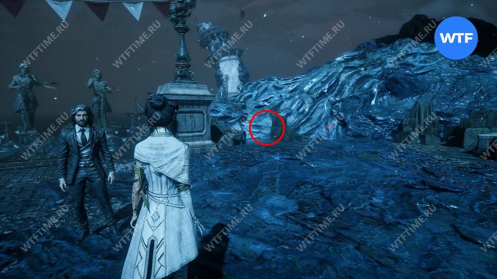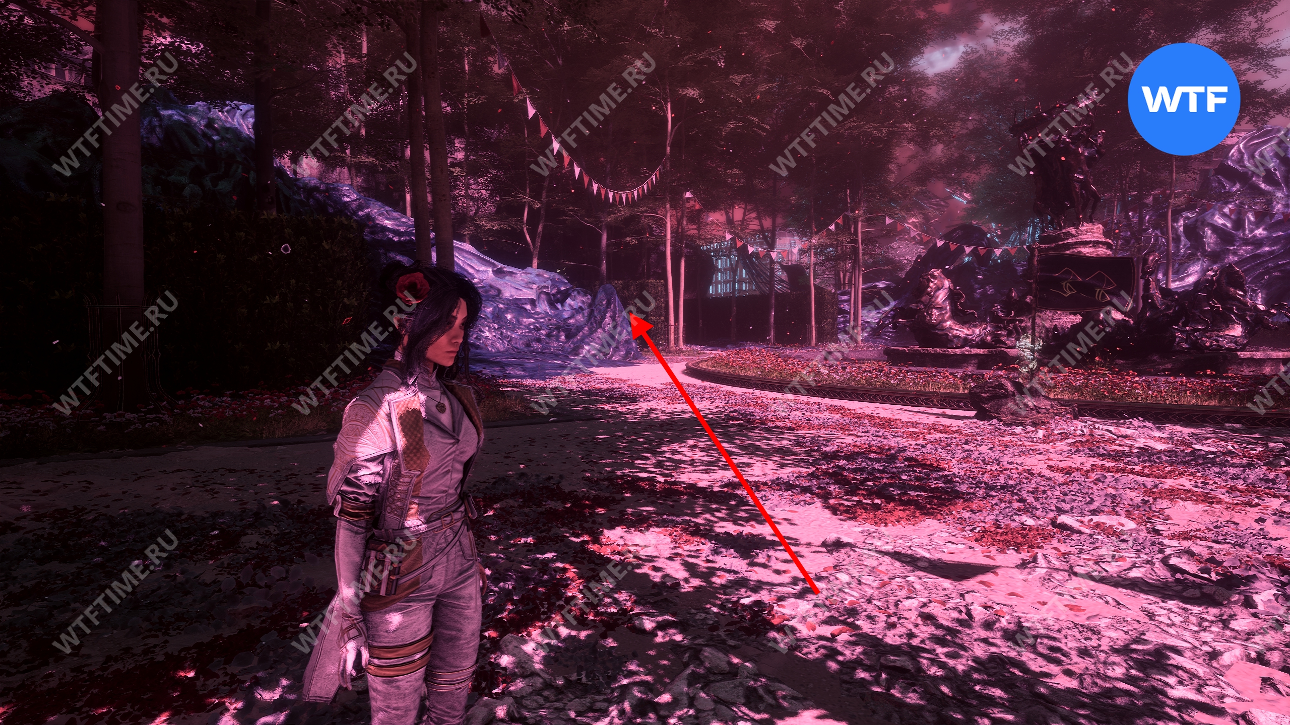 Продолжайте идти вперед, пока не увидите странного мальчика. Поговорите с ним, а затем бегите направо до упора. Там вы найдете черный камень с синими прожилками, на котором можно использовать «Красочный взлом». За ним лежат 4900 хромы.