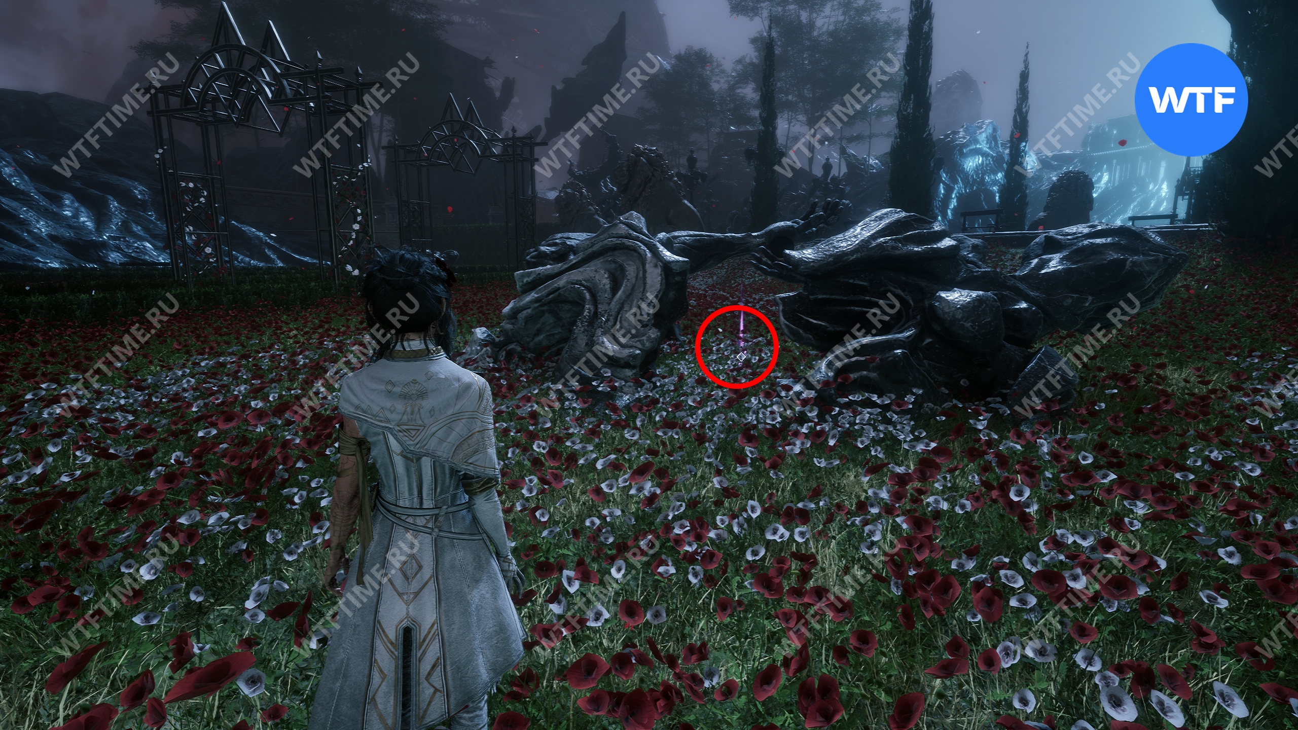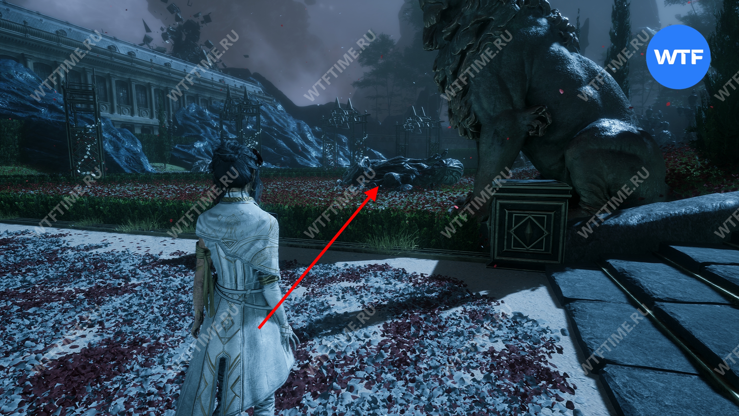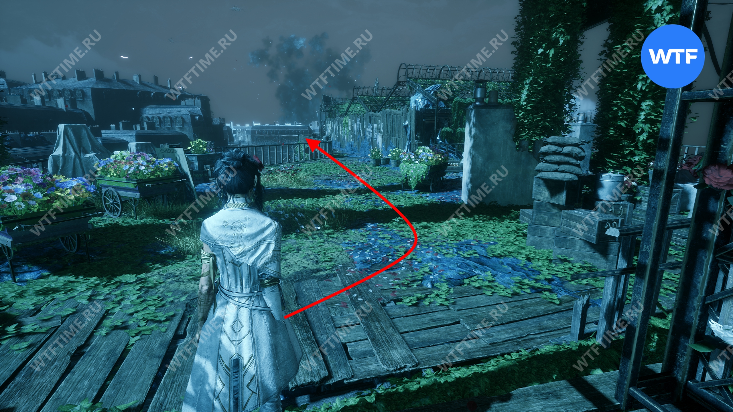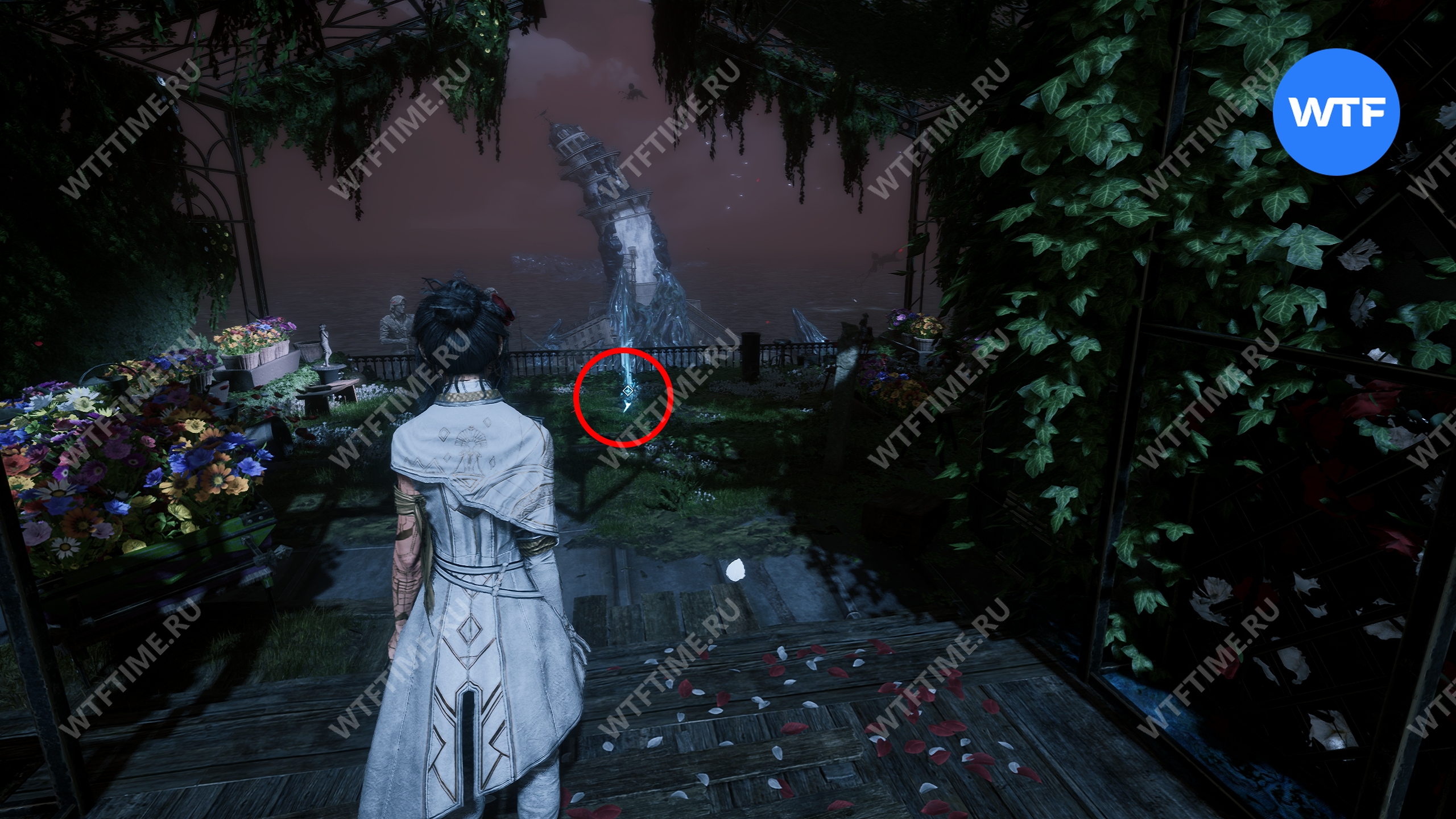Первая лестница слева приведет вас к цвету люмины, который лежит на земле в дальнем левом углу сада.