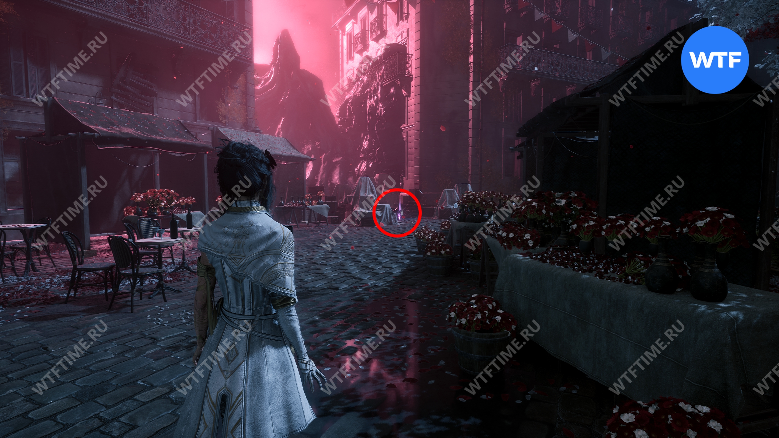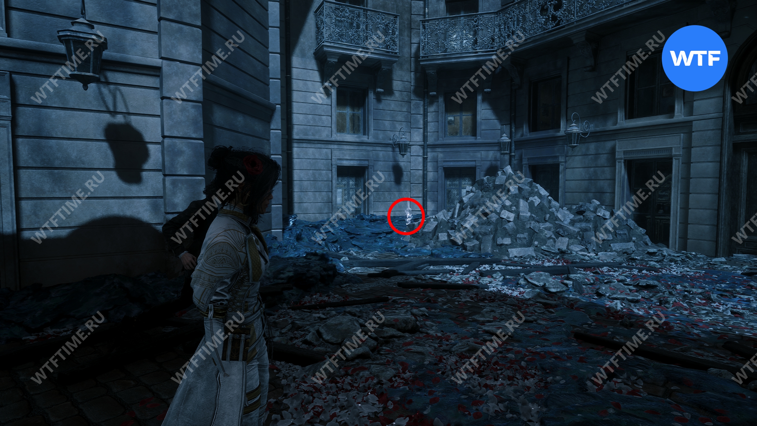 По пути поглядывайте направо, чтобы заметить светящийся предмет между двумя зданиями. Это еще один пиктос «Целительное оглушение». Если у вас он уже имеется, вместо этого вы получите 1520 хромы.