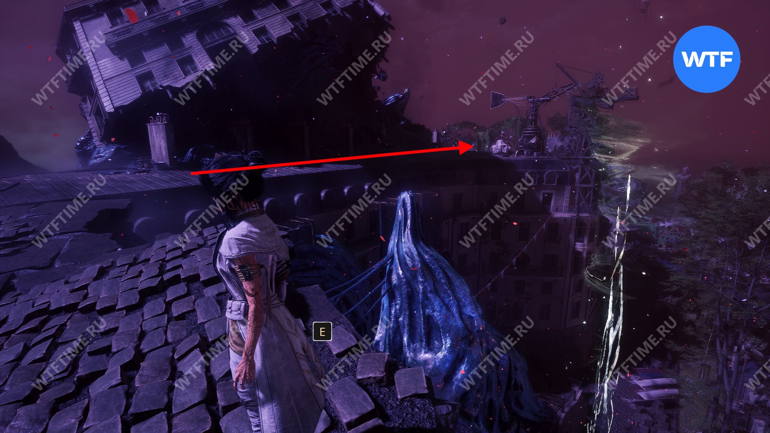 Вернитесь обратно к веревке и теперь от неё идите направо, чтобы найти еще один цвет люмины у стены здания.