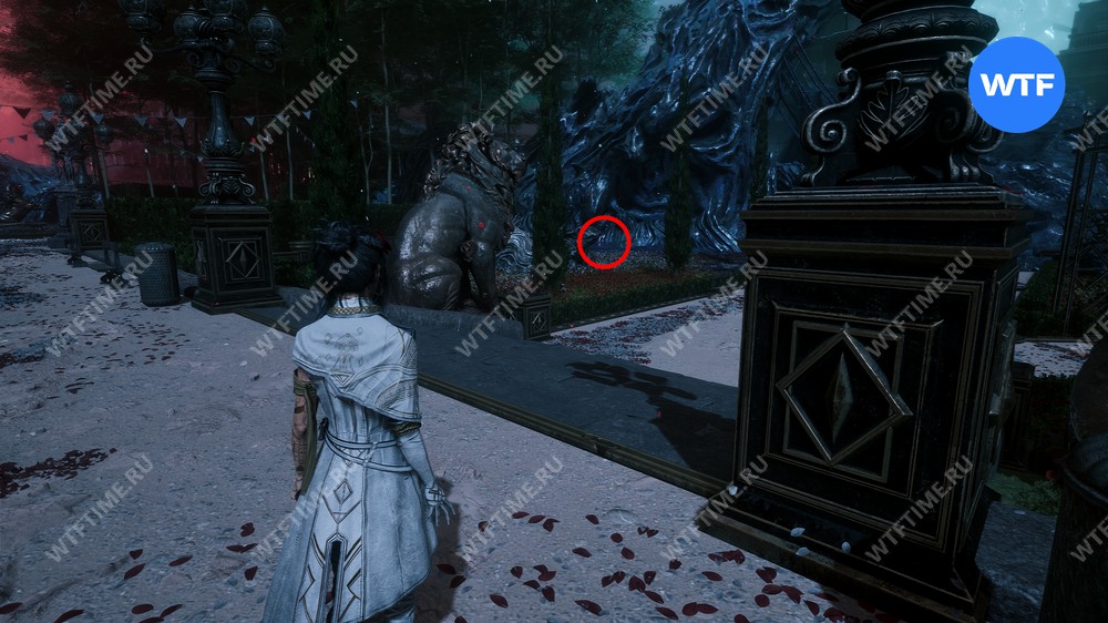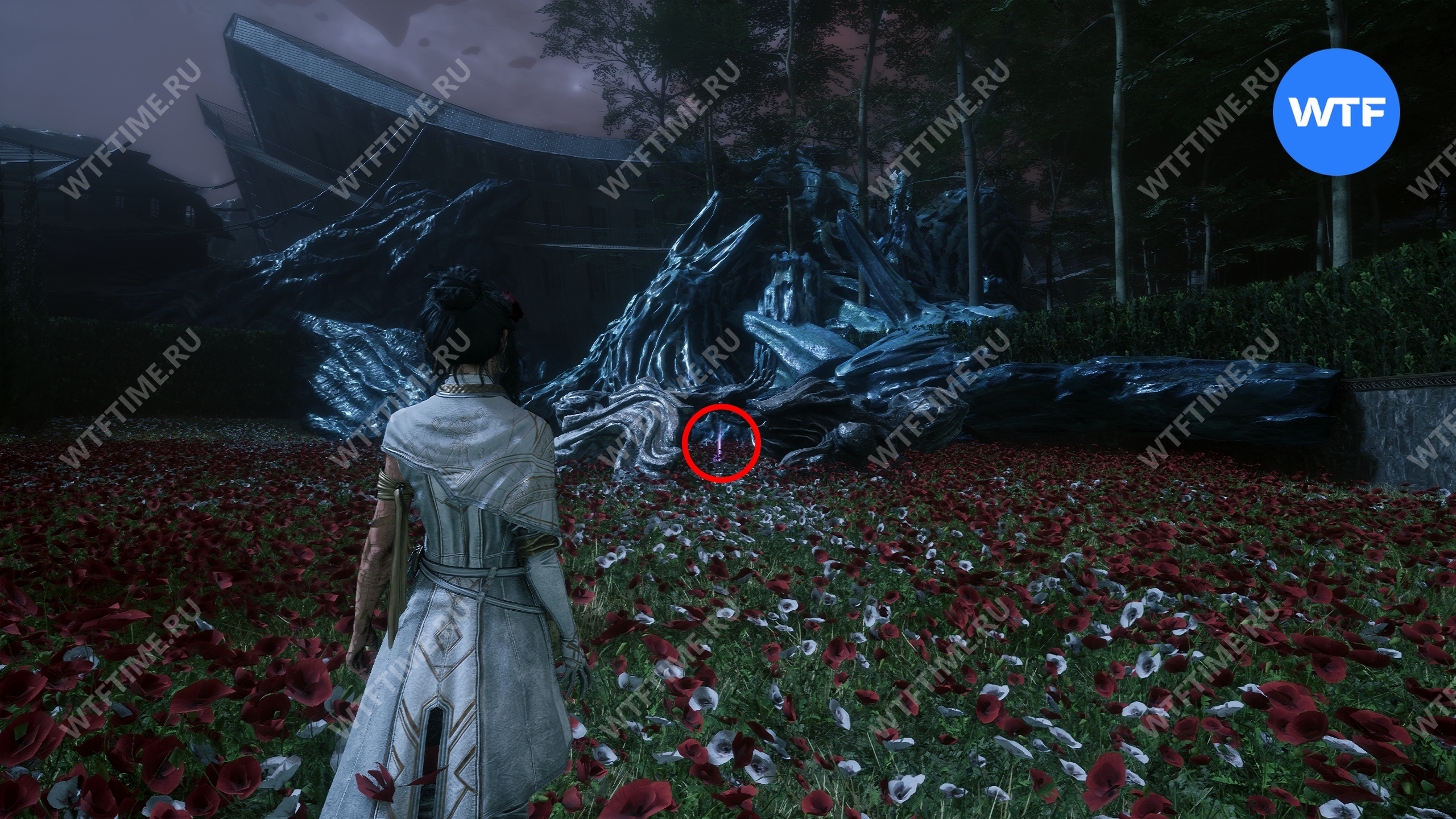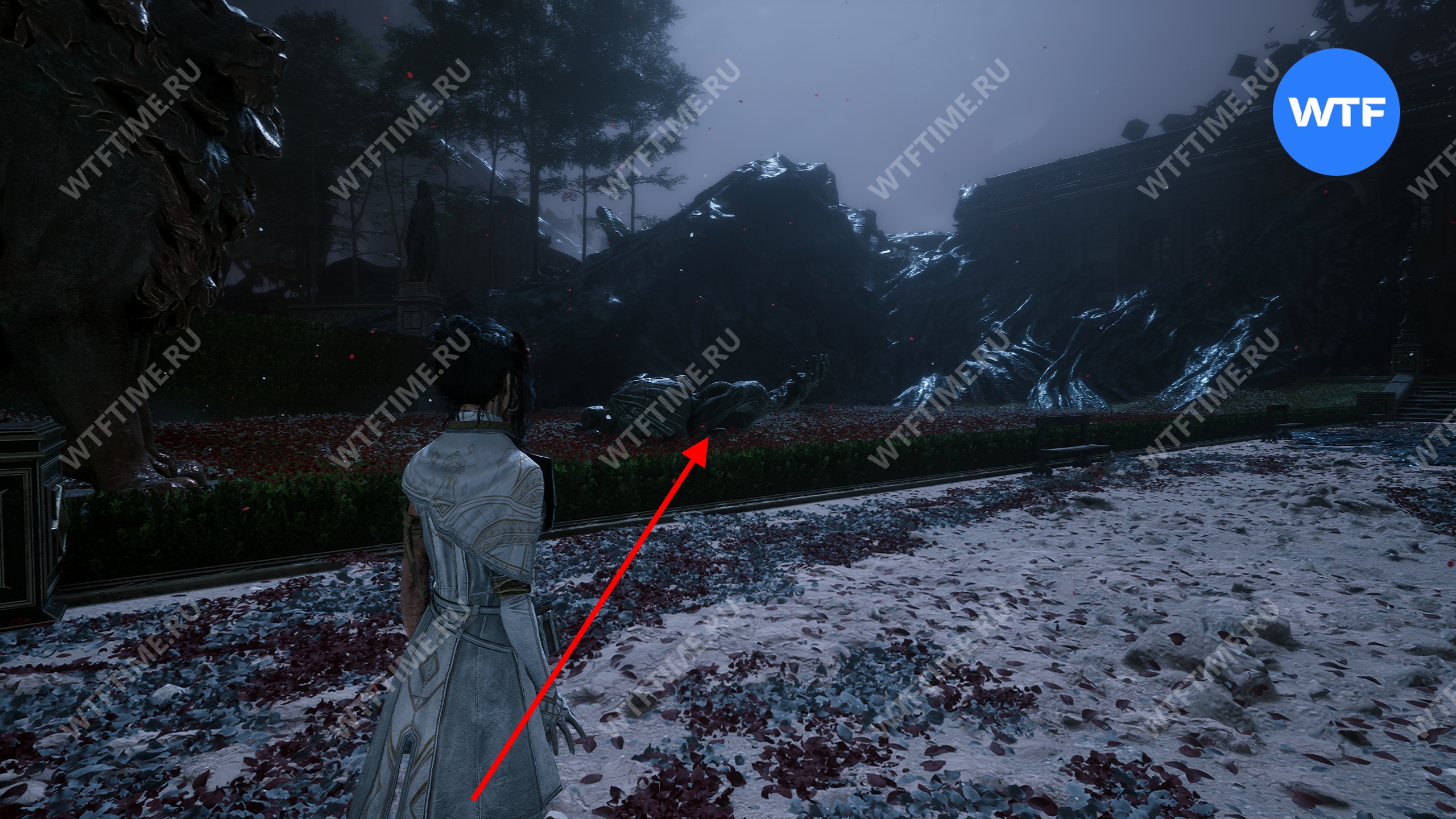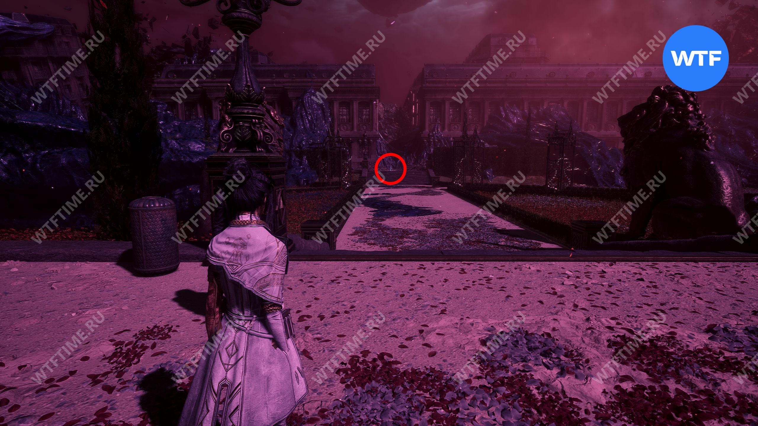 Третья лестница справа приведет вас к еще одному отряду из двух аберраций. Разобравшись с ними, загляните за зеленую изгородь, чтобы найти 2450 хромы.