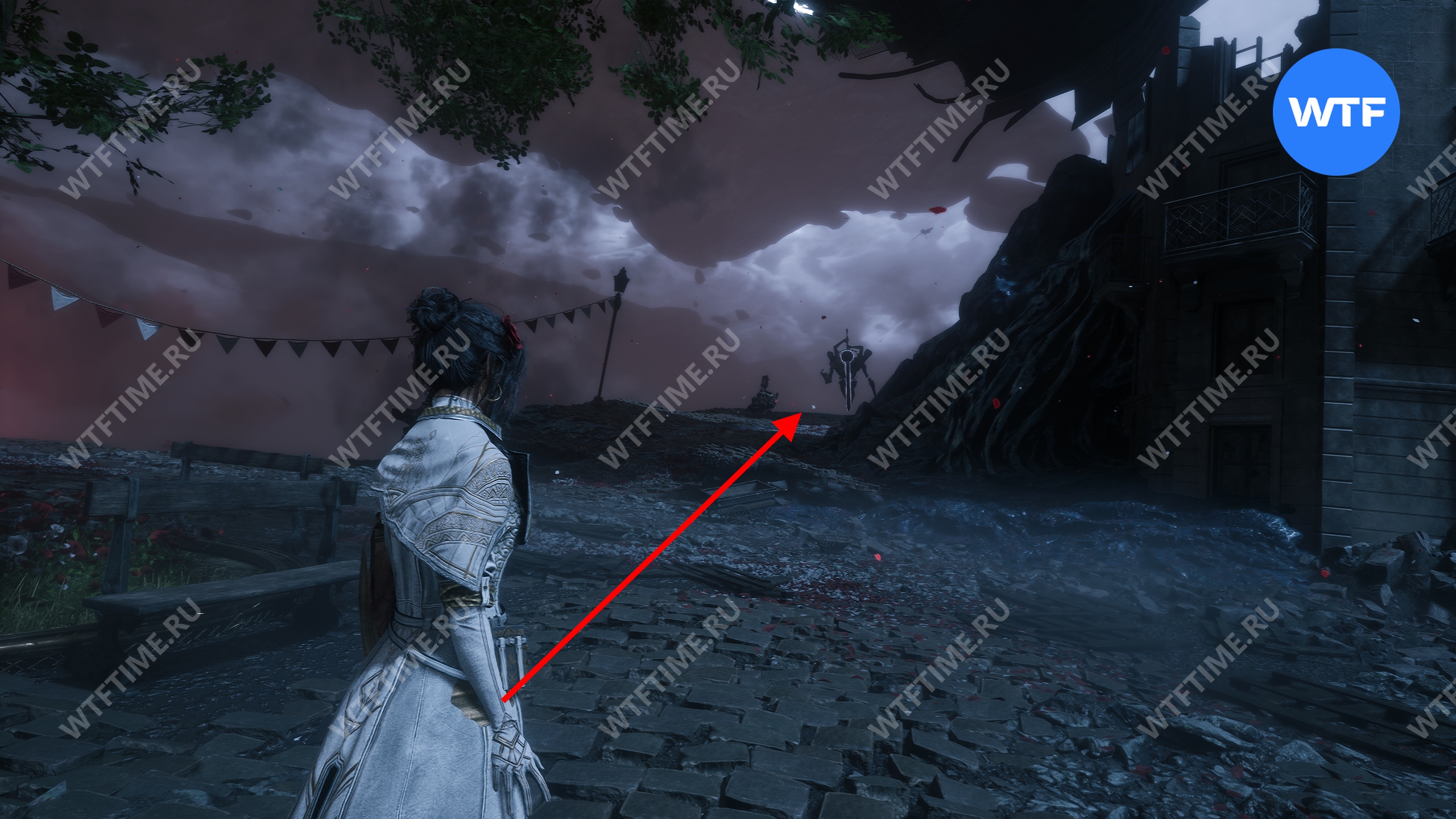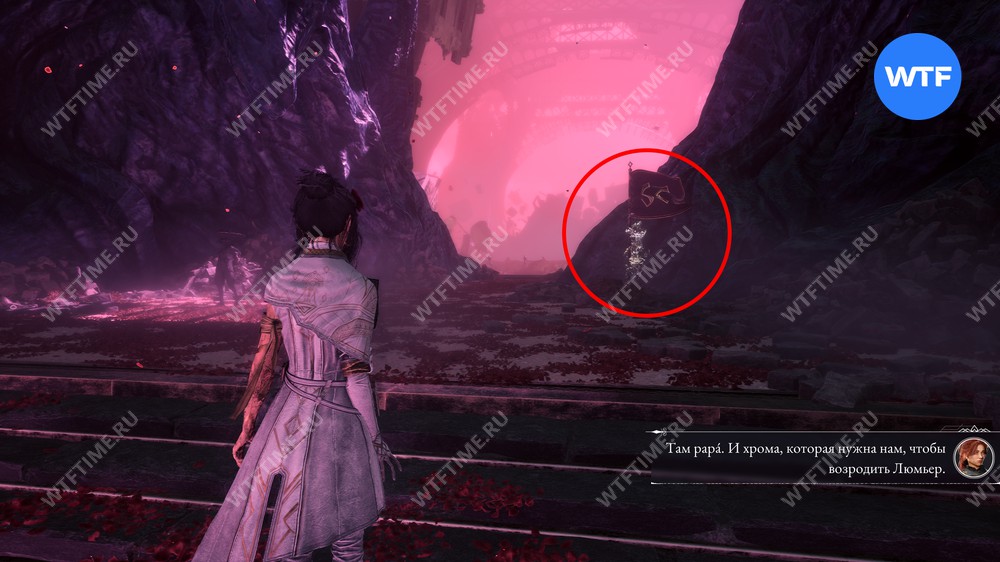 От торговца продолжайте продвигаться вперед по единственному доступному пути и в итоге доберетесь до флага экспедиции «Сады Люмьера». Впереди вас ждет первый основной босс этой локации, так что имеет смысл подготовиться.
