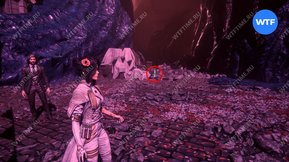 Сразу же после спуска по третьей лестнице справа посмотрите налево. Там вы увидите еще одну круглую каменную конструкцию, внутри которой лежит ретушь.