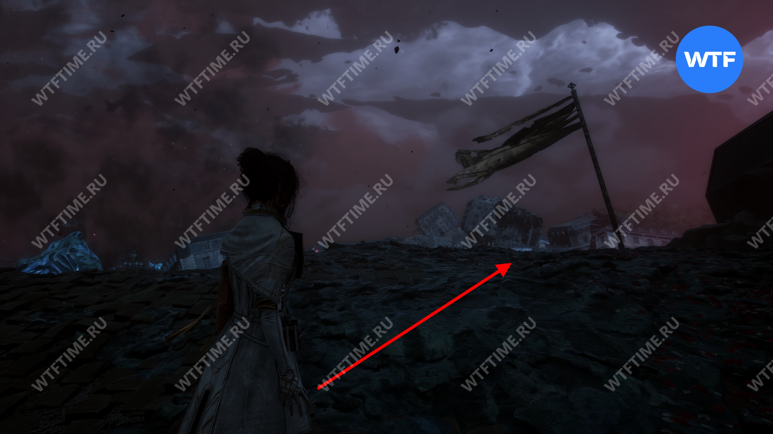 Затем от флага экспедиции идите налево и подберите ретушь, лежащую в конце дорожки.