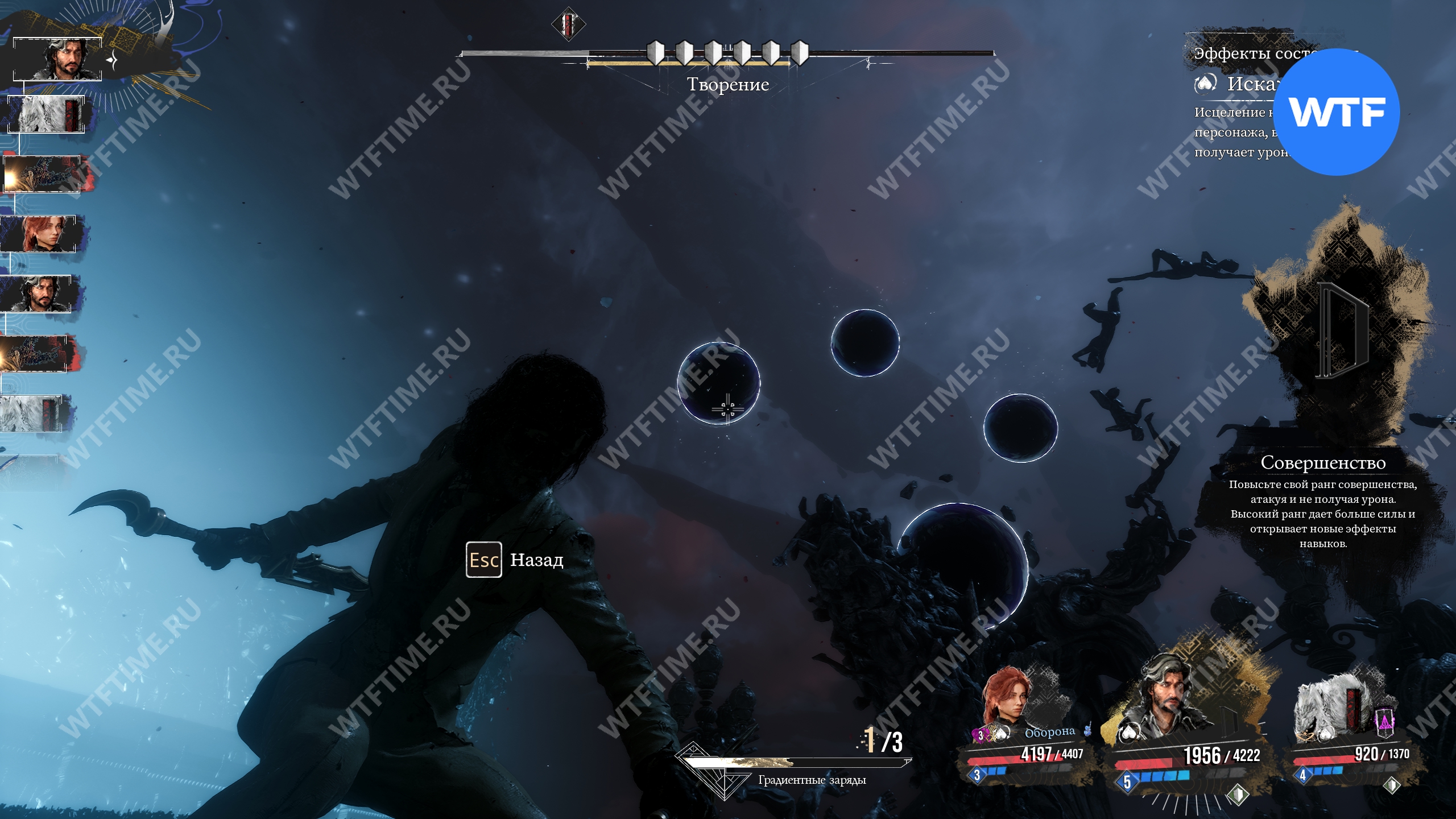 В самом конце центральной аллеи вы встретите первого из основных боссов этой локации — Творение. На первом же ходу он наложит на ваш отряд Инверсию — это состояние, при котором любое лечение будет отнимать здоровье.