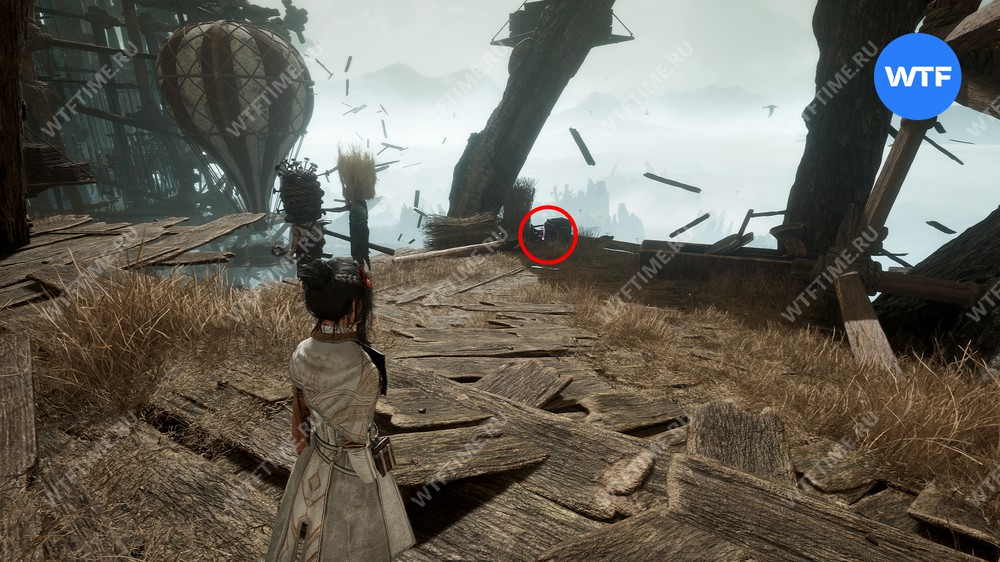 Сядьте на воздушный шар справа от торговца, а затем разберитесь с сиротками, чтобы забрать 3128 хромы.