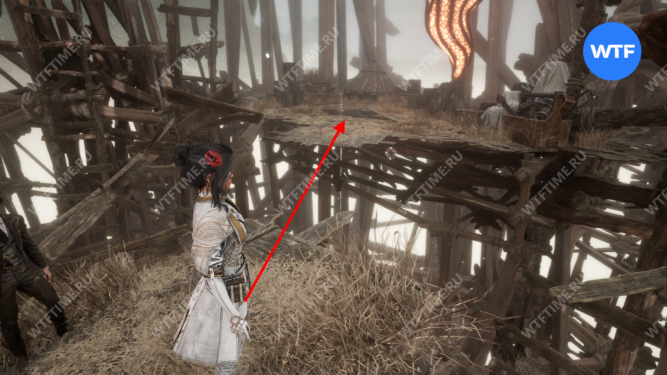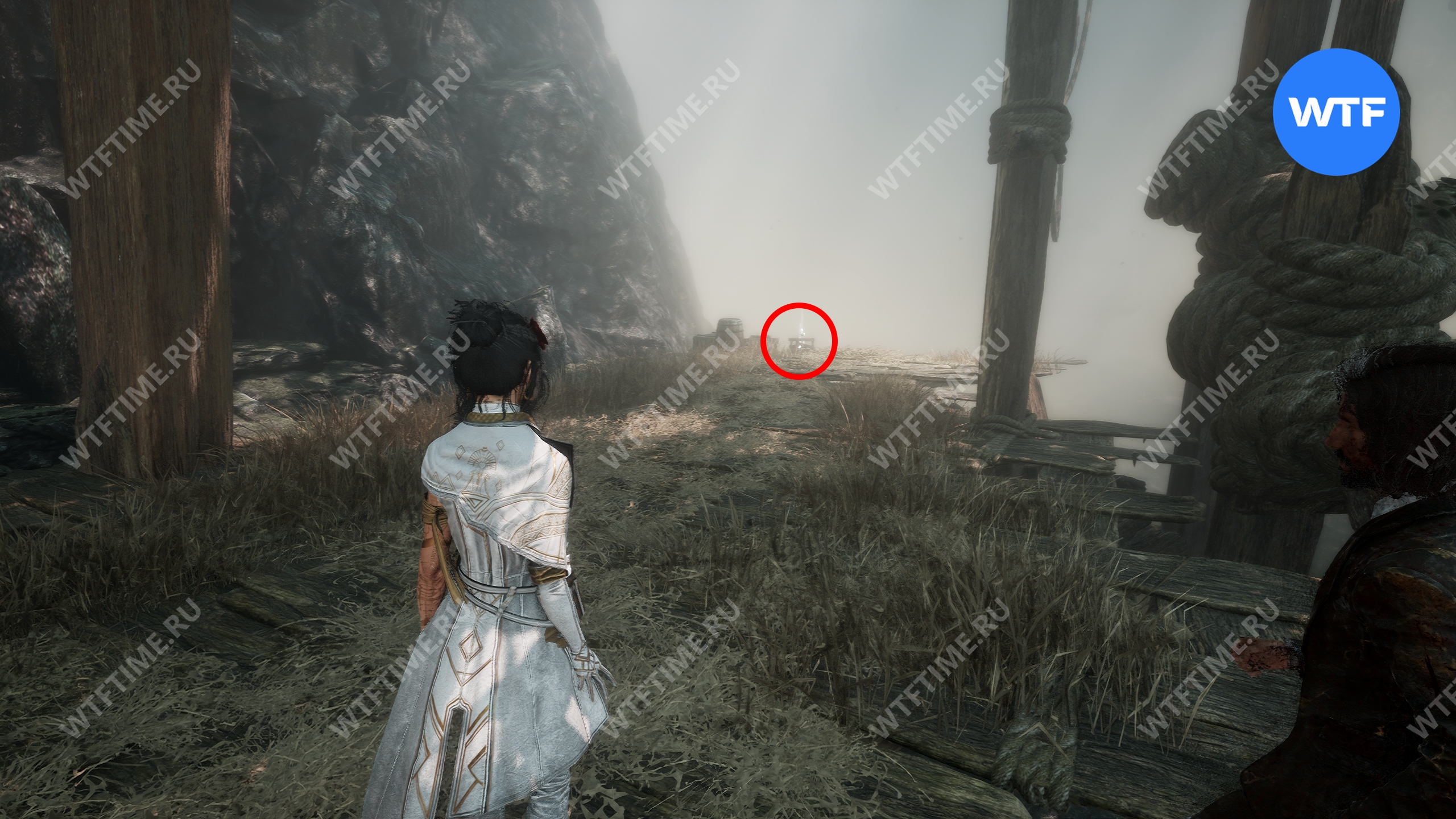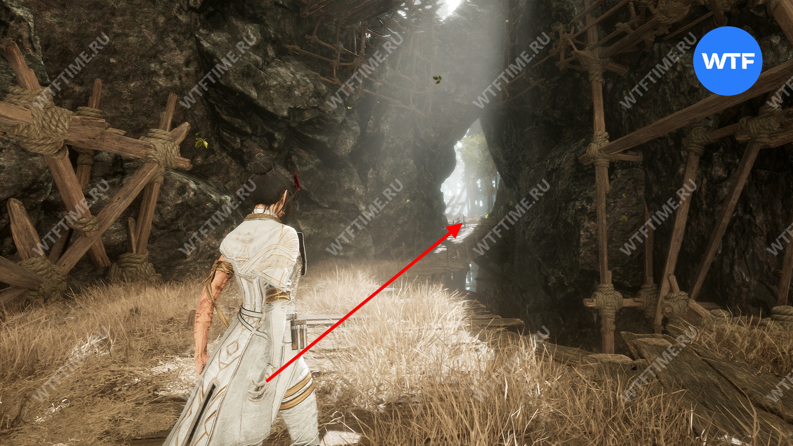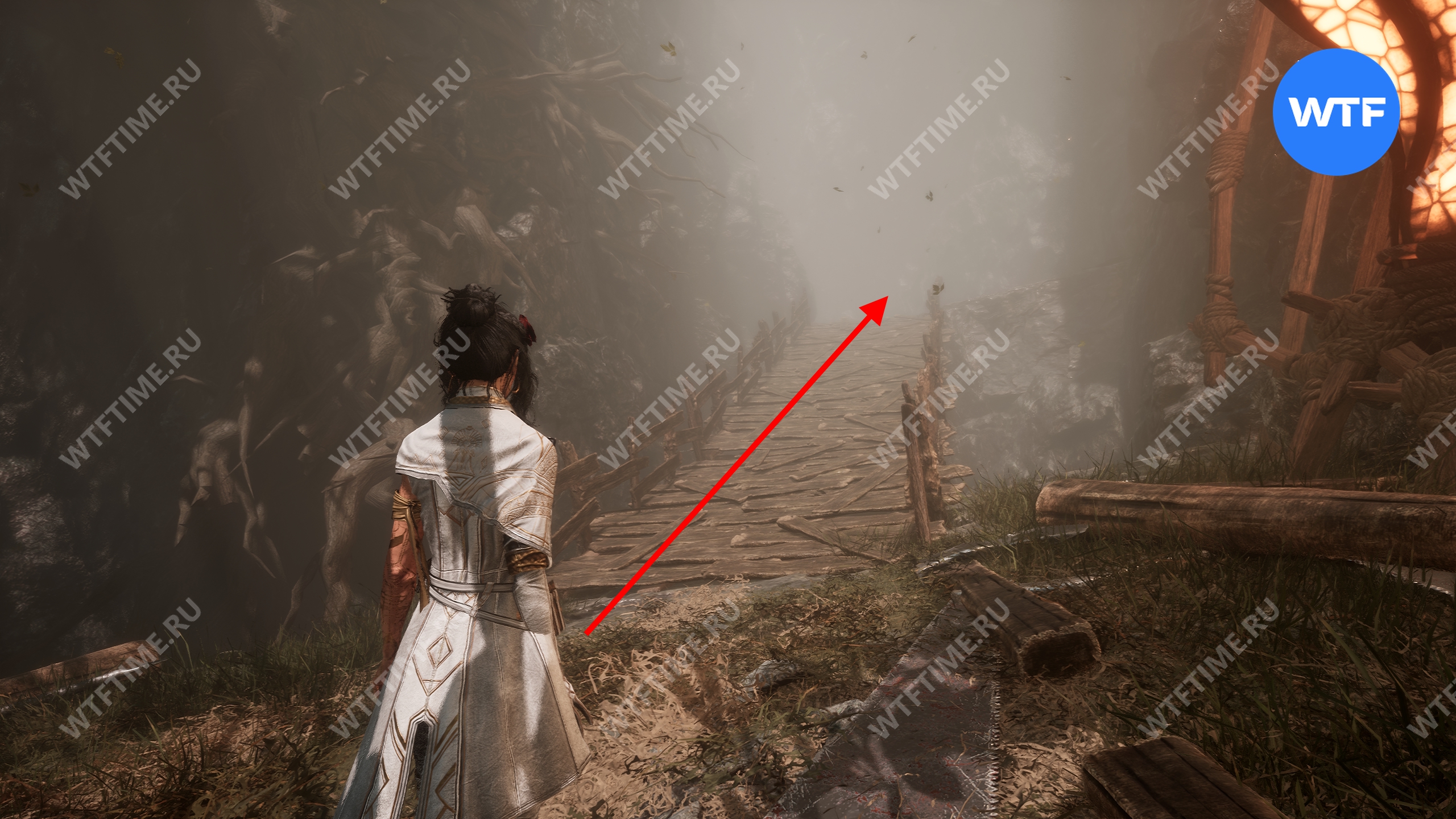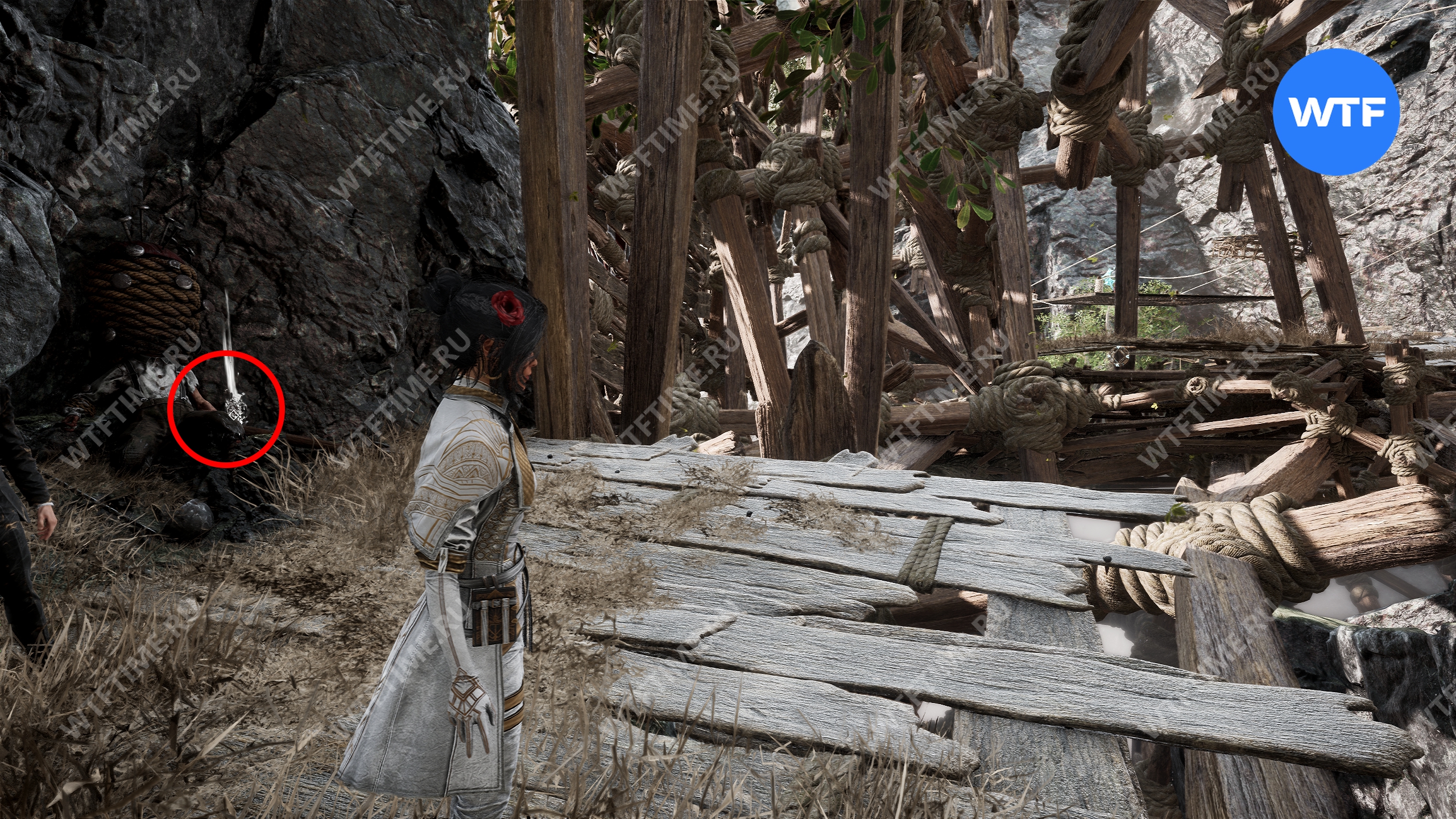 Разберитесь с врагами и идите вперед, пока не увидите Тающего мужчину. Поговорите с ним, а затем идите направо до конца и используйте точку захвата. Пройдите вперед по деревянному помосту и снова переберитесь через пропасть.