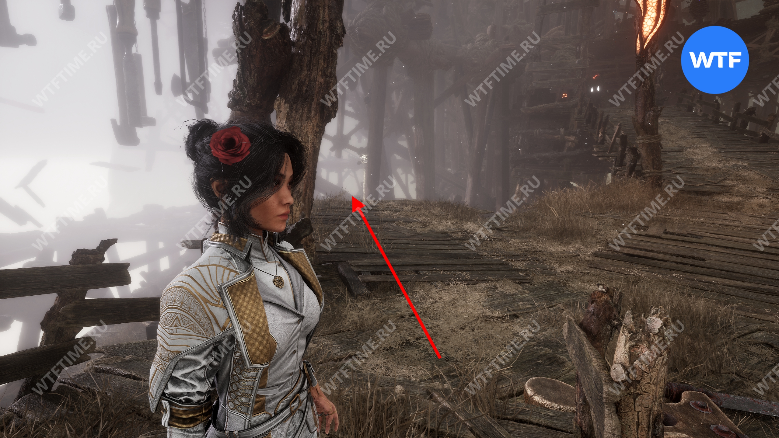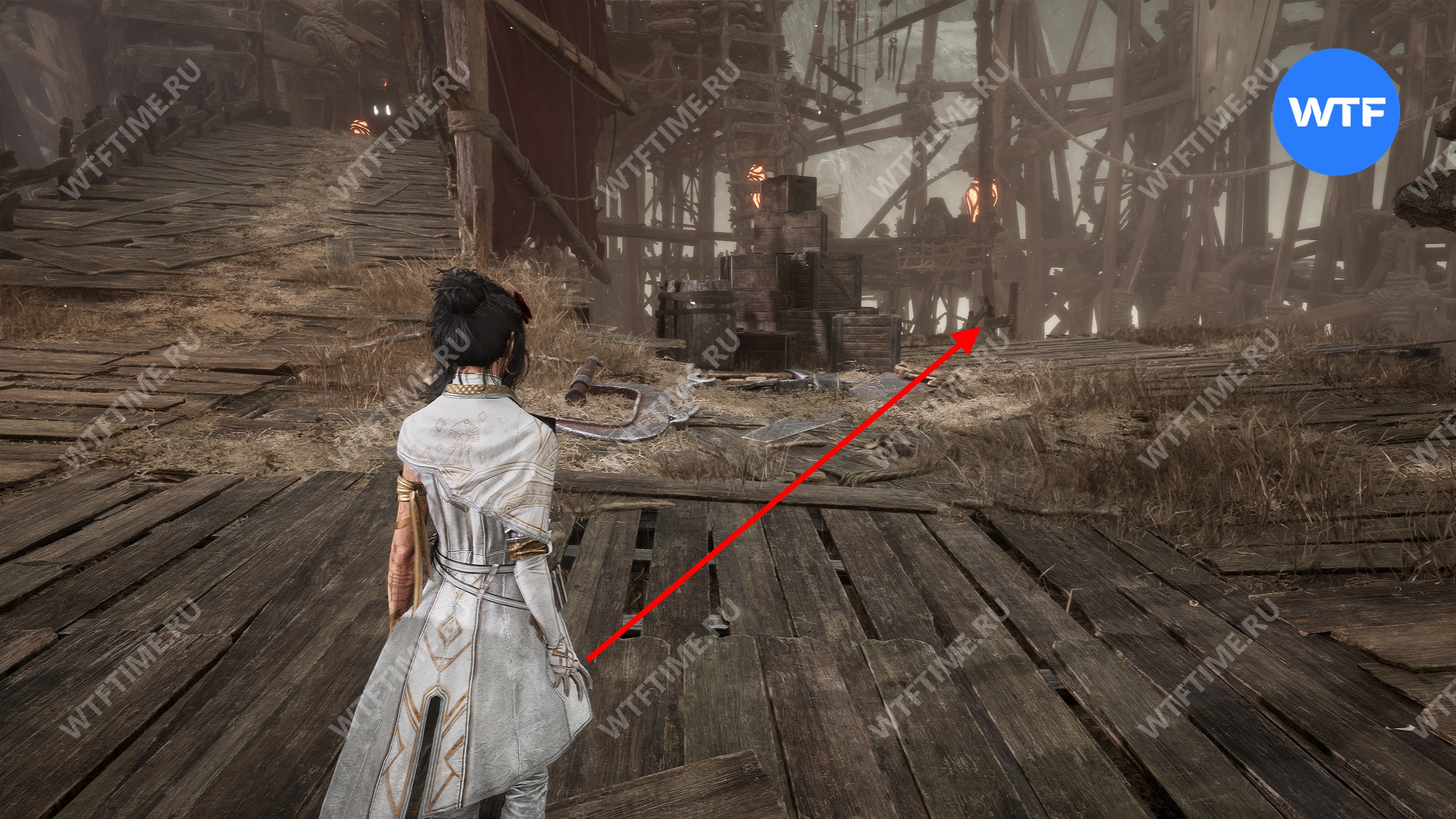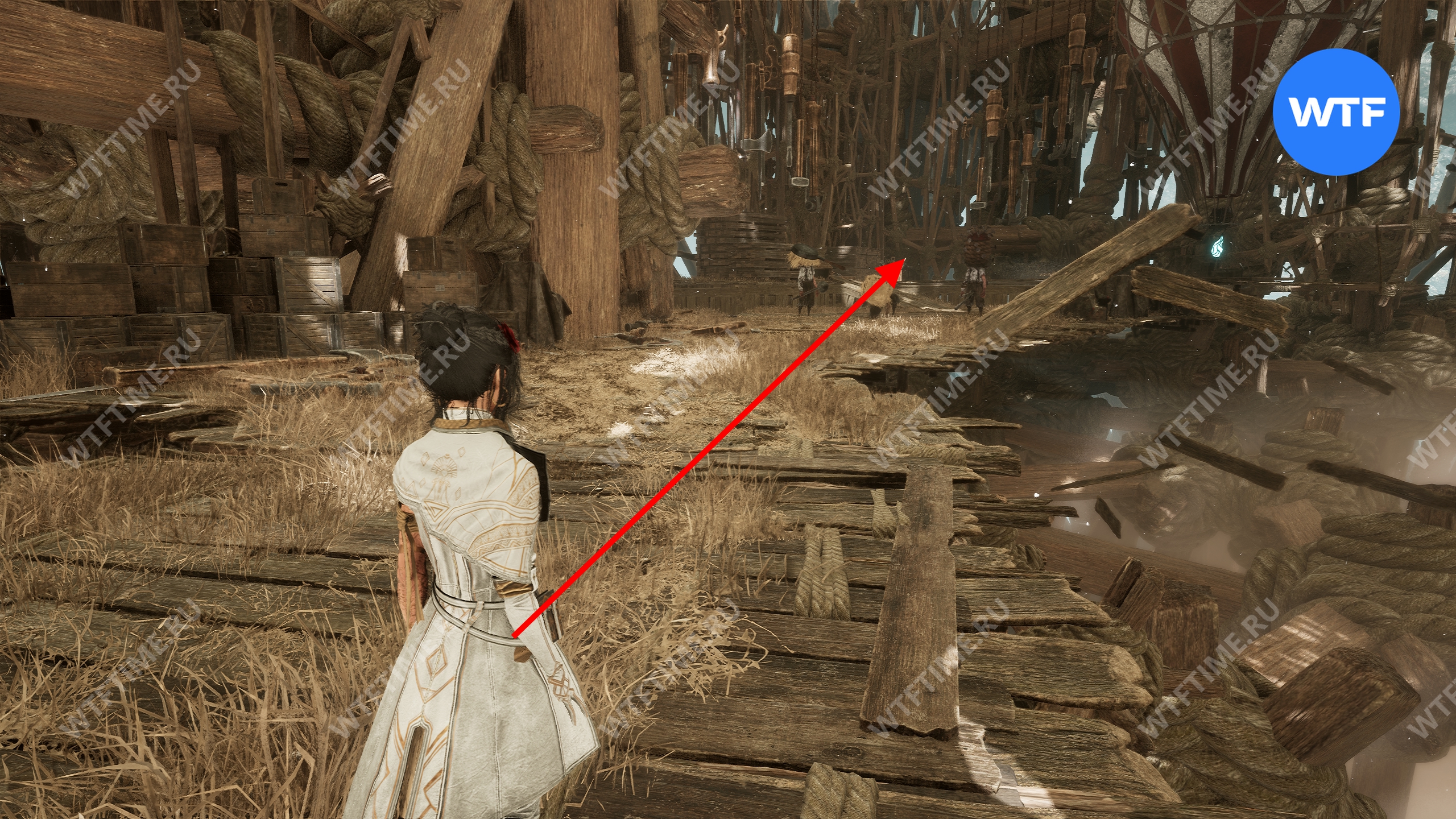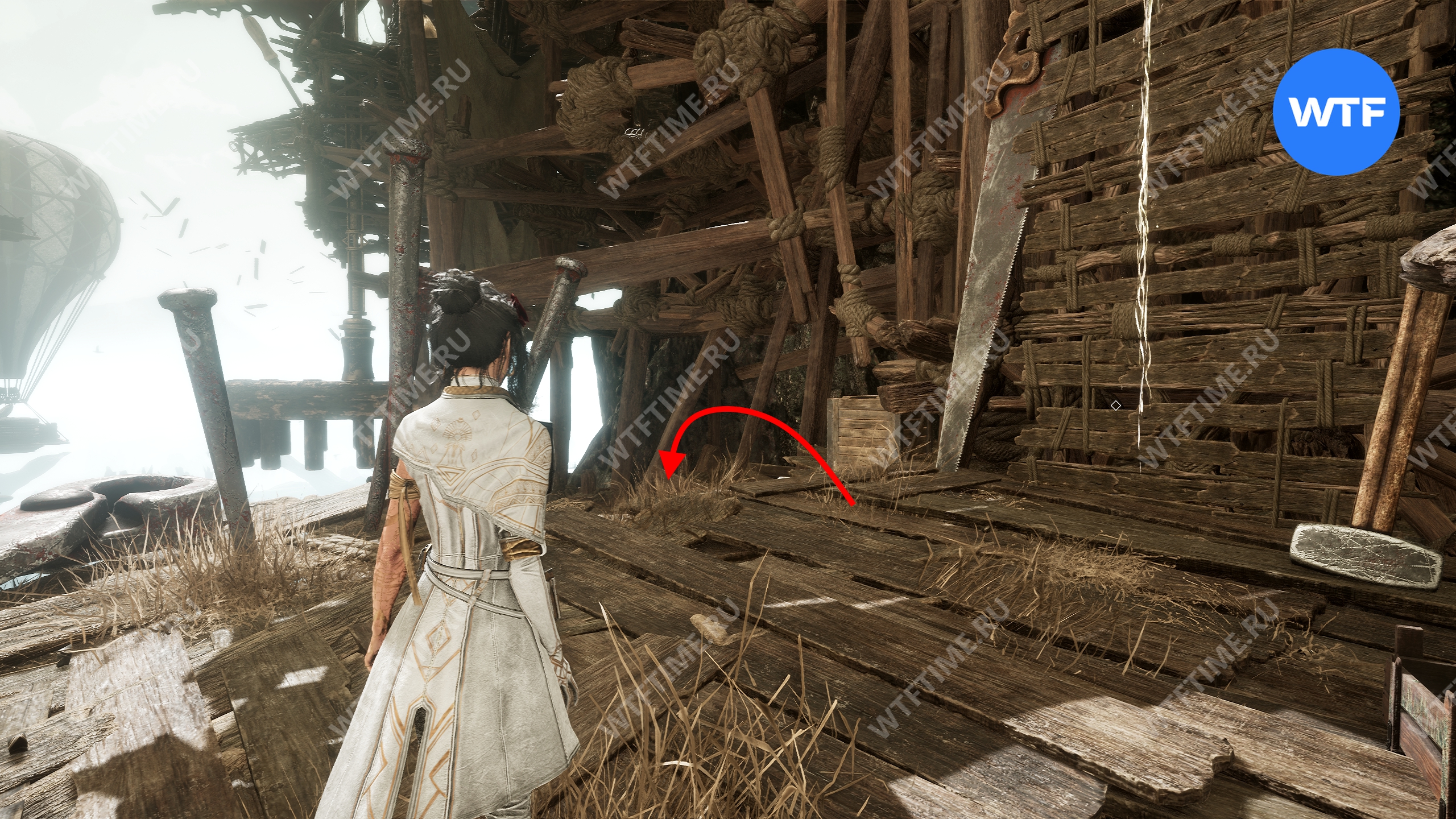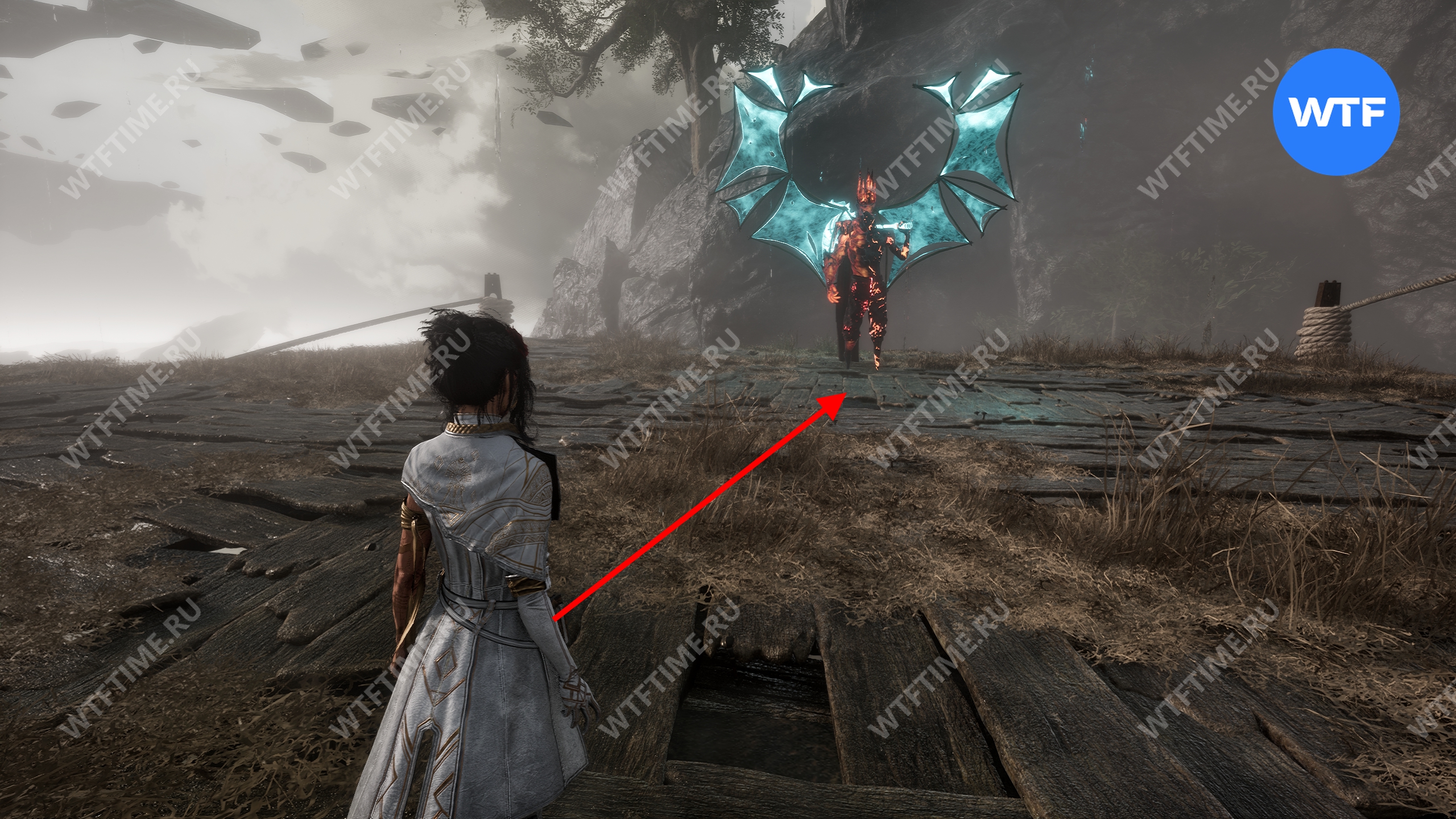 Разберитесь с врагами и идите вперед, пока не увидите Тающего мужчину. Поговорите с ним, а затем идите направо до конца и используйте точку захвата. Пройдите вперед по деревянному помосту и снова переберитесь через пропасть.