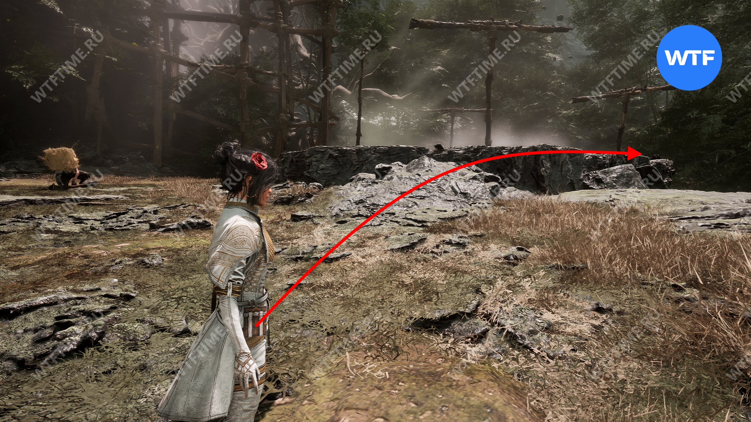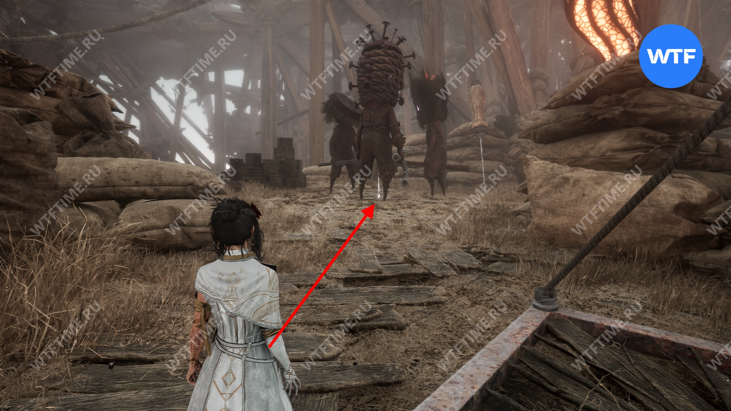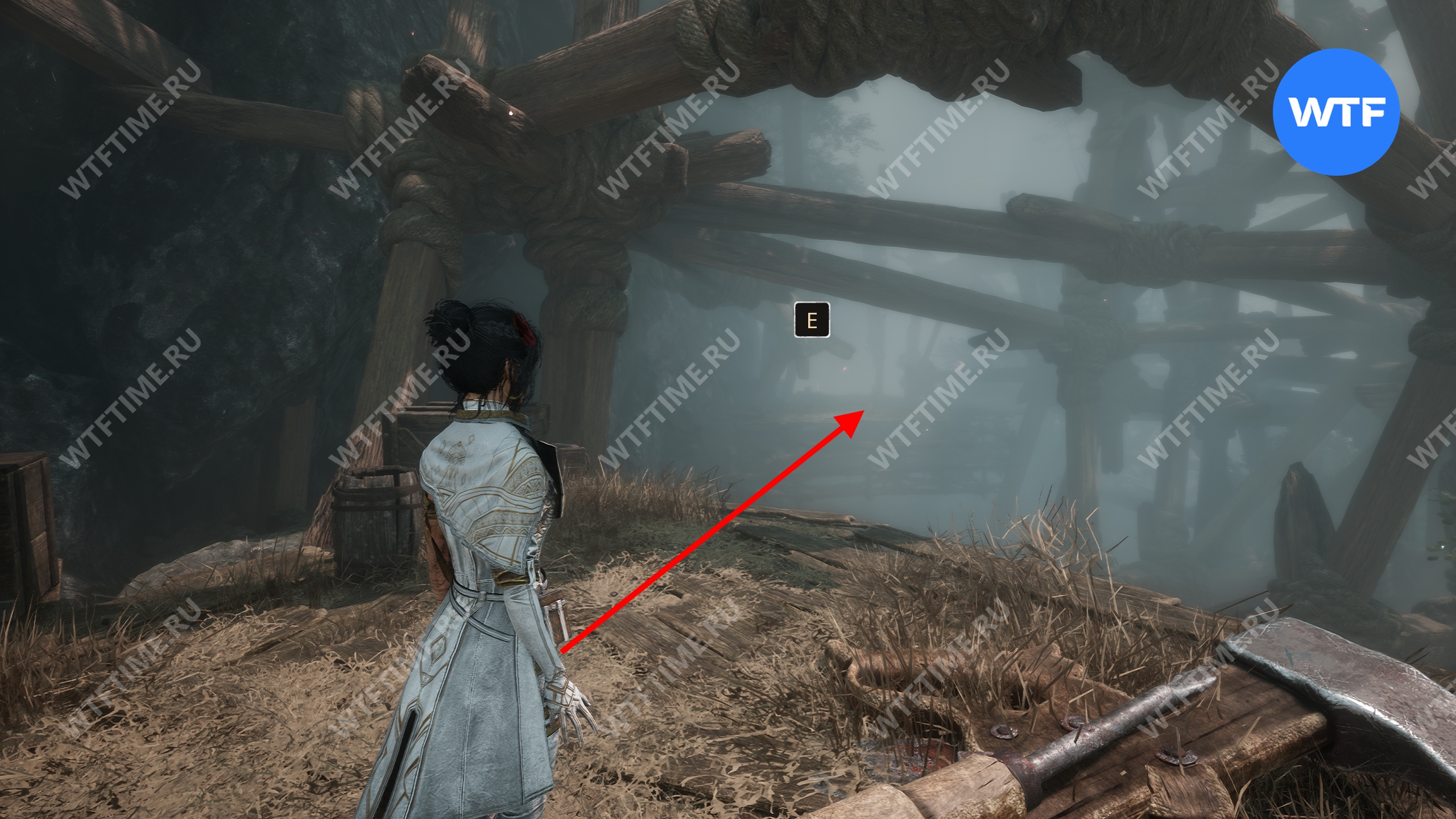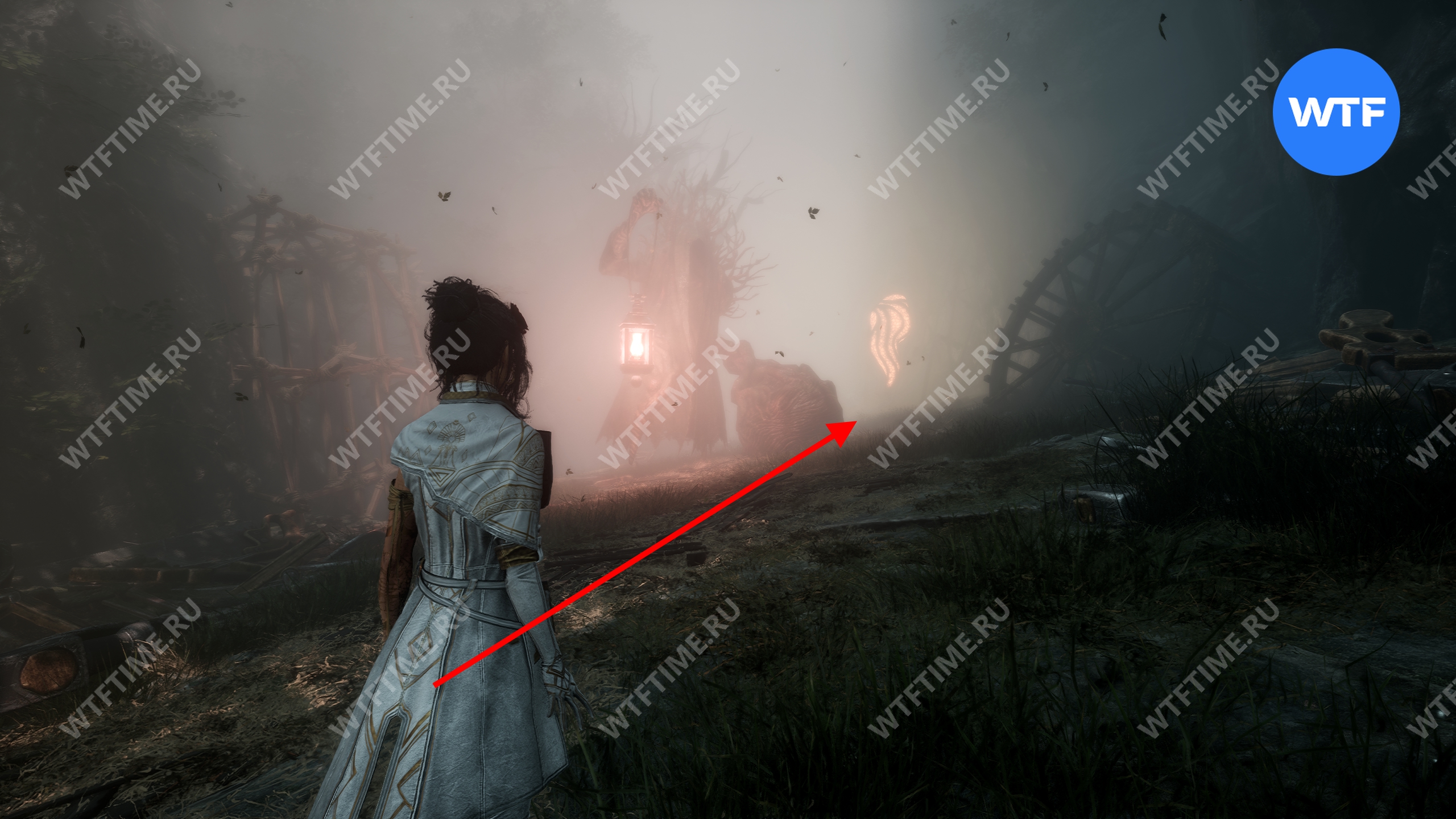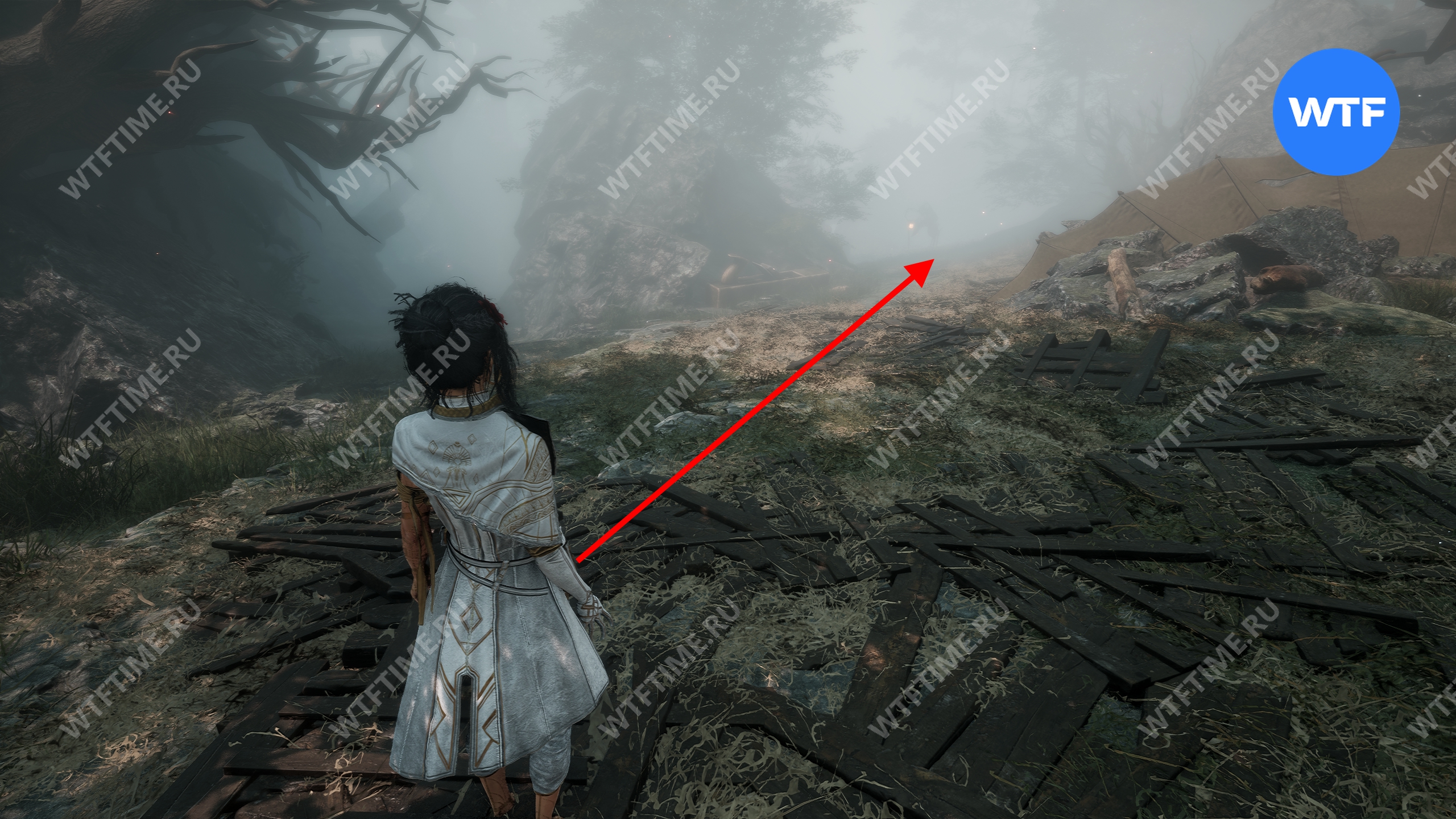 Разберитесь с врагами и идите вперед, пока не увидите Тающего мужчину. Поговорите с ним, а затем идите направо до конца и используйте точку захвата. Пройдите вперед по деревянному помосту и снова переберитесь через пропасть.