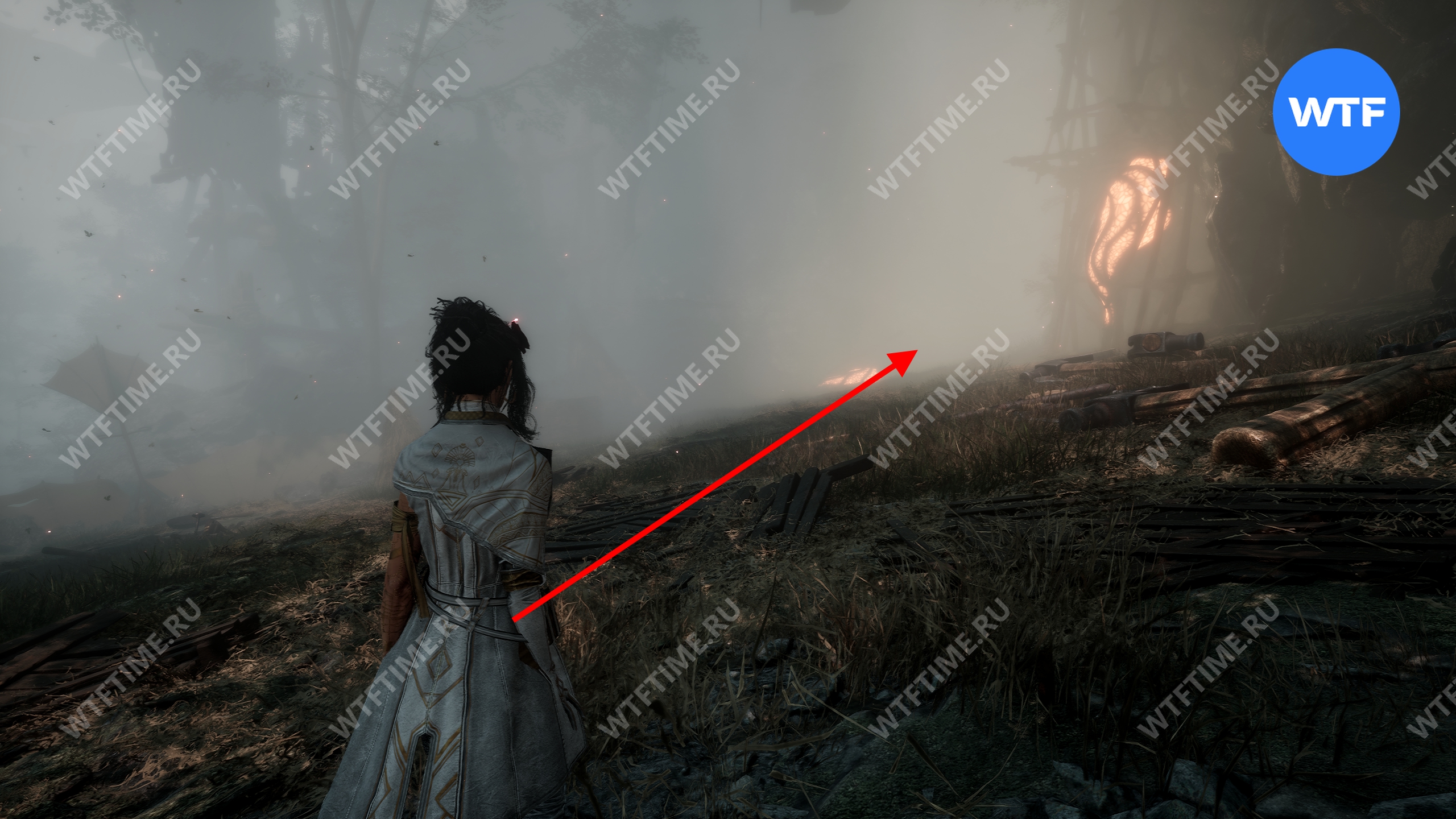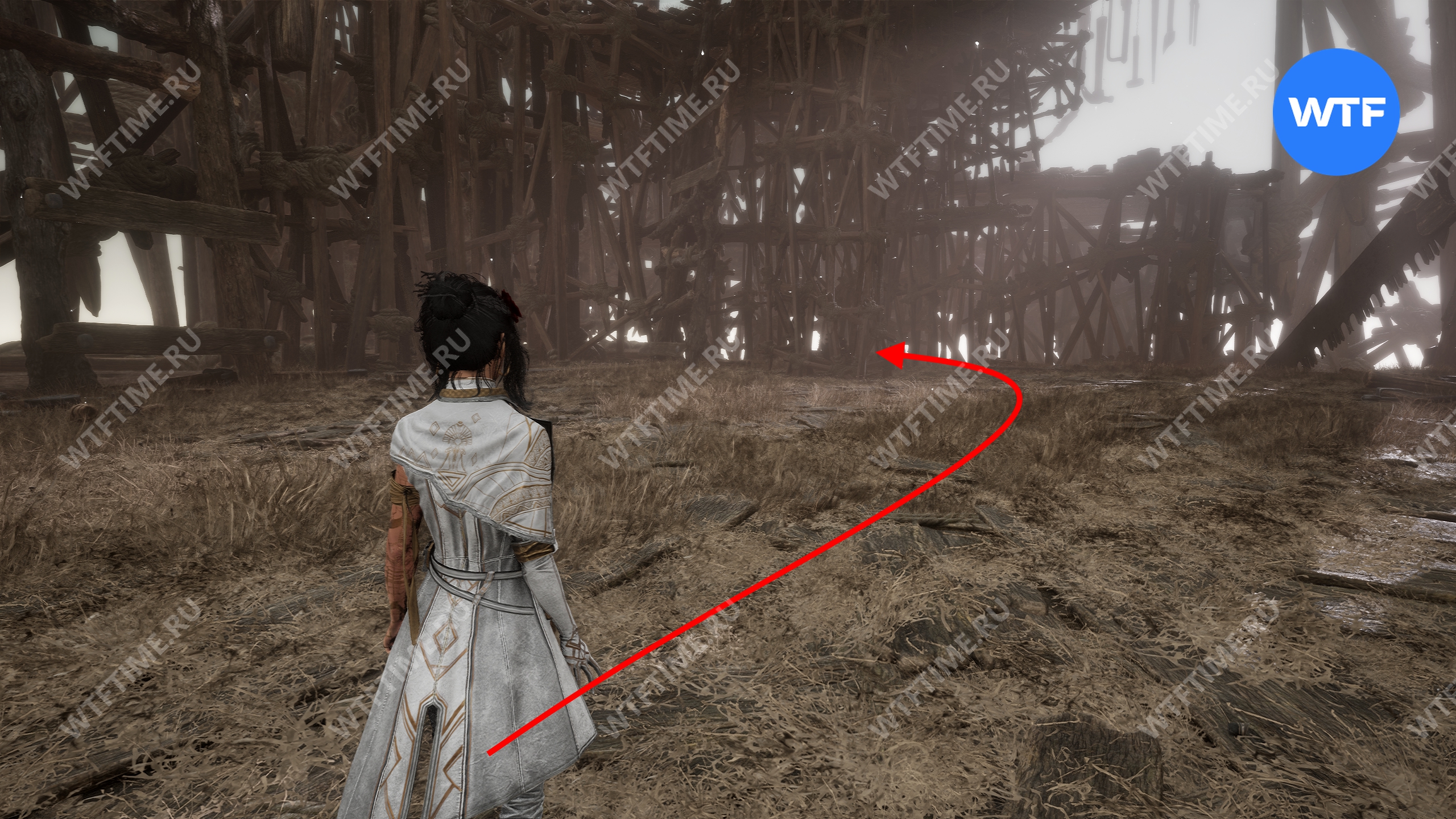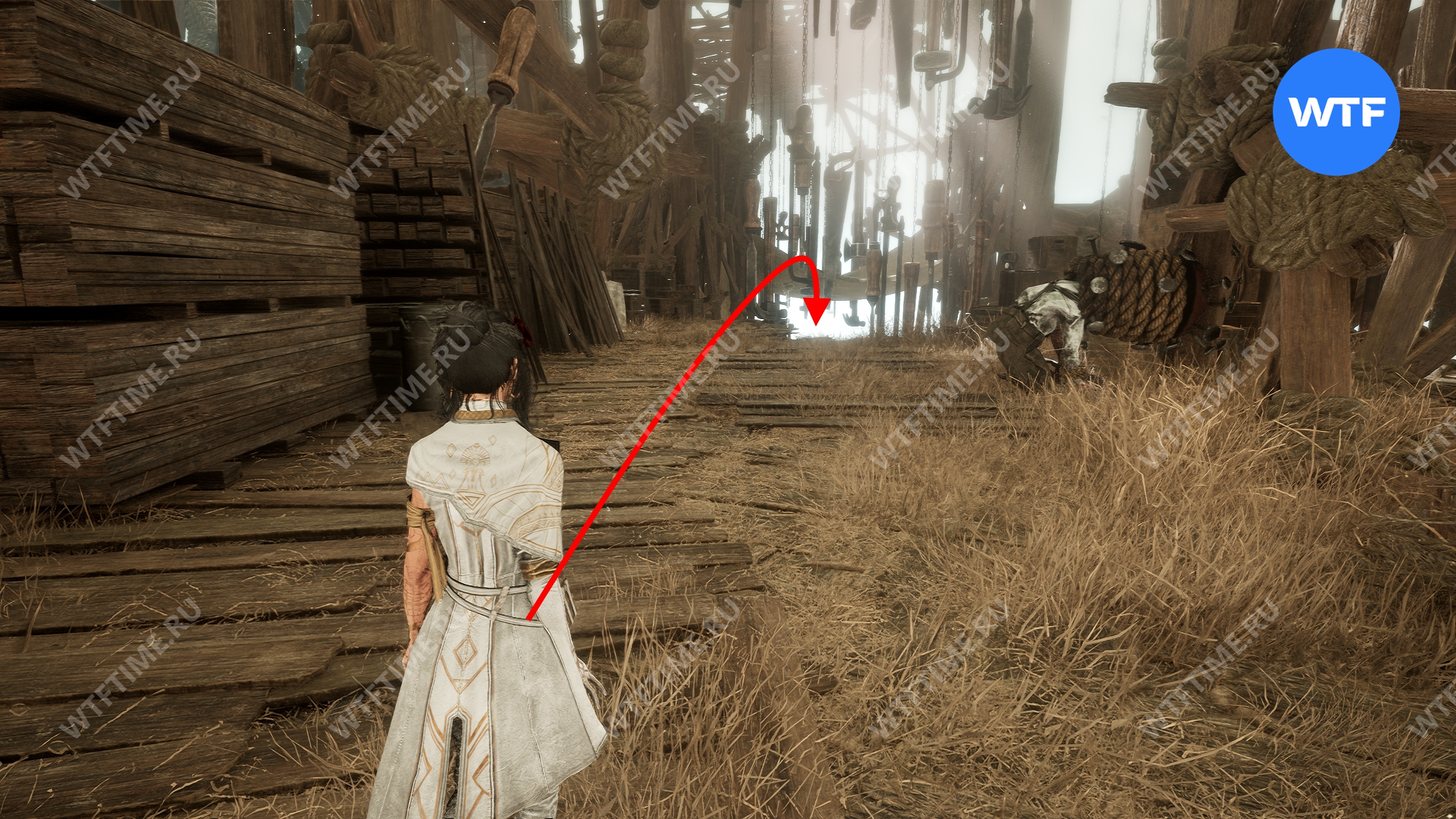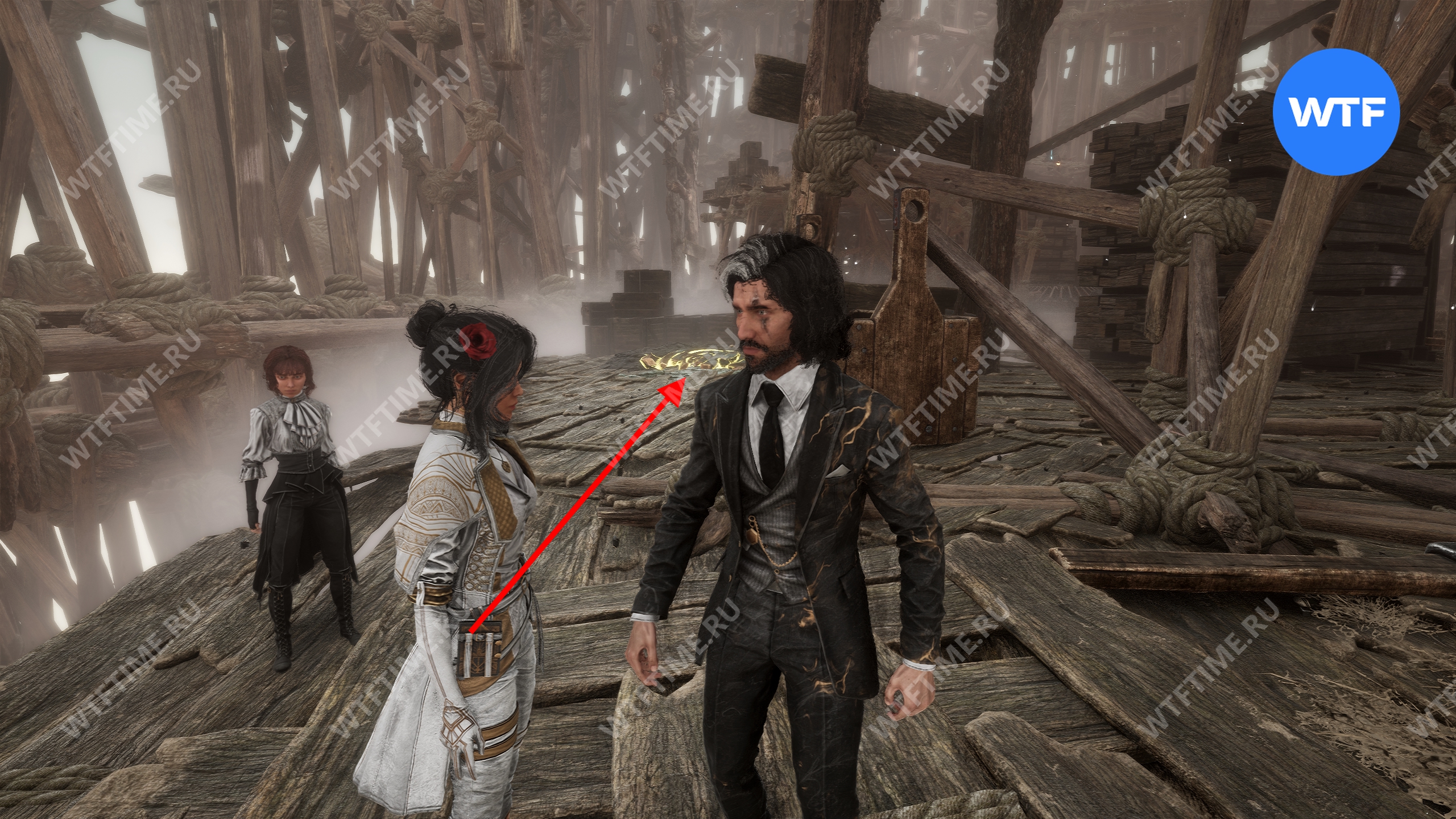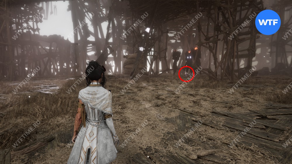 Разберитесь с врагами и идите вперед, пока не увидите Тающего мужчину. Поговорите с ним, а затем идите направо до конца и используйте точку захвата. Пройдите вперед по деревянному помосту и снова переберитесь через пропасть.