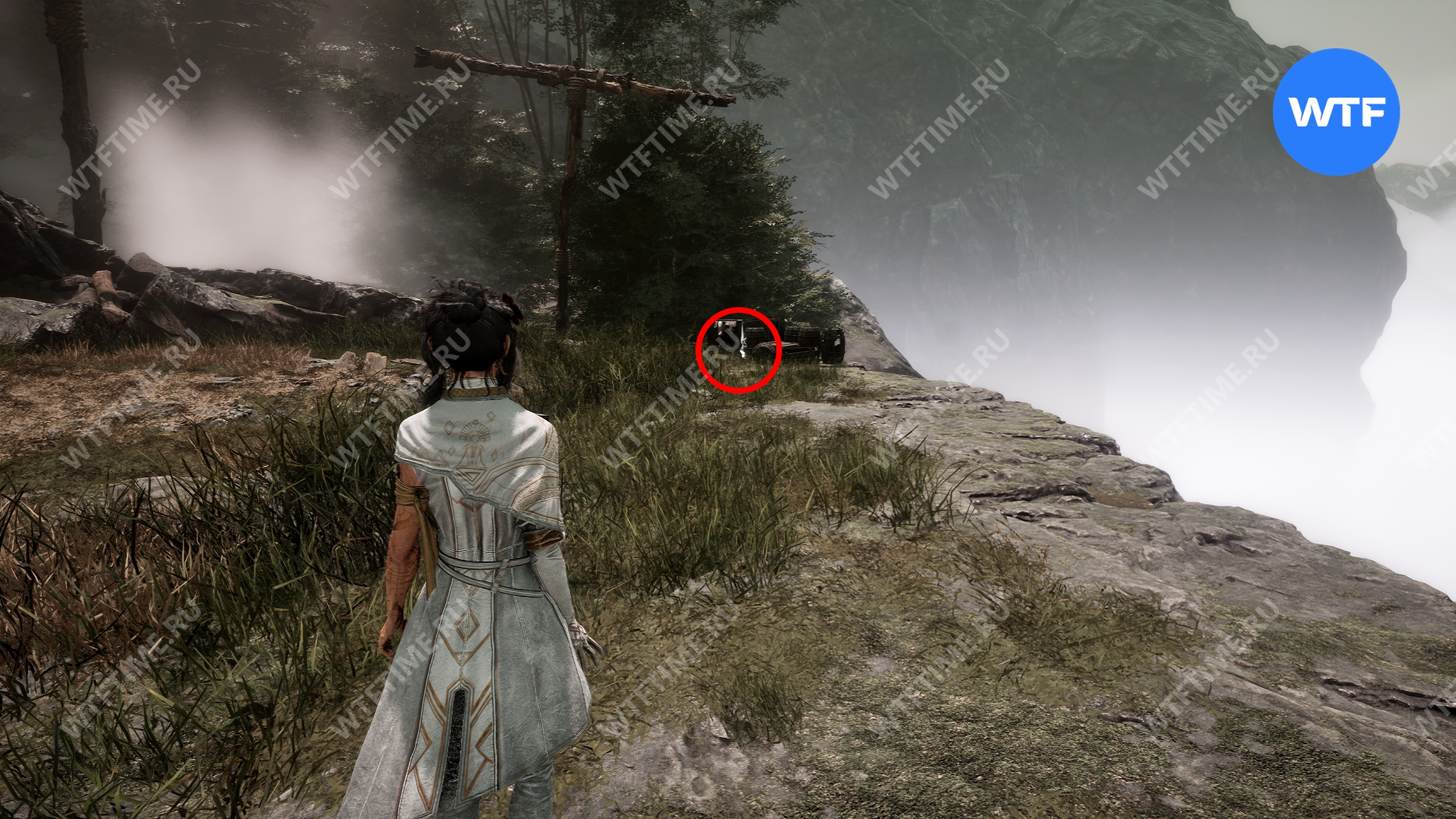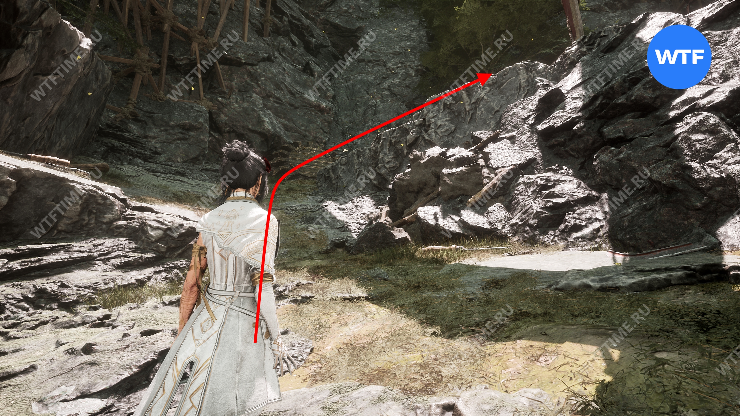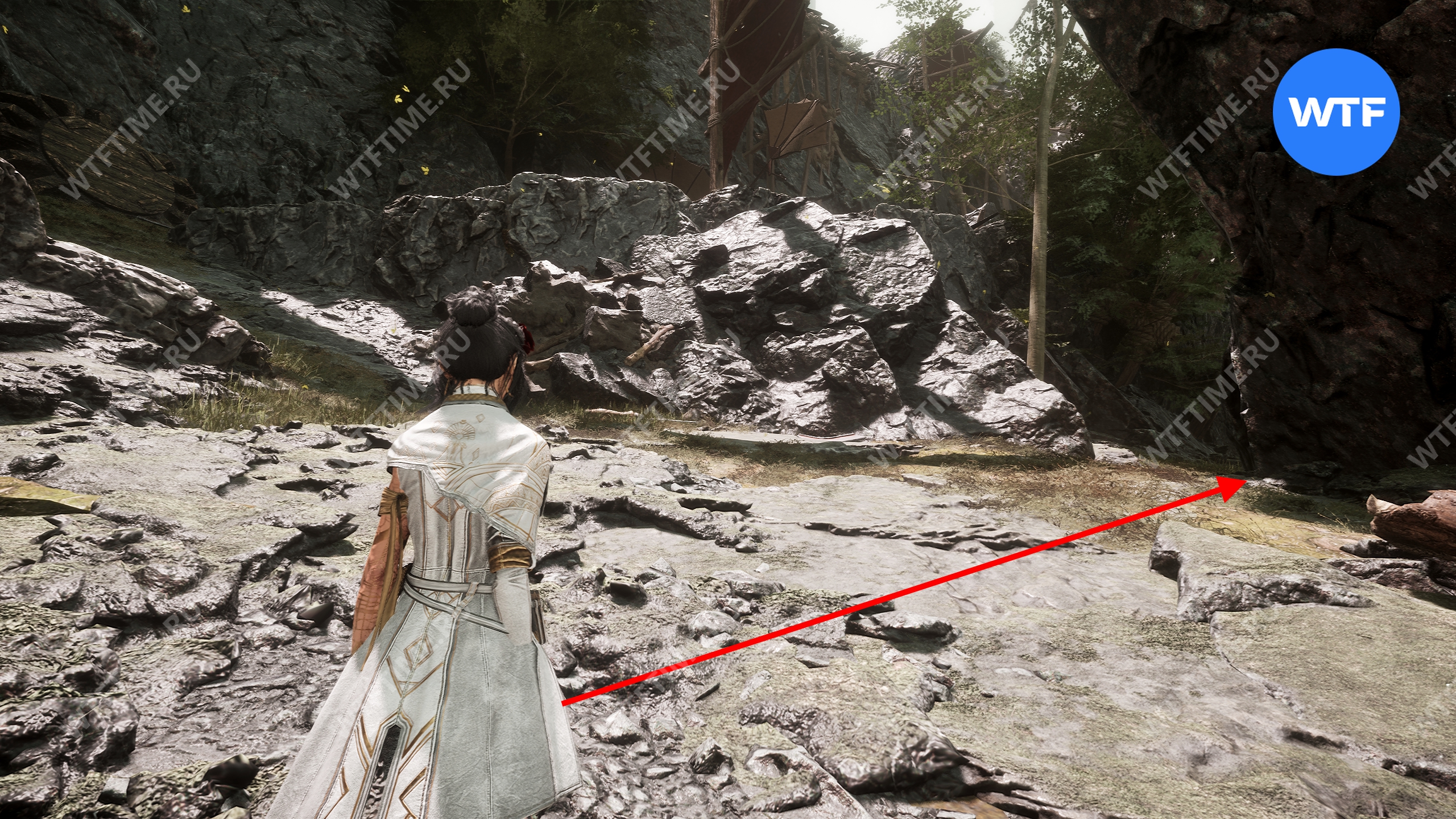 Пролезьте через небольшую пещеру до конца, а затем используйте точку захвата слева. Поднимитесь по небольшому каменному склону на площадку справа и заберите 6255 хромы у обрыва.