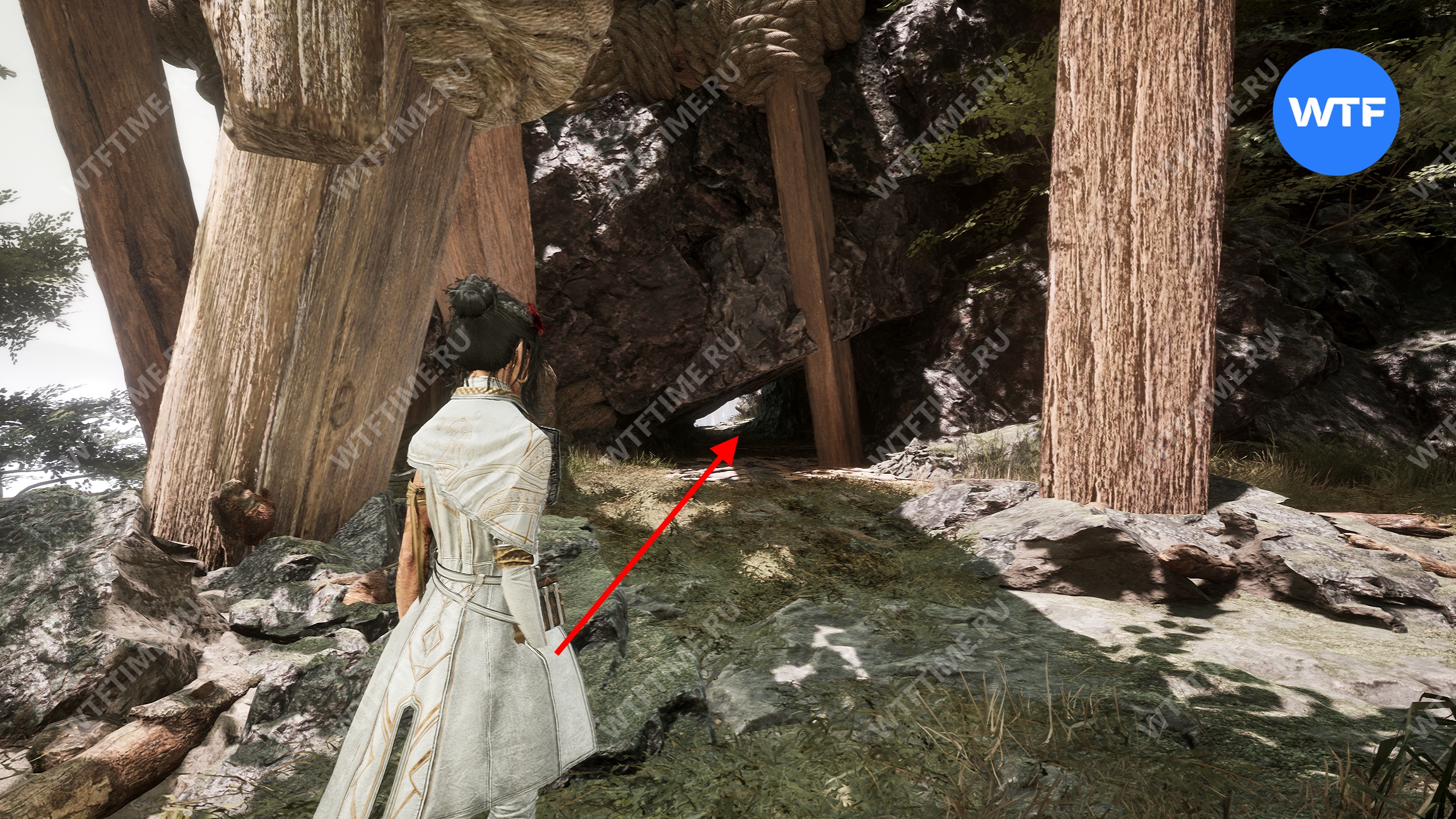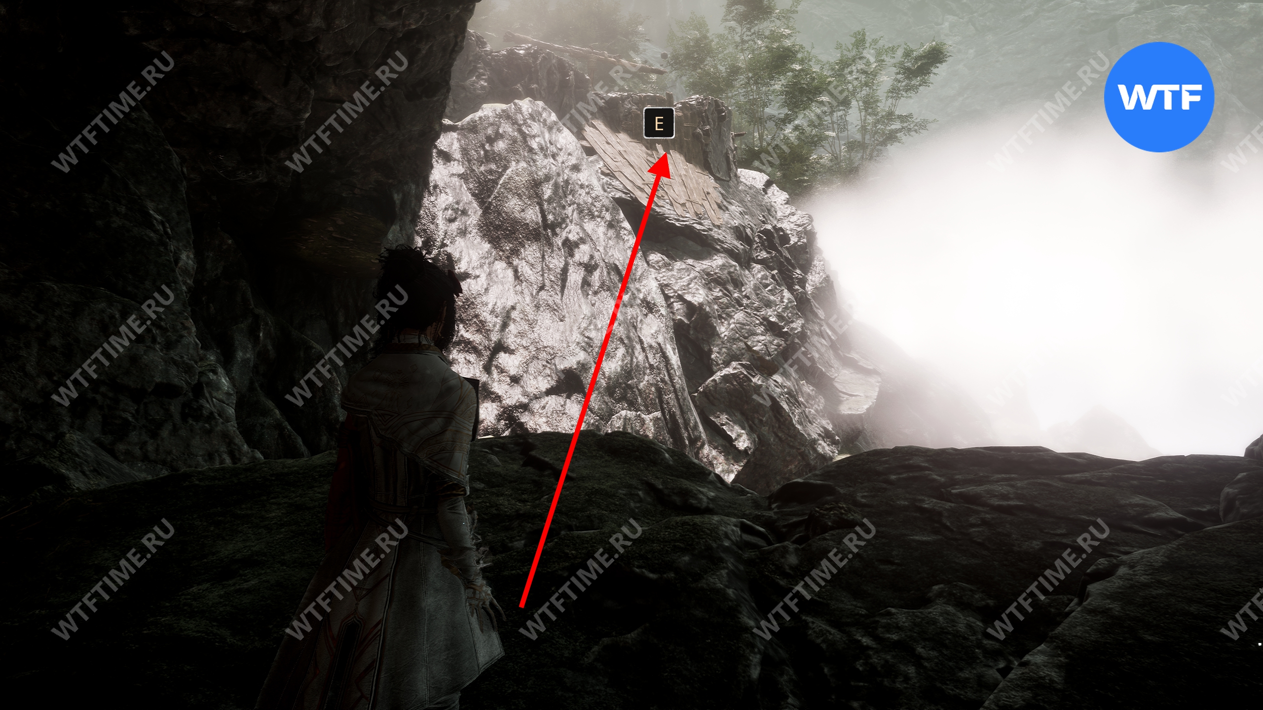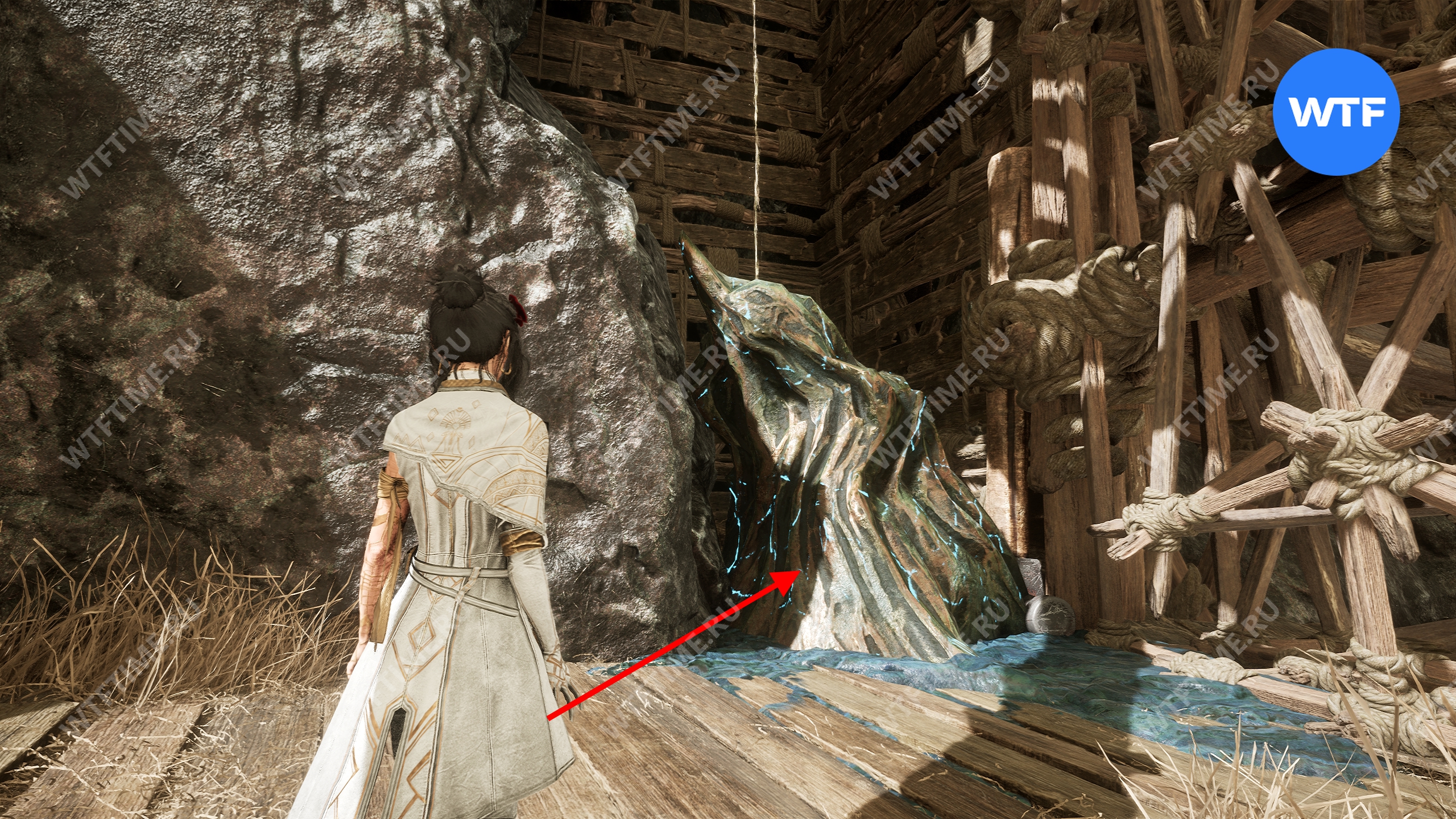 Пролезьте через небольшую пещеру до конца, а затем используйте точку захвата слева. Поднимитесь по небольшому каменному склону на площадку справа и заберите 6255 хромы у обрыва.