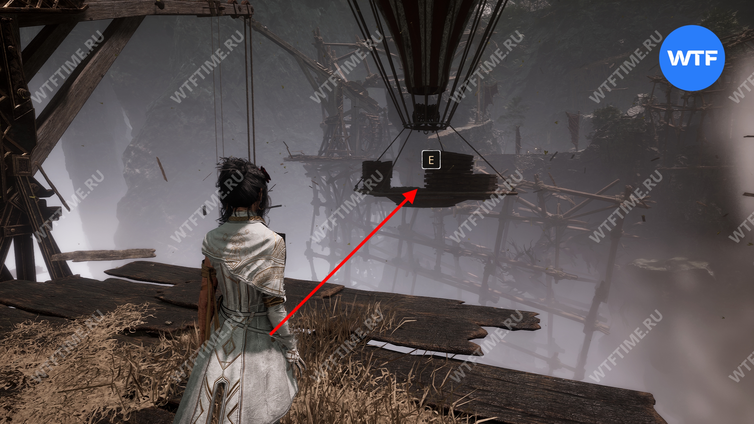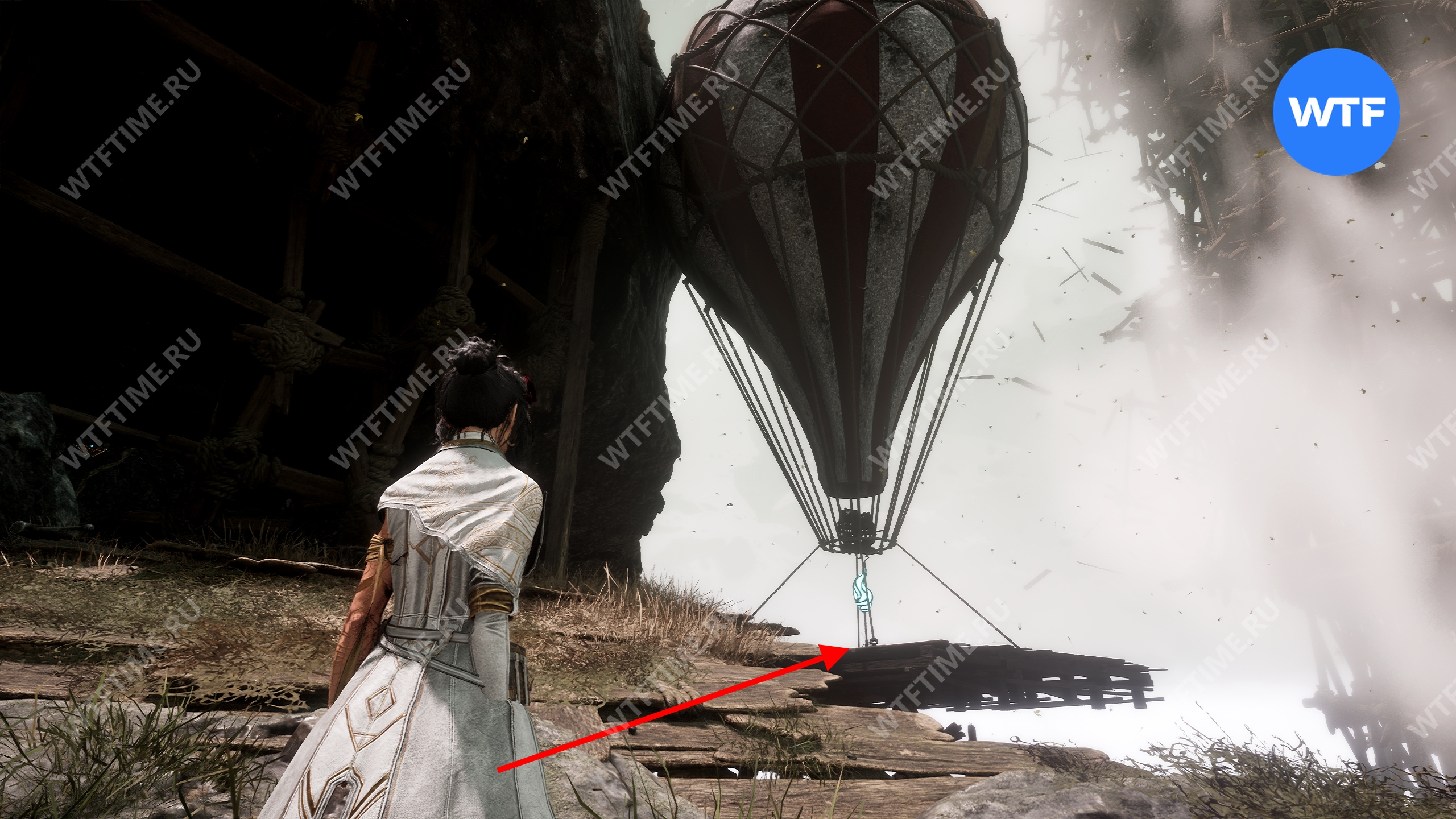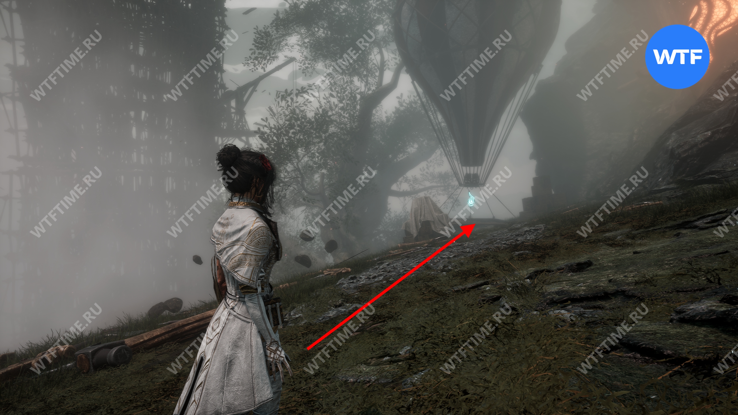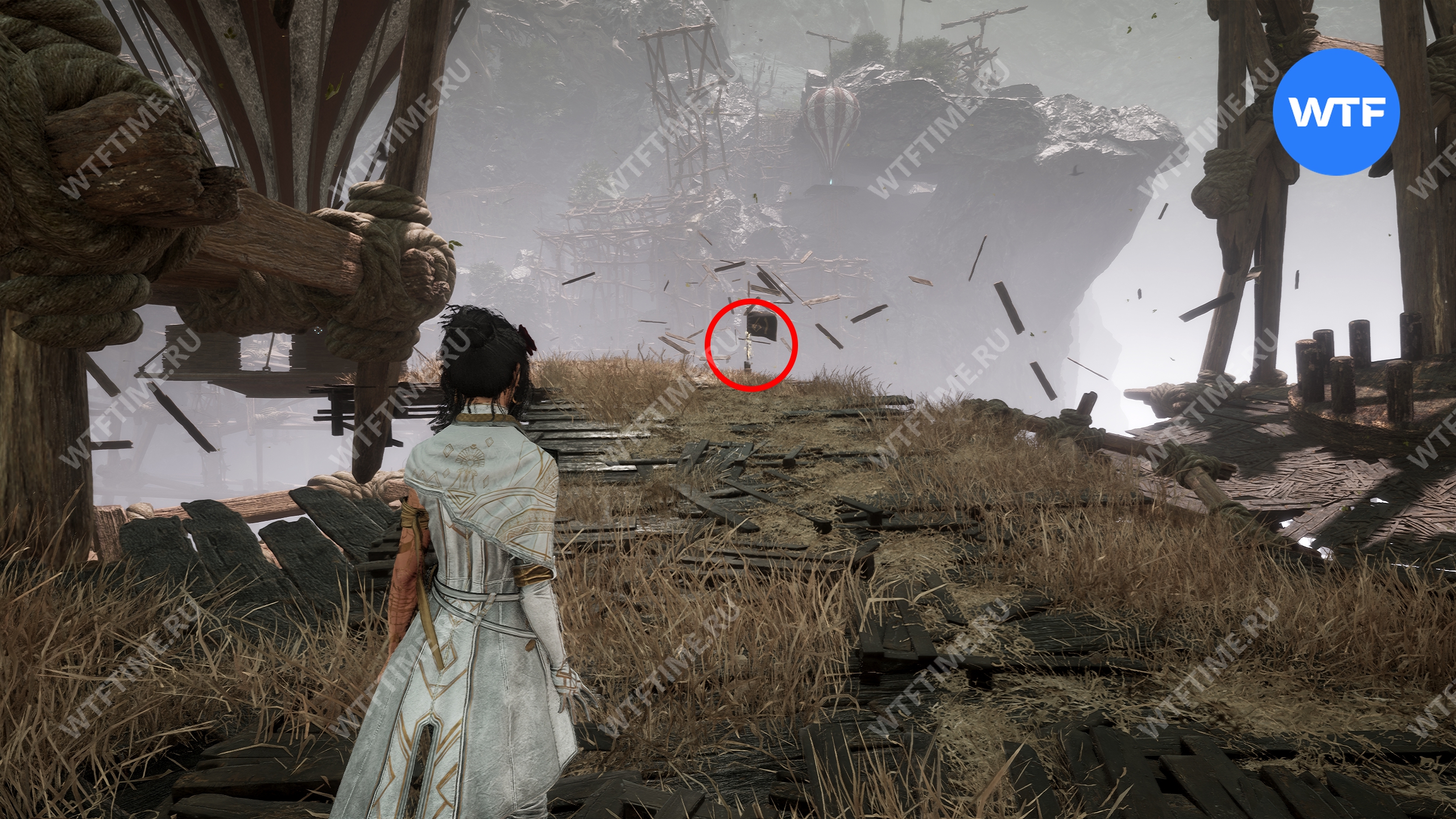 Воспользуйтесь воздушным шаром и он перенесет вас к флагу экспедиции «Туманная зона».