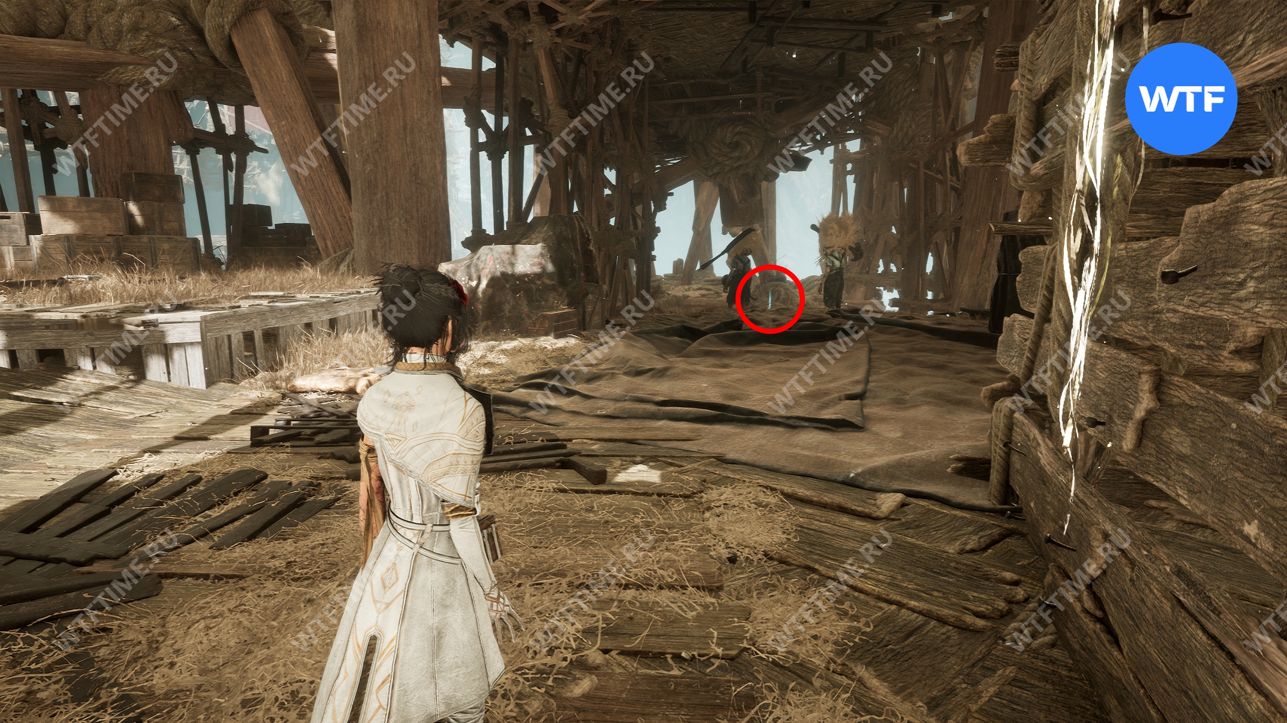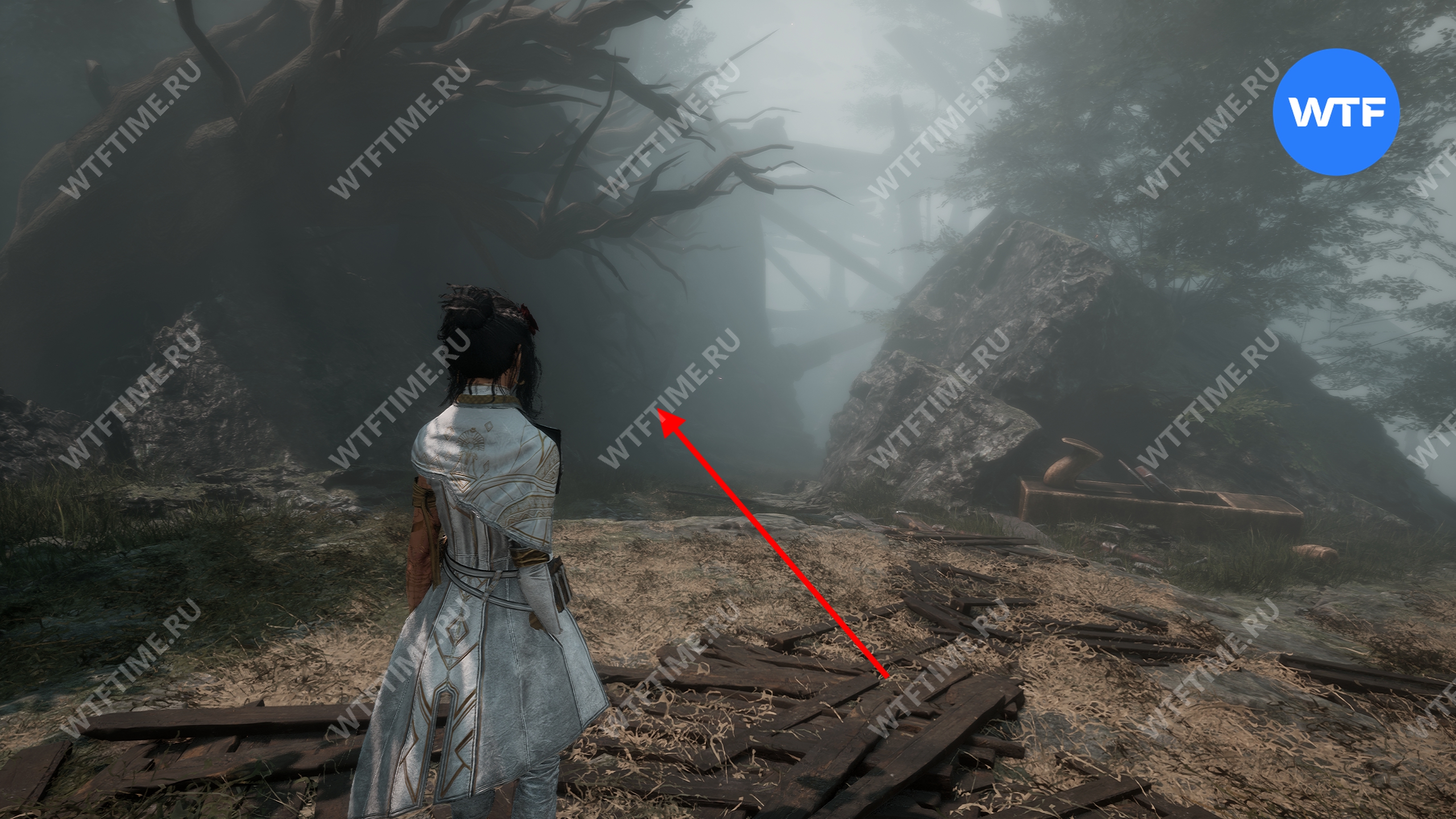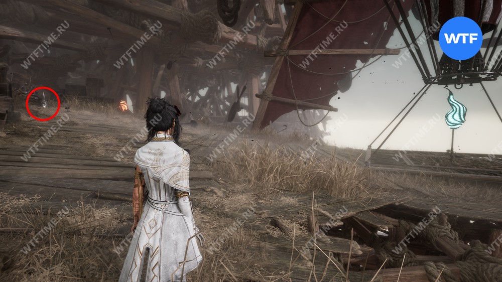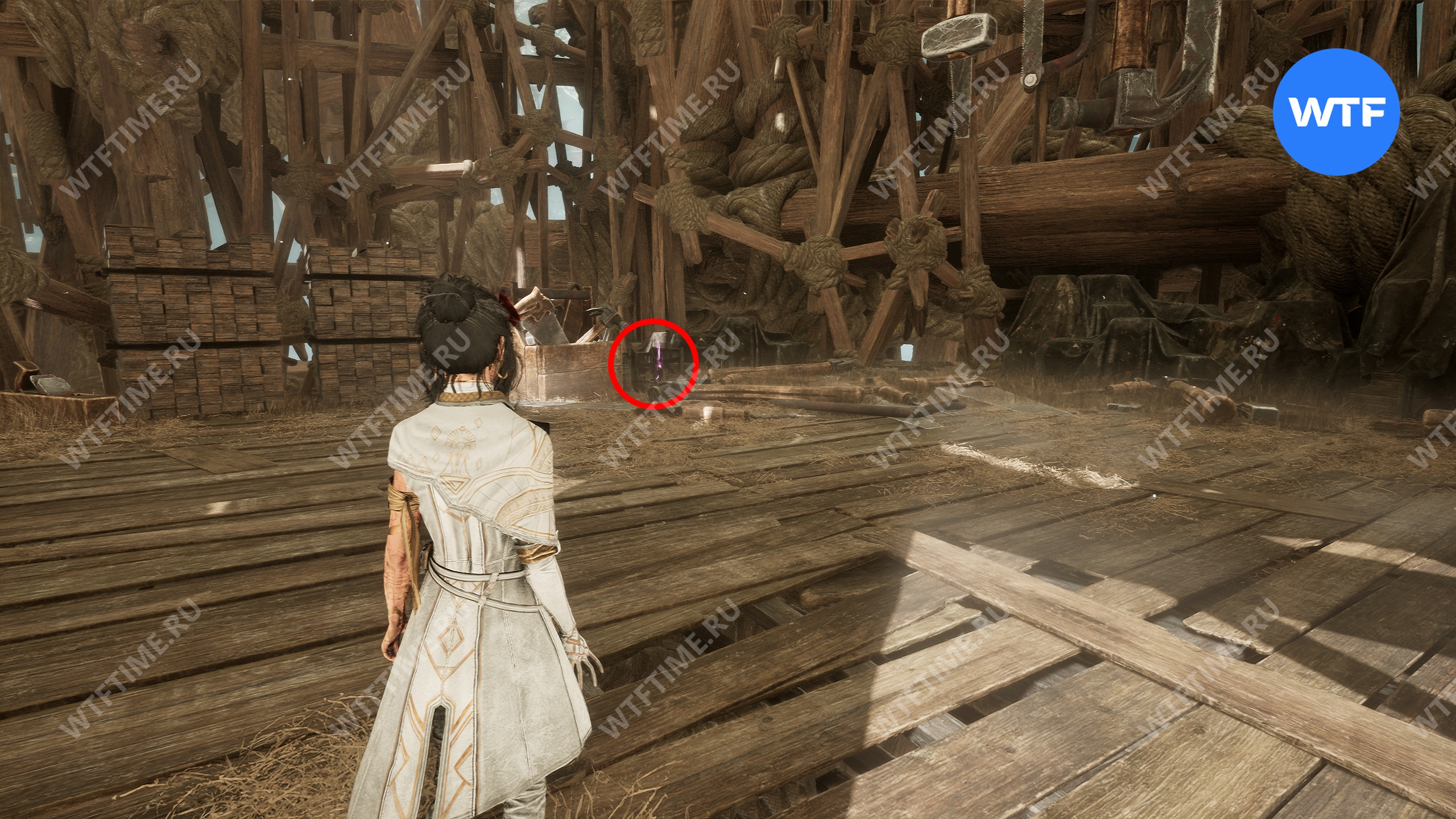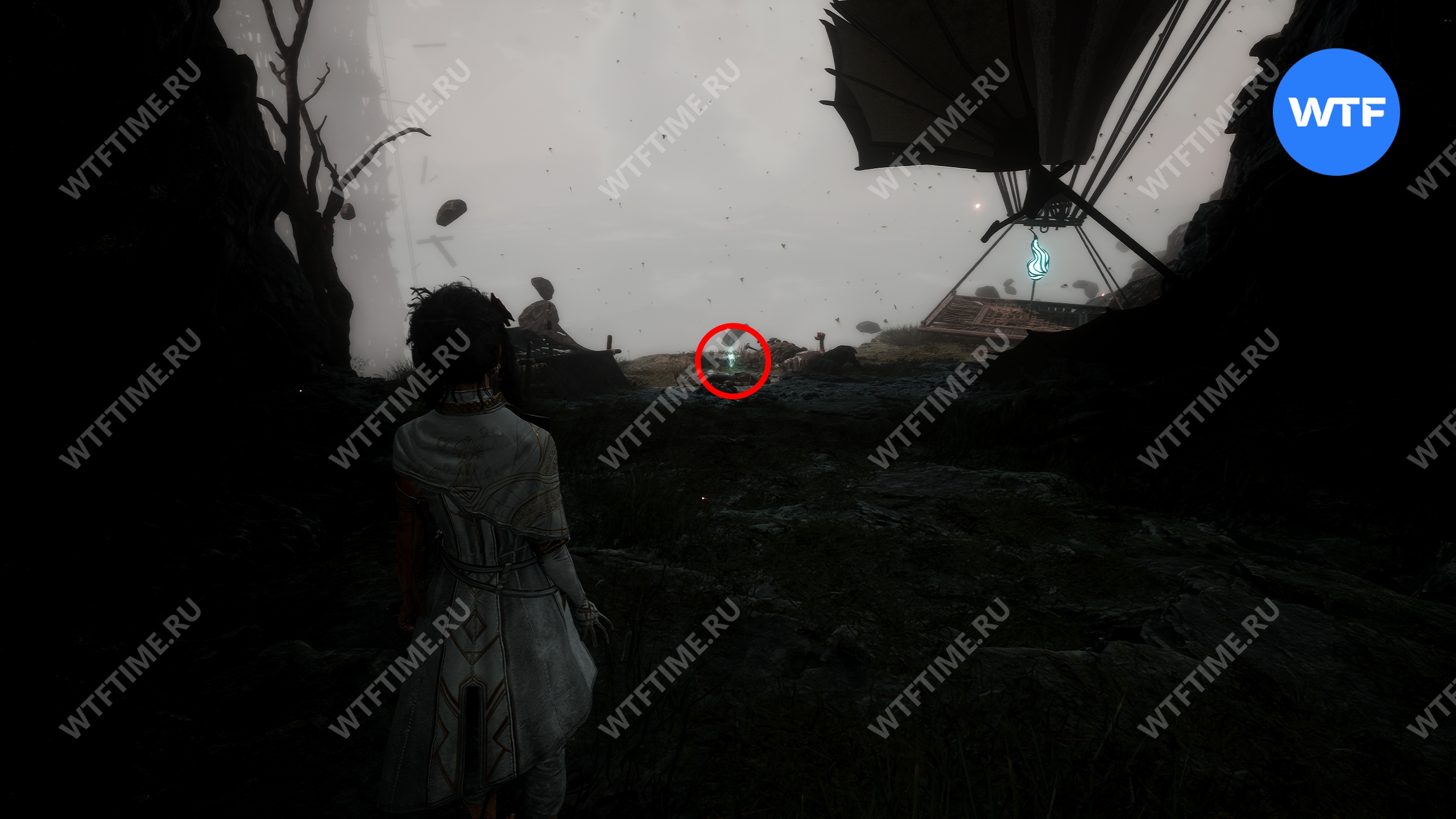 Затем от веревки идите направо и используйте точку захвата. Дойдя по этой тропе до самого конца, вы сможете подобрать 6255 хромы у ящиков.