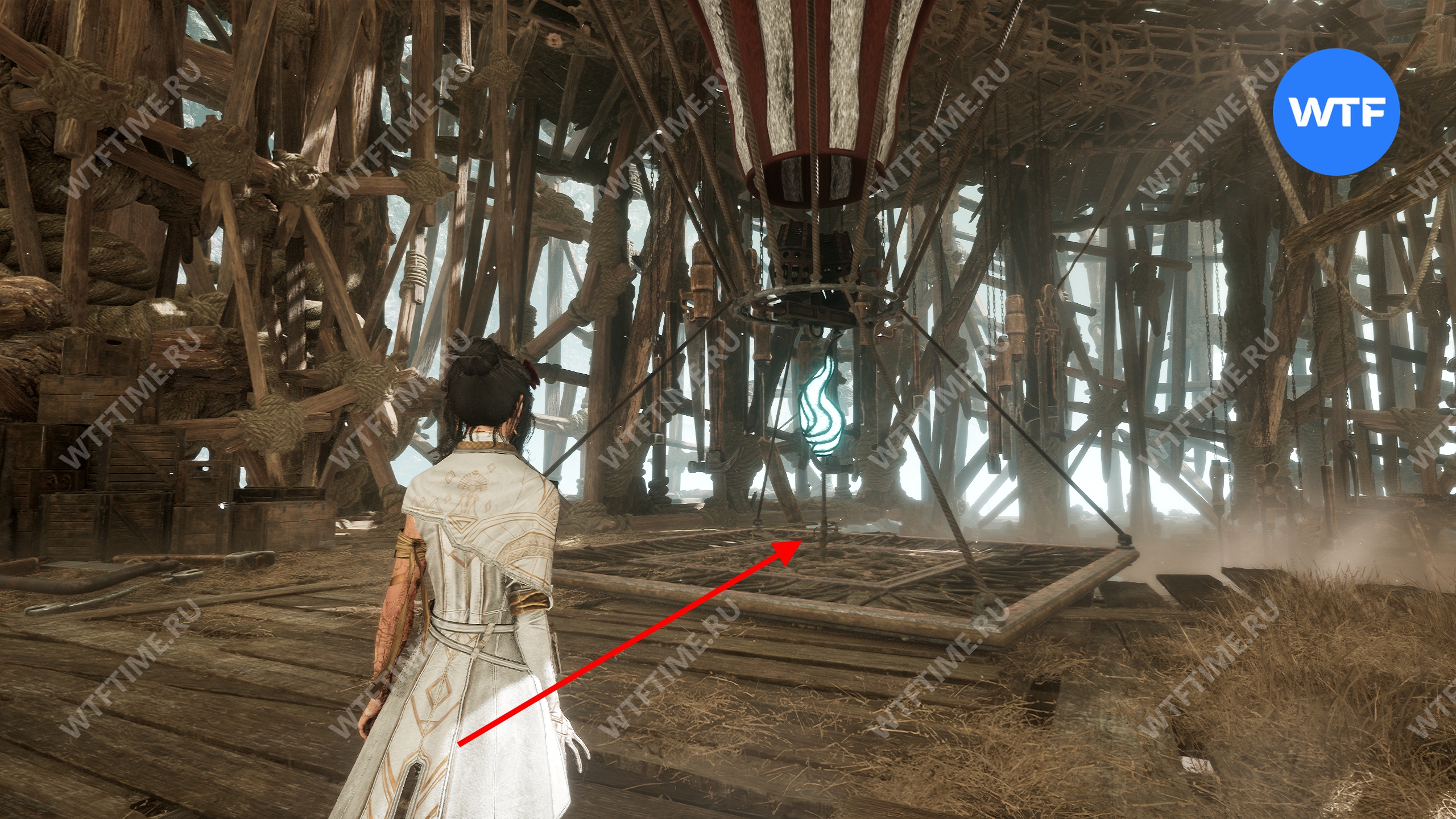 Вернитесь к предыдущей развилке и теперь идите вперед, к светящемуся предмету вдалеке. Чтобы добраться до него, вы должны прыгать по деревянным доскам. Если свалитесь вниз, используйте веревку и начните сначала.