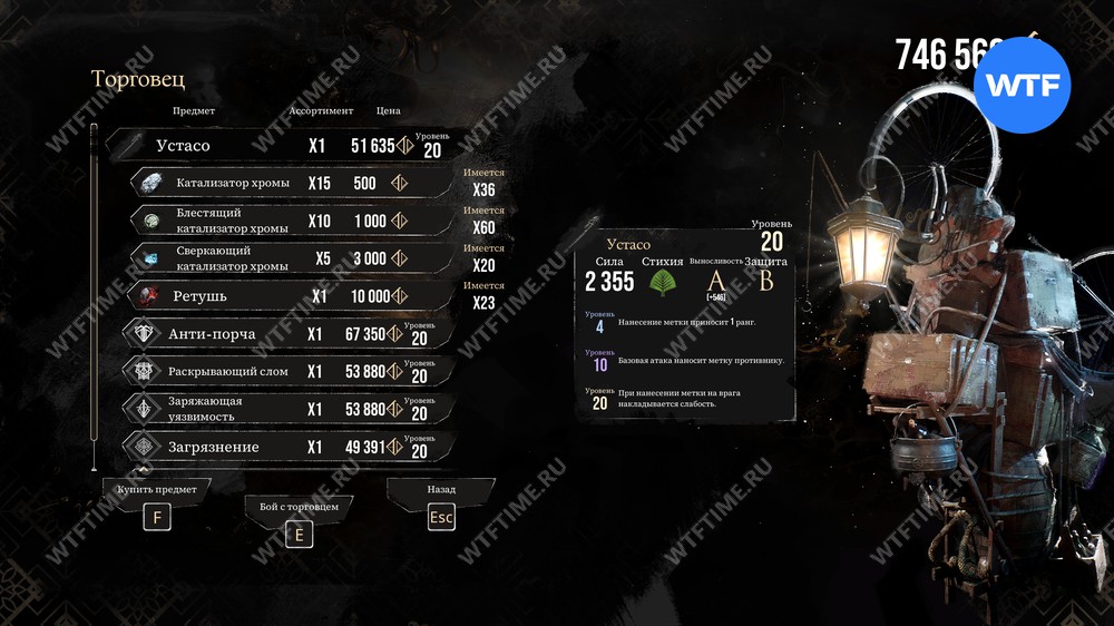 - Загрязнение (уровень 20, защита 1022, шанс крит. удара 12%) — дает +15% наносимого урона за каждый эффект состояния на персонаже;