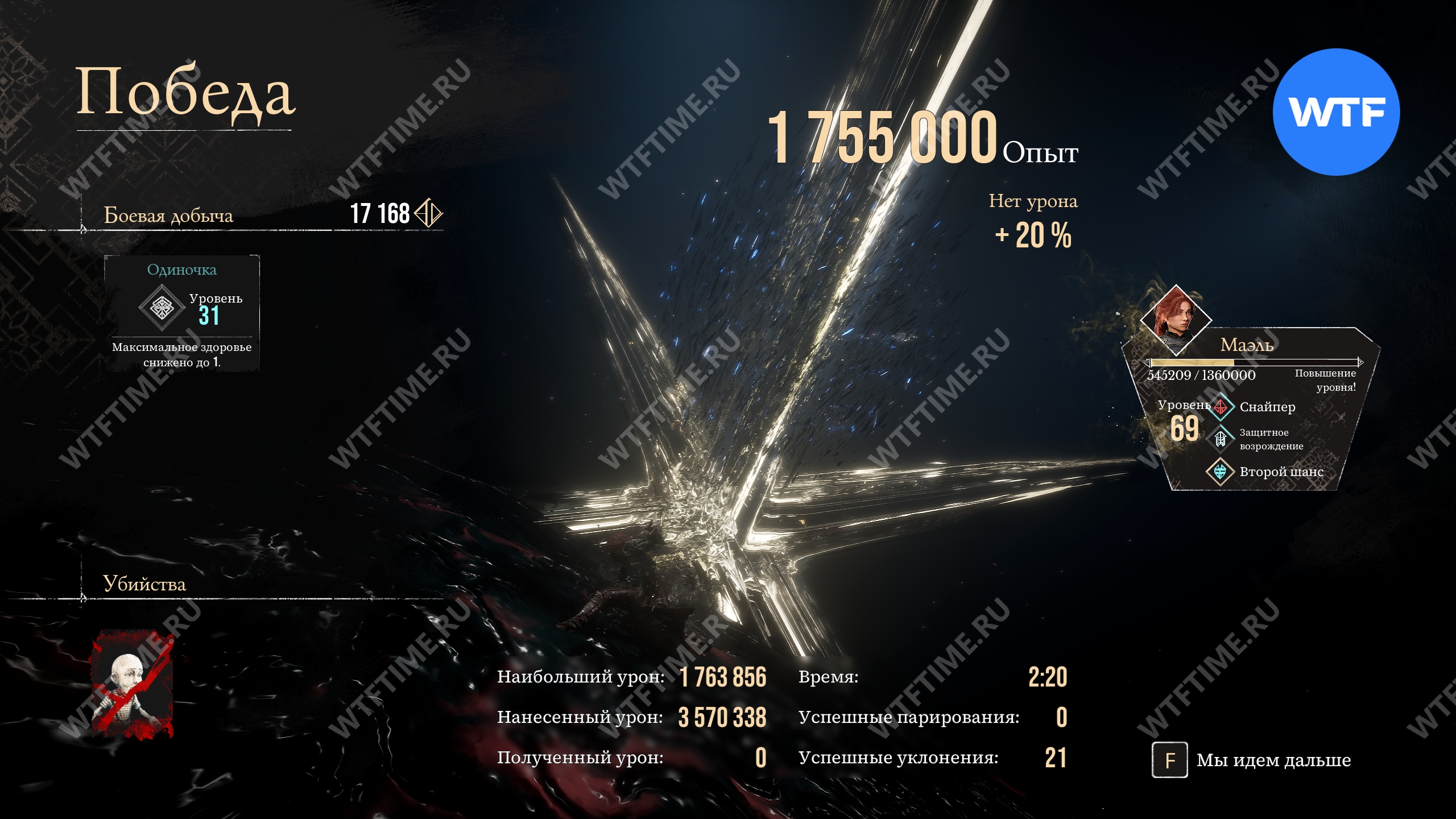За первую победу над мимом вы получите пиктос «Одиночка» (уровень 31, шанс крит. удара 108%), снижающий максимальное здоровье до 1, а также стрижку «Бритая голова» для одолевшего его персонажа.