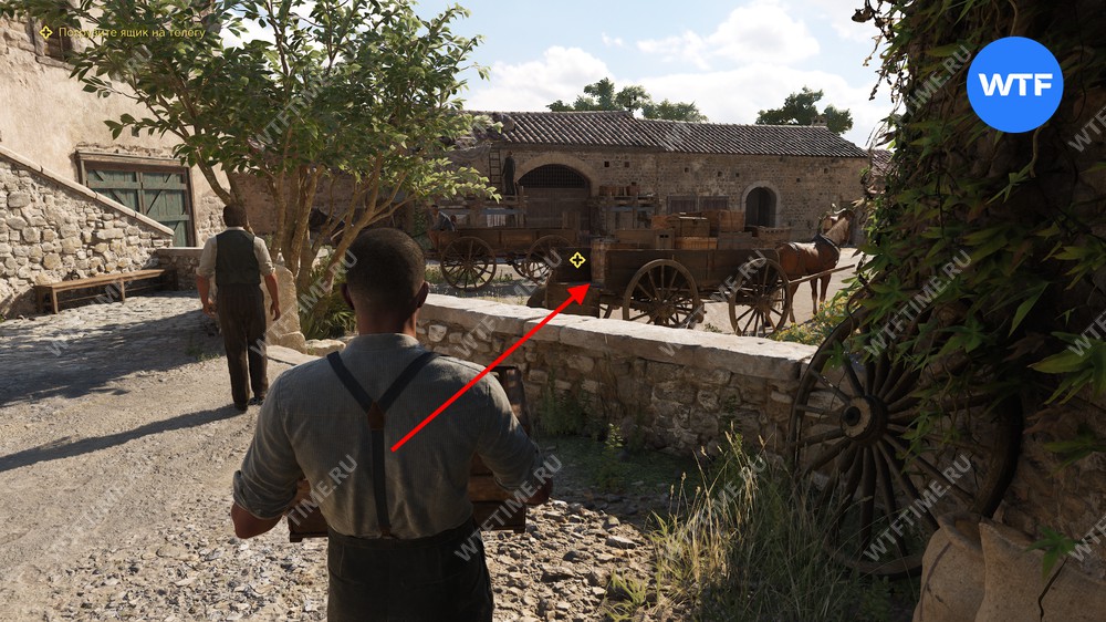 Перетаскайте все три ящика в стоящую справа от входа телегу, а затем снова поговорите с Чезаре. На этот раз он отправит вас помогать Валентине.