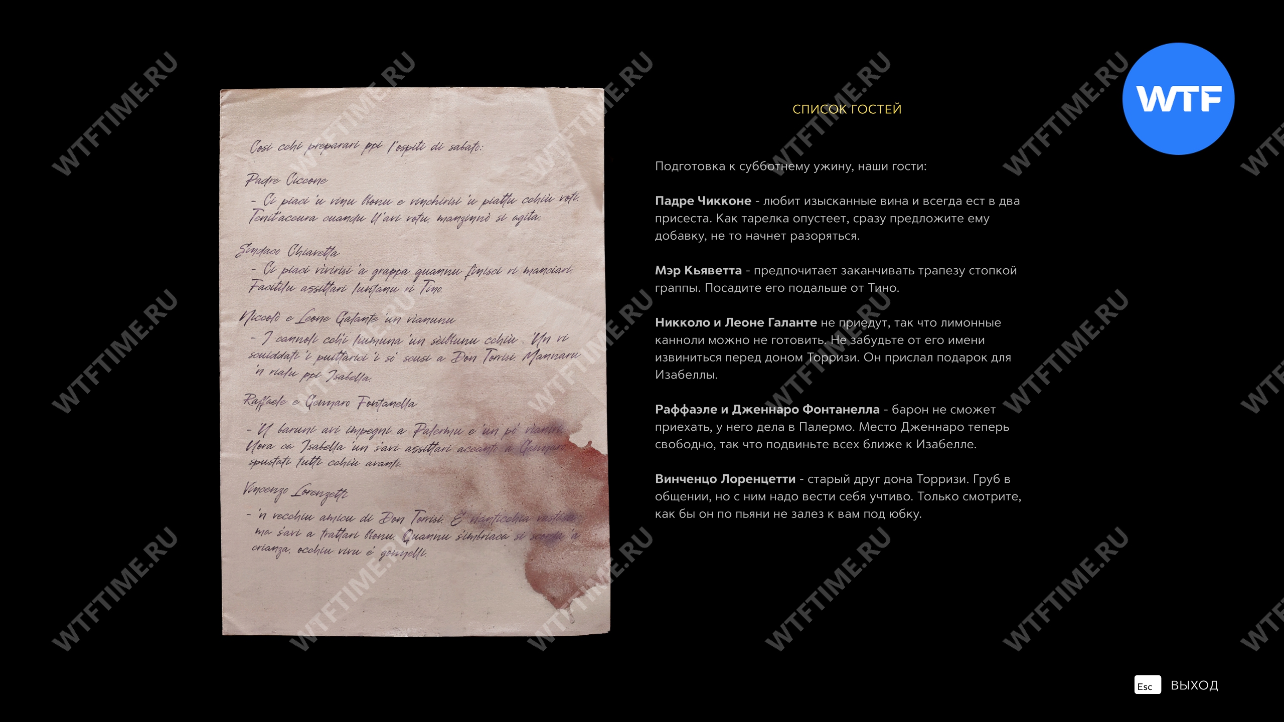 Чезаре скажет вам следовать за ним, но прежде чем покидать комнату, заберите записку «Список гостей» с комода справа от выхода.