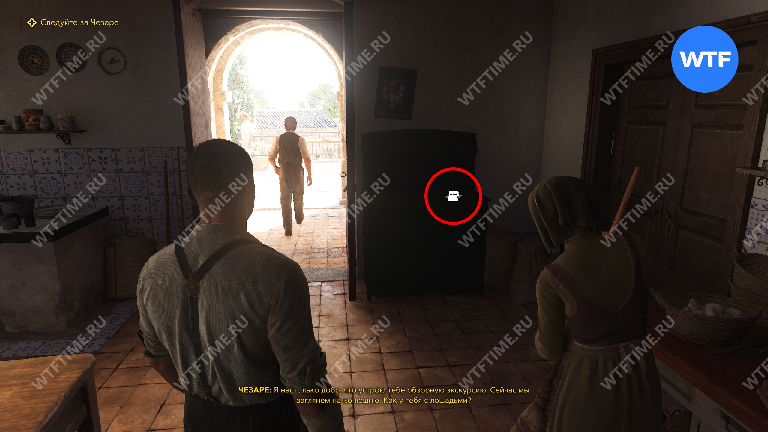 Закончив уборку конюшни, снова поговорите с Чезаре, после чего сможете немного осмотреться перед ужином.