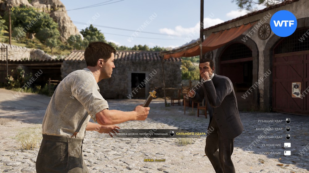 Выйдя из магазина, вам предстоит поучаствовать в тренировочном поединке с Лукой, во время которого вас научат парировать, уклоняться, а также использовать сильный удар, пробивающий блоки.