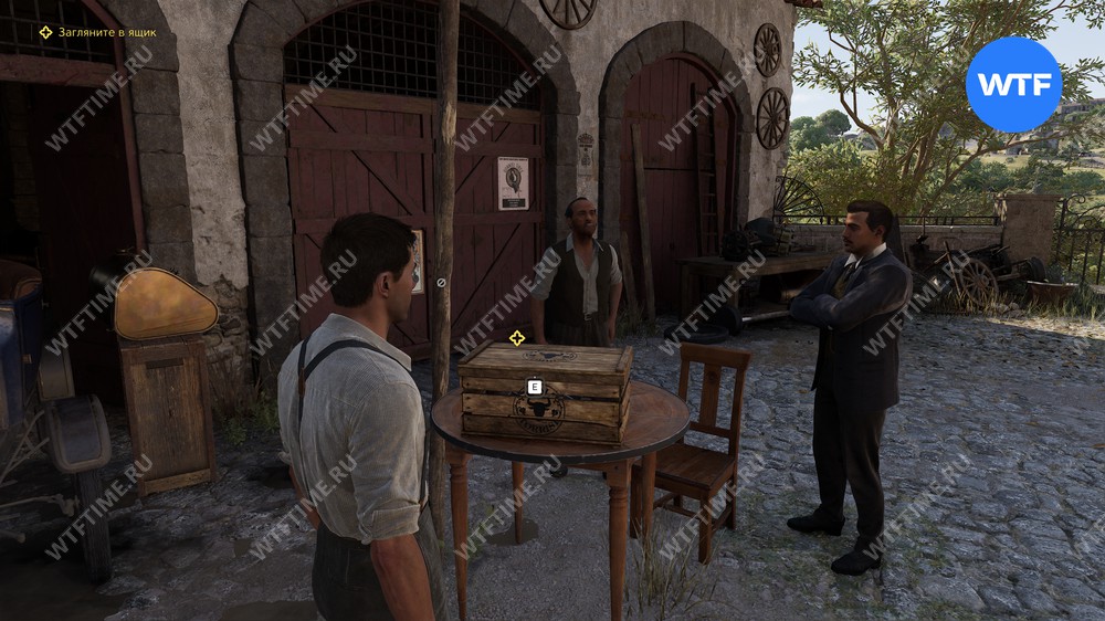 Ящик тяжелый, поэтому ходить вы будете медленно, да и от девушки далеко отойти не получится, поэтому поиски коллекционок в городке лучше отложить до лучших времен.