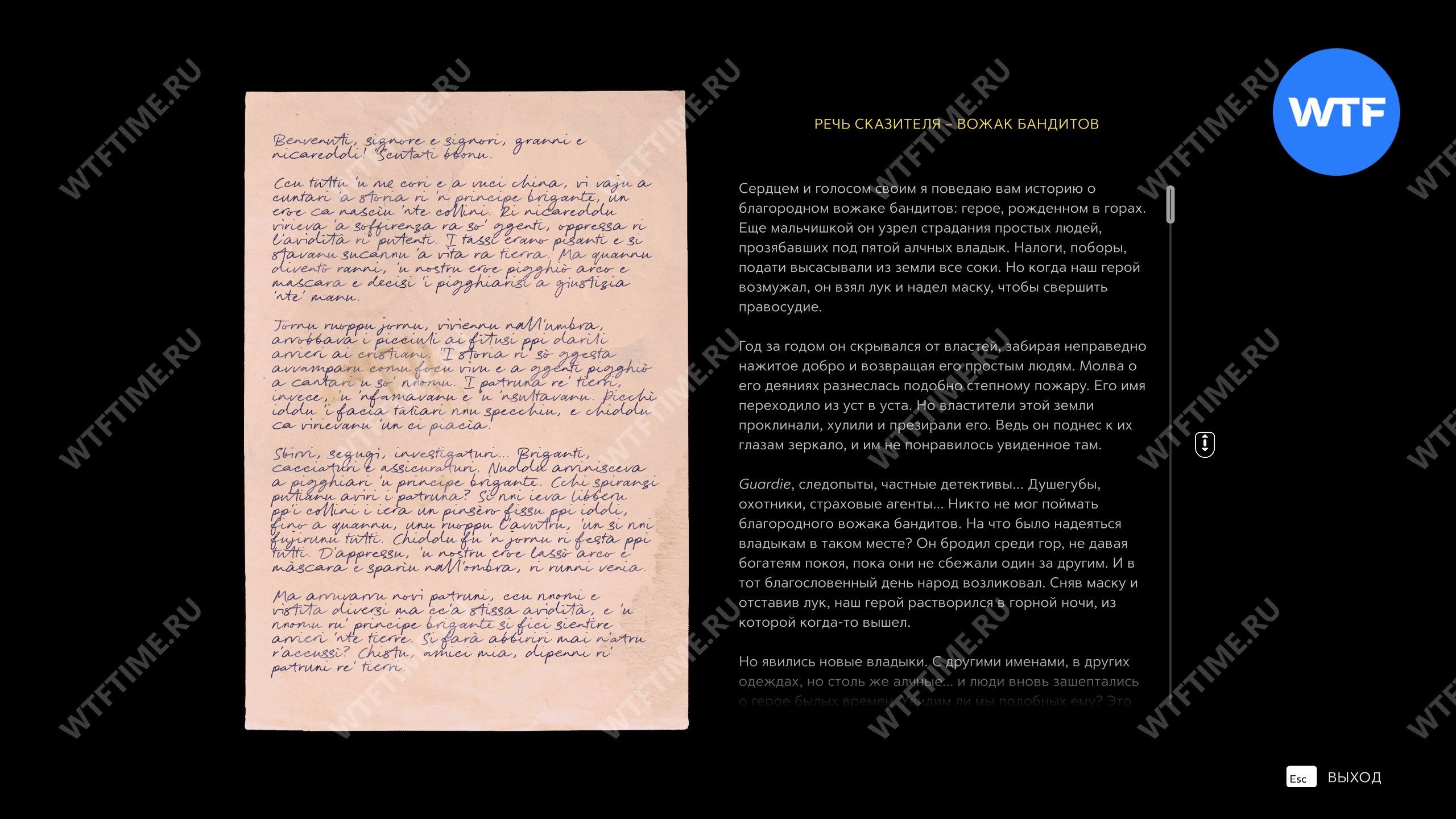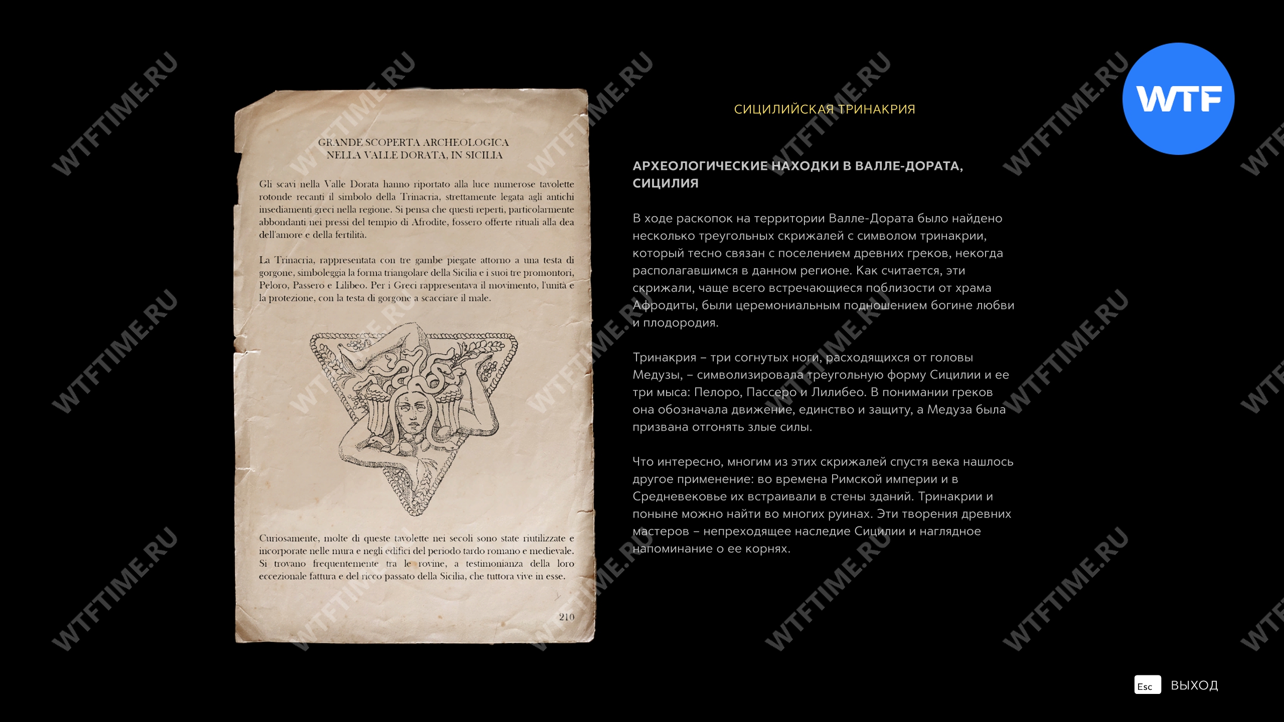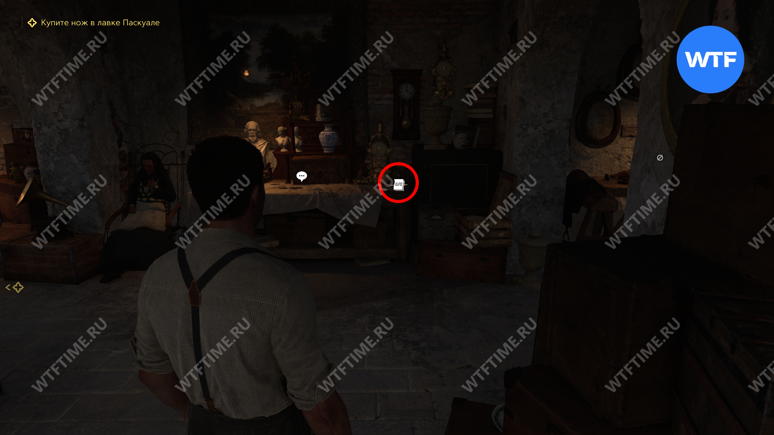 Затем спуститесь по лестнице в небольшой магазинчик, где вас ждет мать Паскуале. На столе напротив входа здесь можно подобрать записку «Сицилийская тринакрия», которая расскажет вам больше про эти предметы.