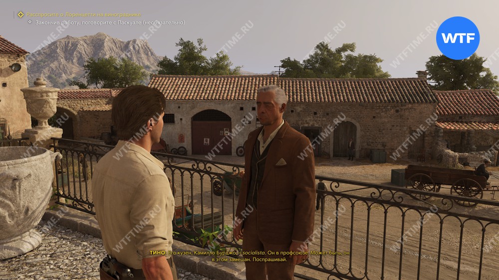 Глава начинается с кат сцены в кабинете дона Торризи, во время которой тот поручит Энцо отыскать пропавшего бригадира Лоренцетти. Выйдите вместе с Лукой во двор, а затем следуйте за квестовым маркером, чтобы опросить местных работников.