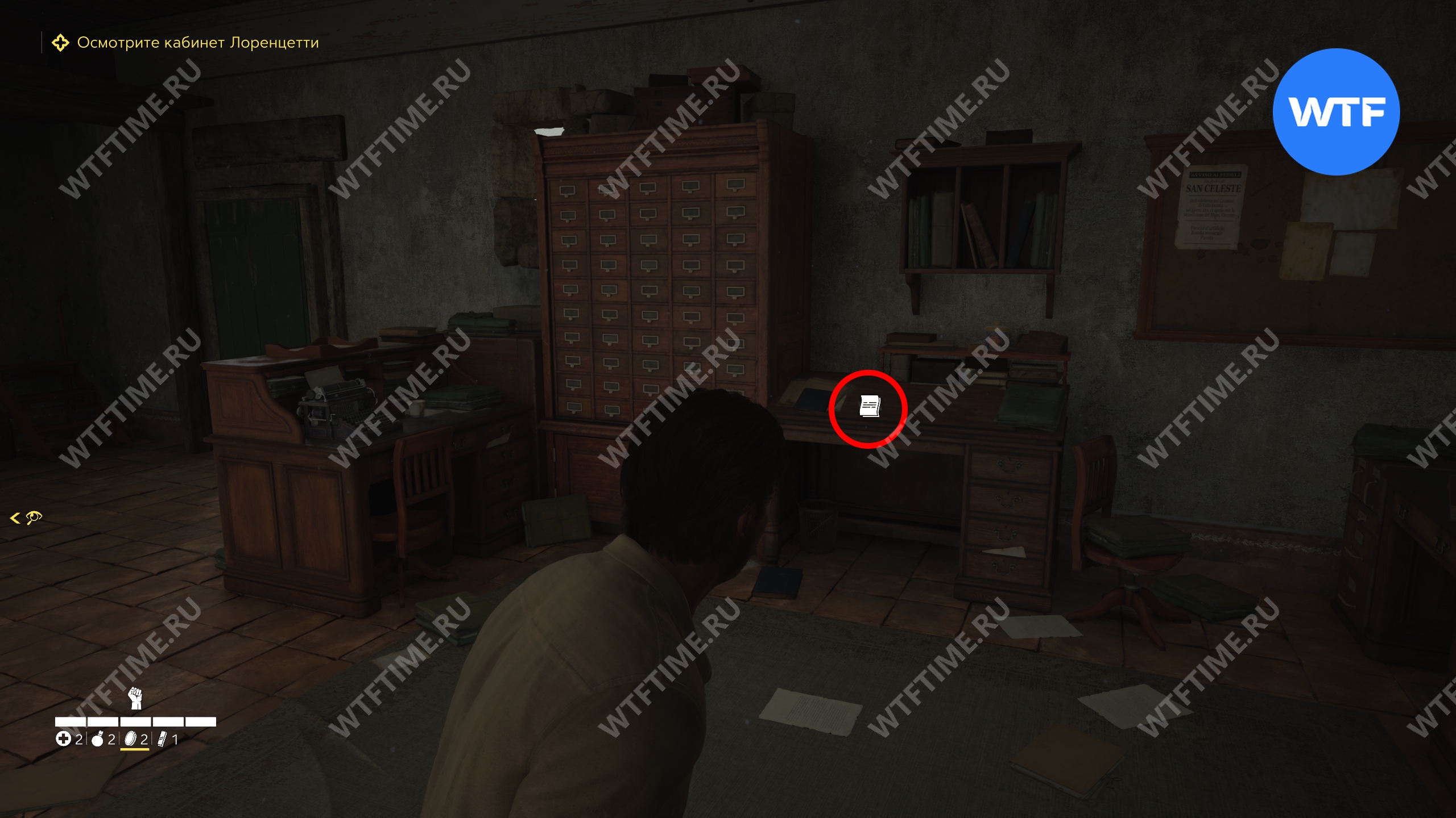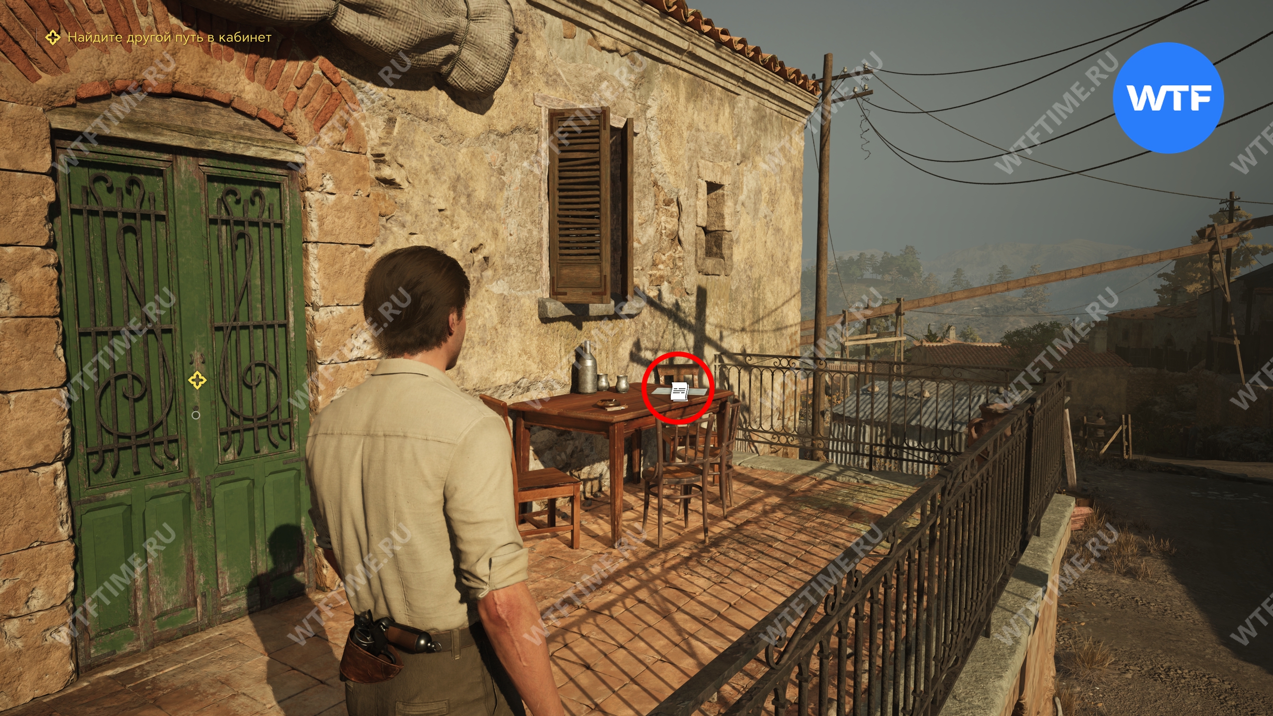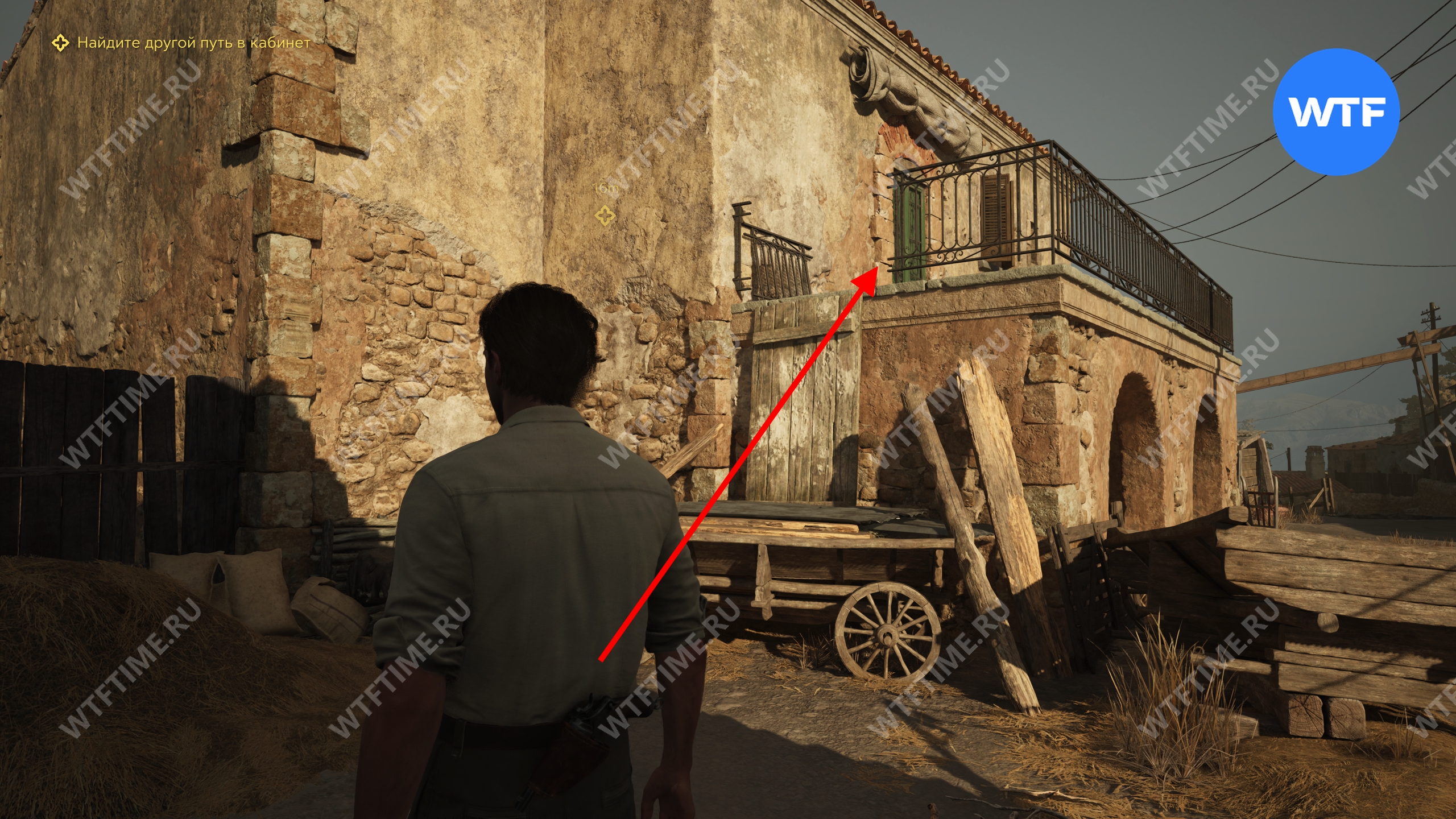 Теперь попробуйте войти в кабинет Лоренцетти. Дверь будет заперта, поэтому вы должны обойти здание и залезть на балкон, используя стоящую рядом телегу. После этого записка «Увольнение комиссара полиции» будет лежать на столике справа от зеленой двери.