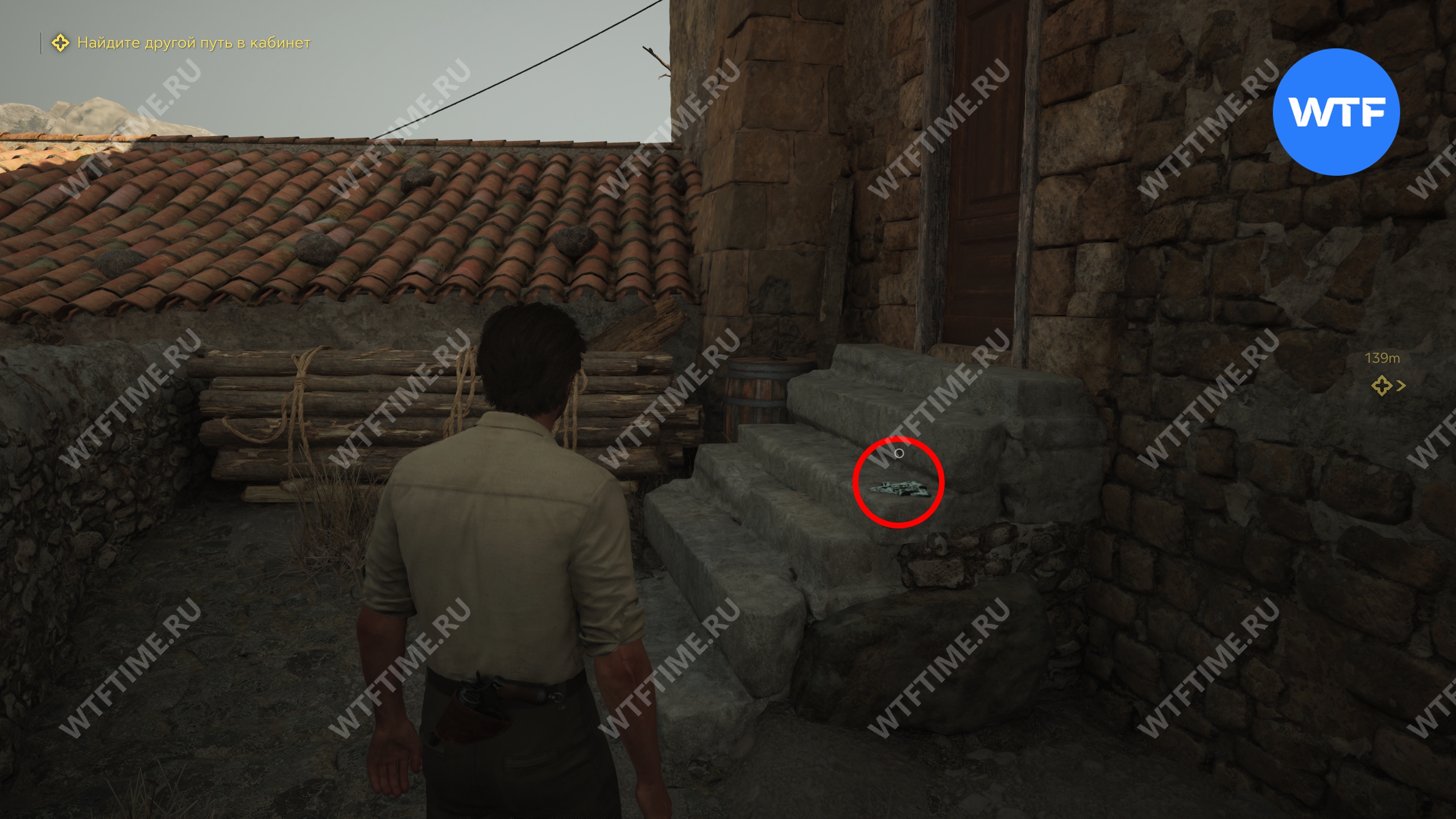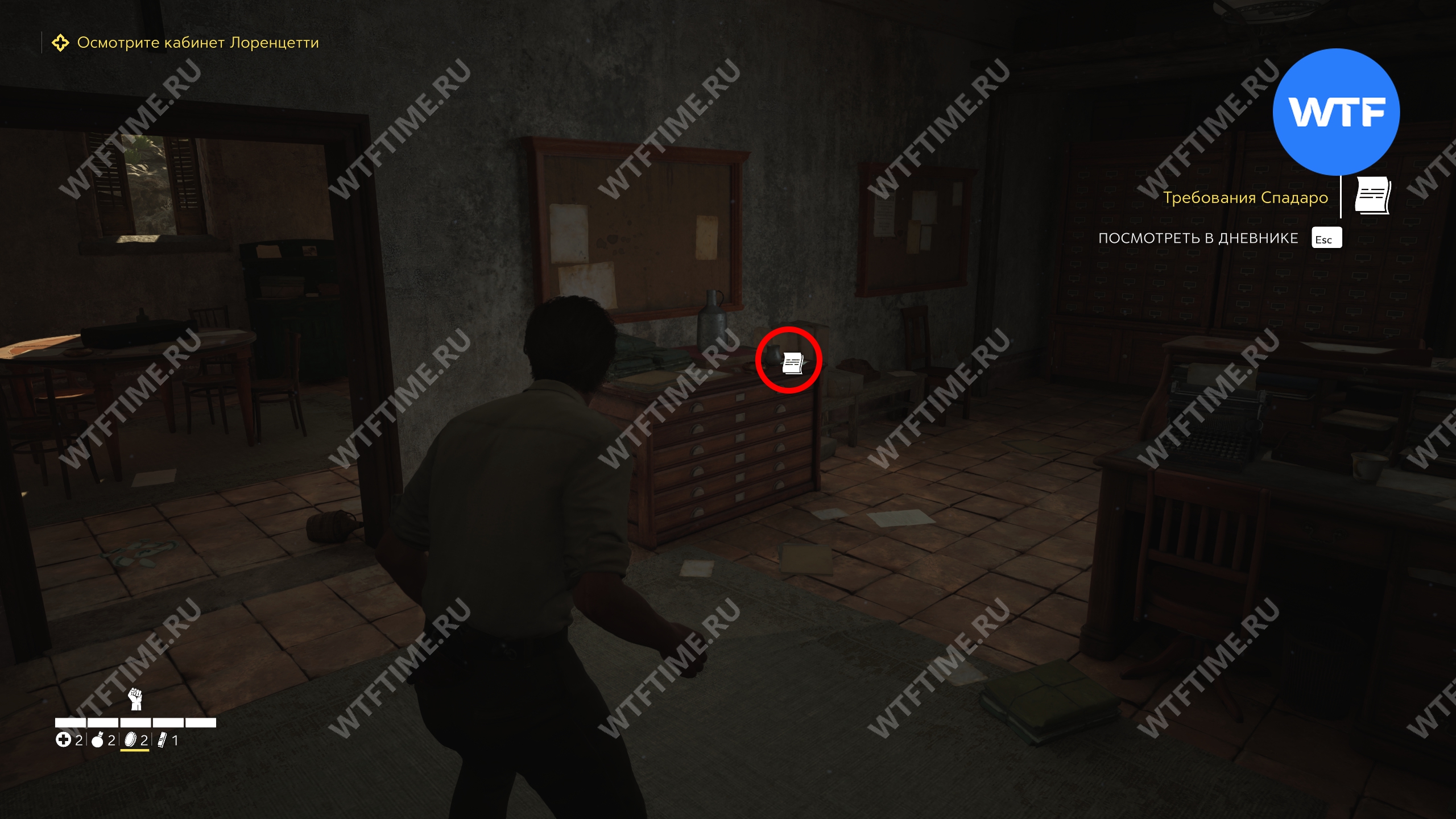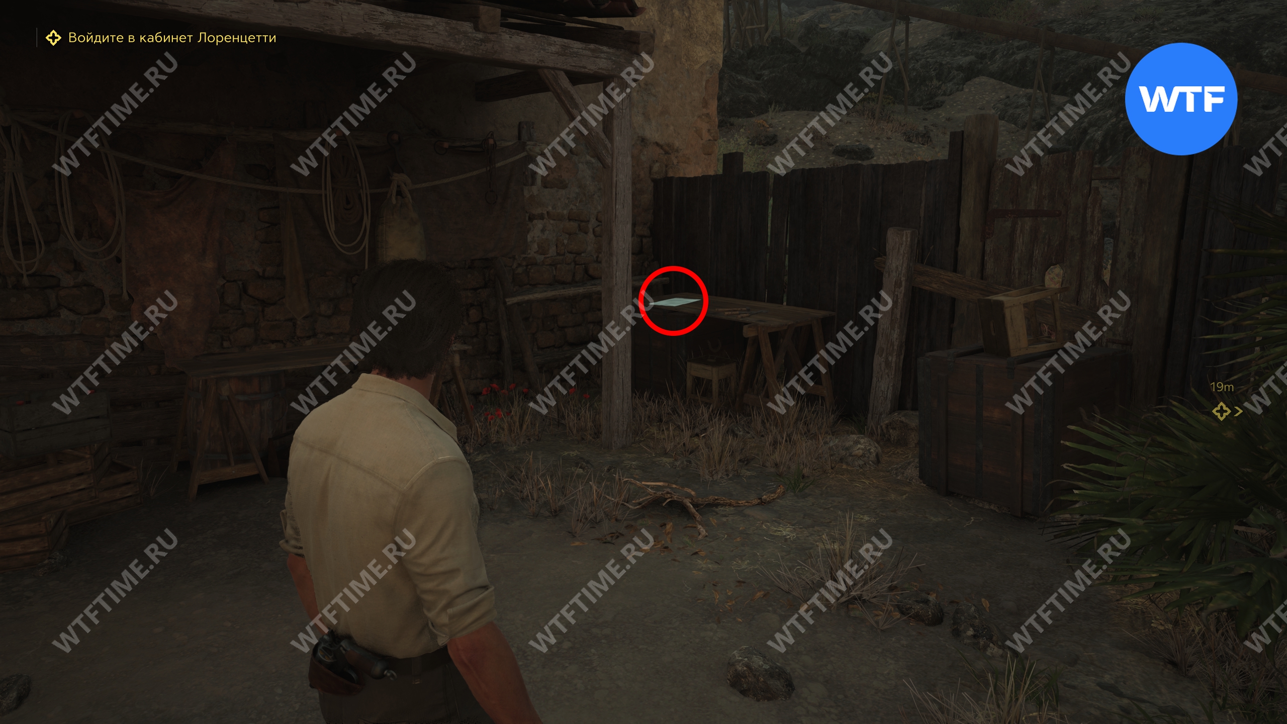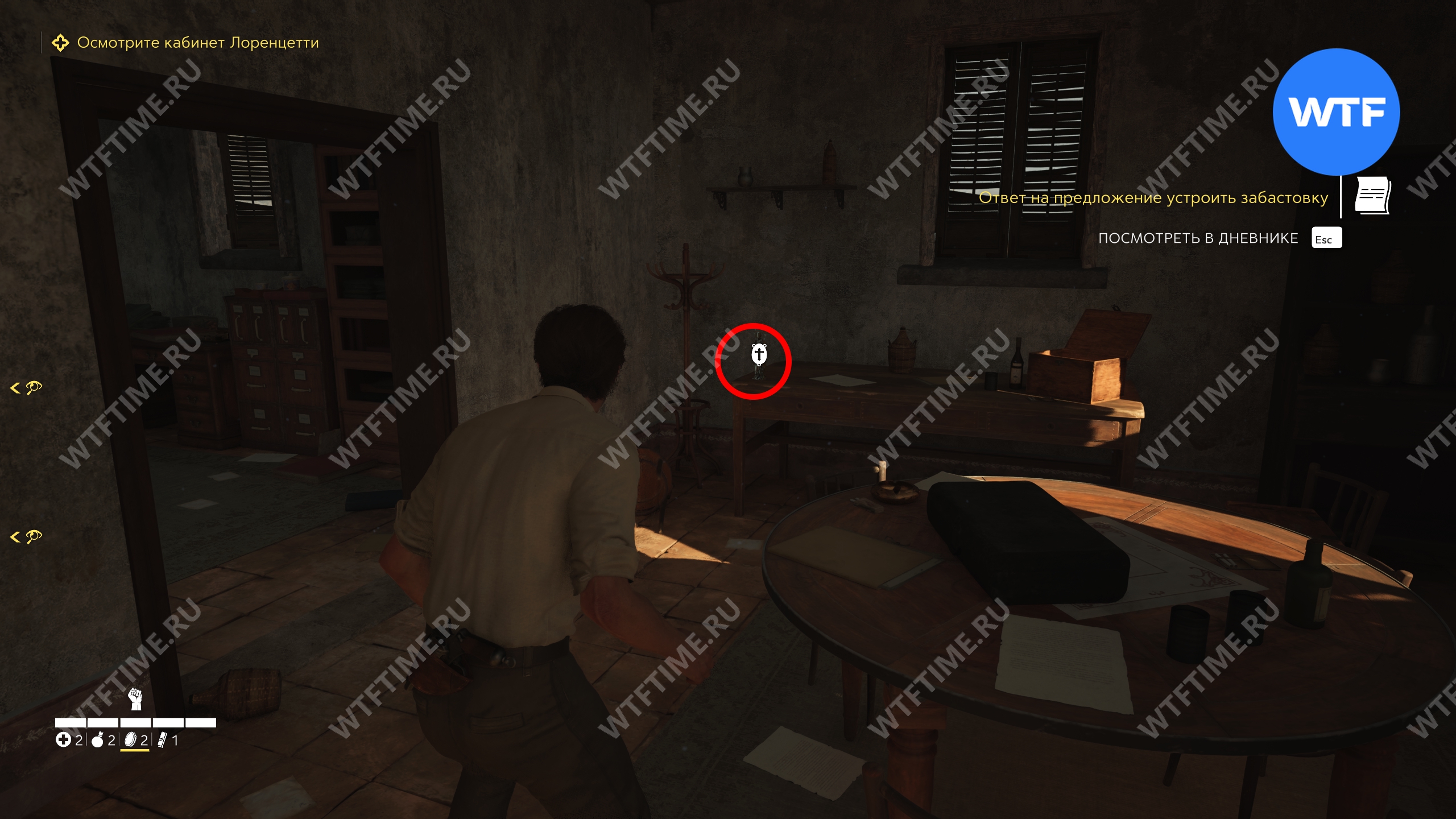Теперь попробуйте войти в кабинет Лоренцетти. Дверь будет заперта, поэтому вы должны обойти здание и залезть на балкон, используя стоящую рядом телегу. После этого записка «Увольнение комиссара полиции» будет лежать на столике справа от зеленой двери.