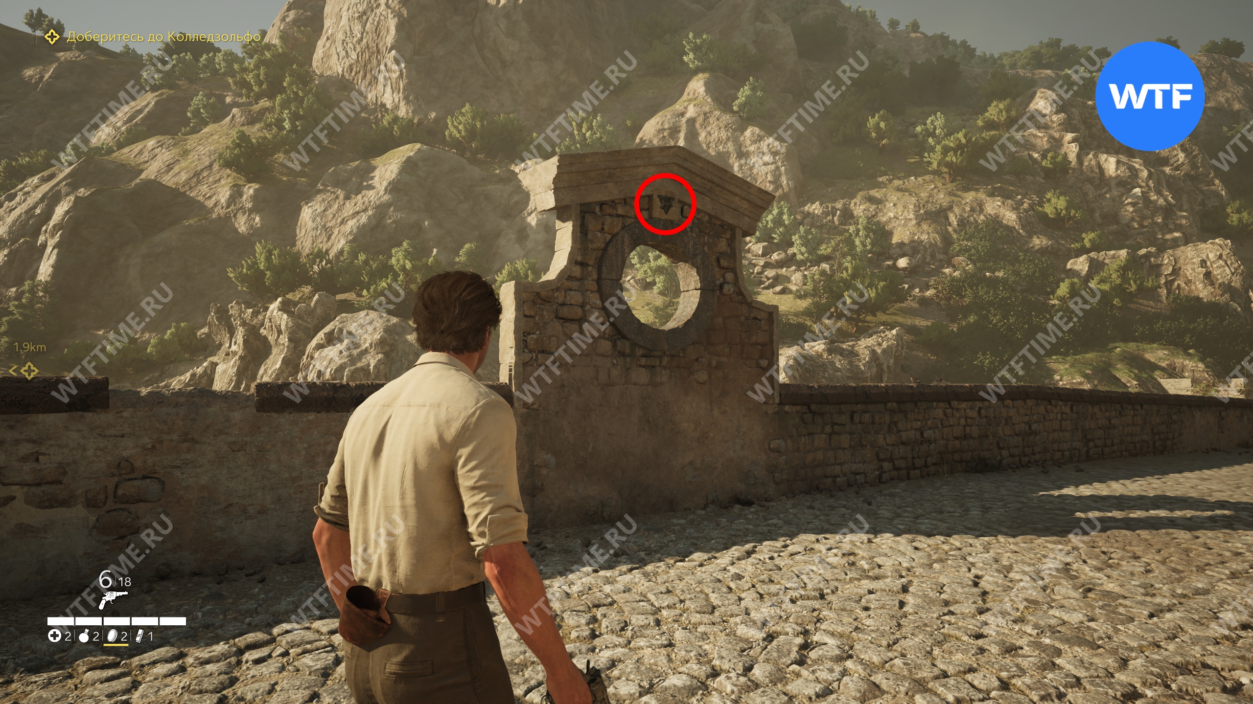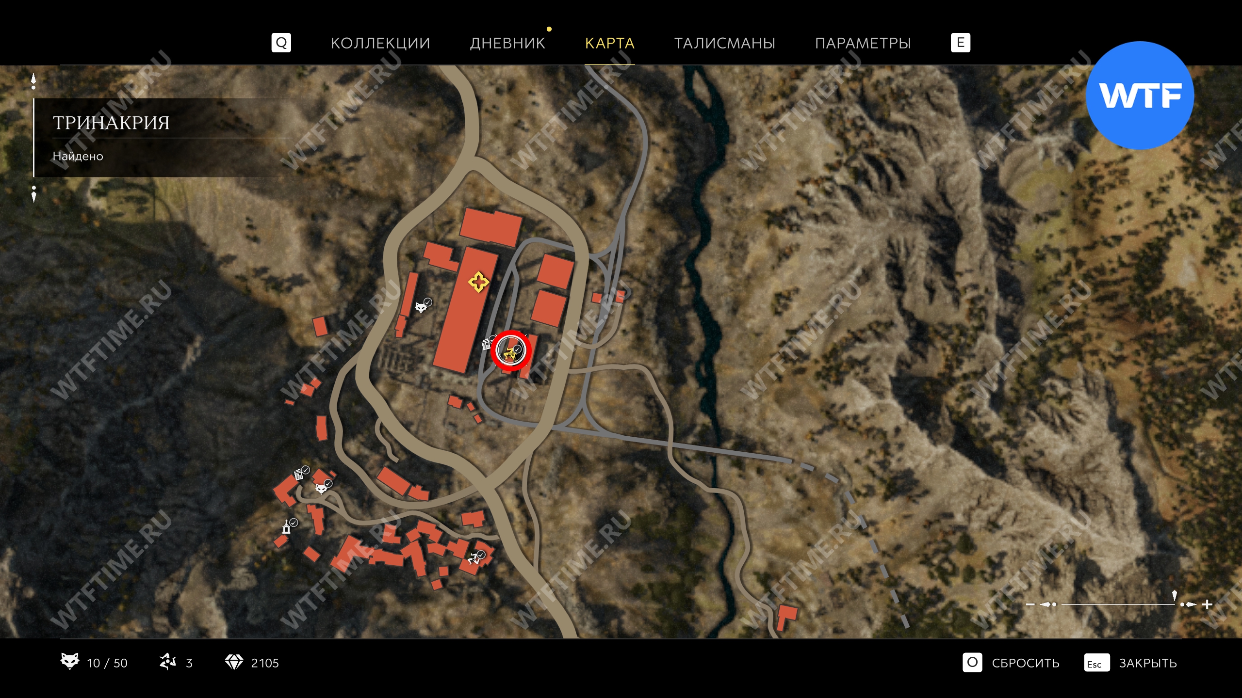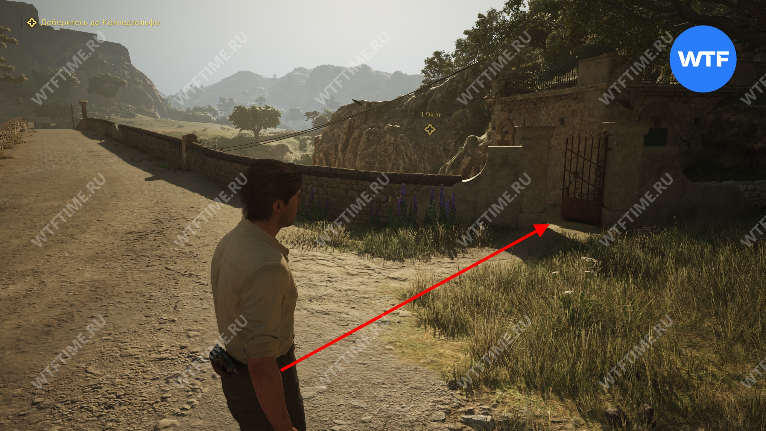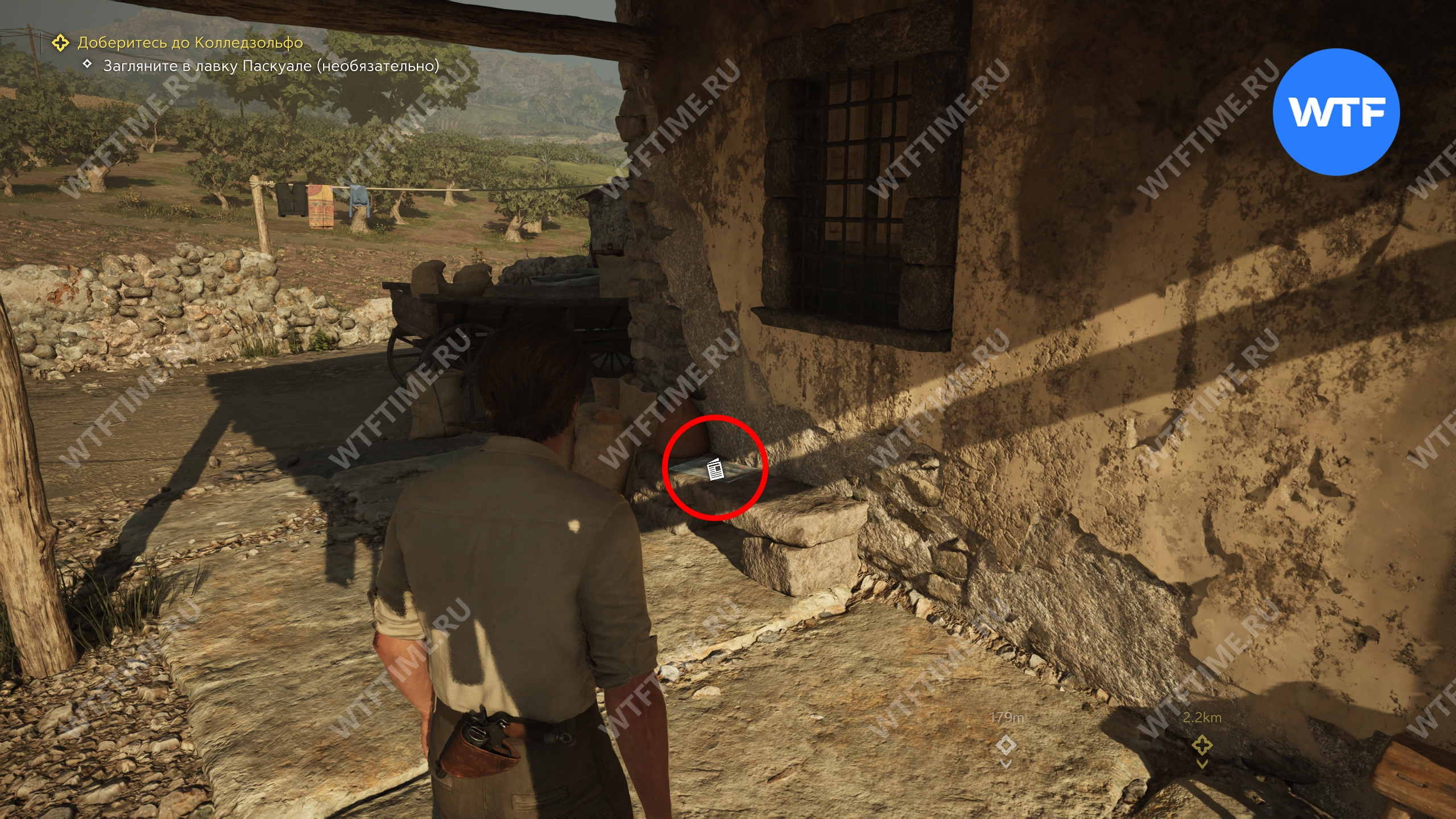 Припарковавшись в Колледзольфо, идите к зданию на юго-востоке, отмеченному на скриншоте ниже. Поднимитесь по каменной лестнице и заберите тринакрию, лежащую на ступеньках.