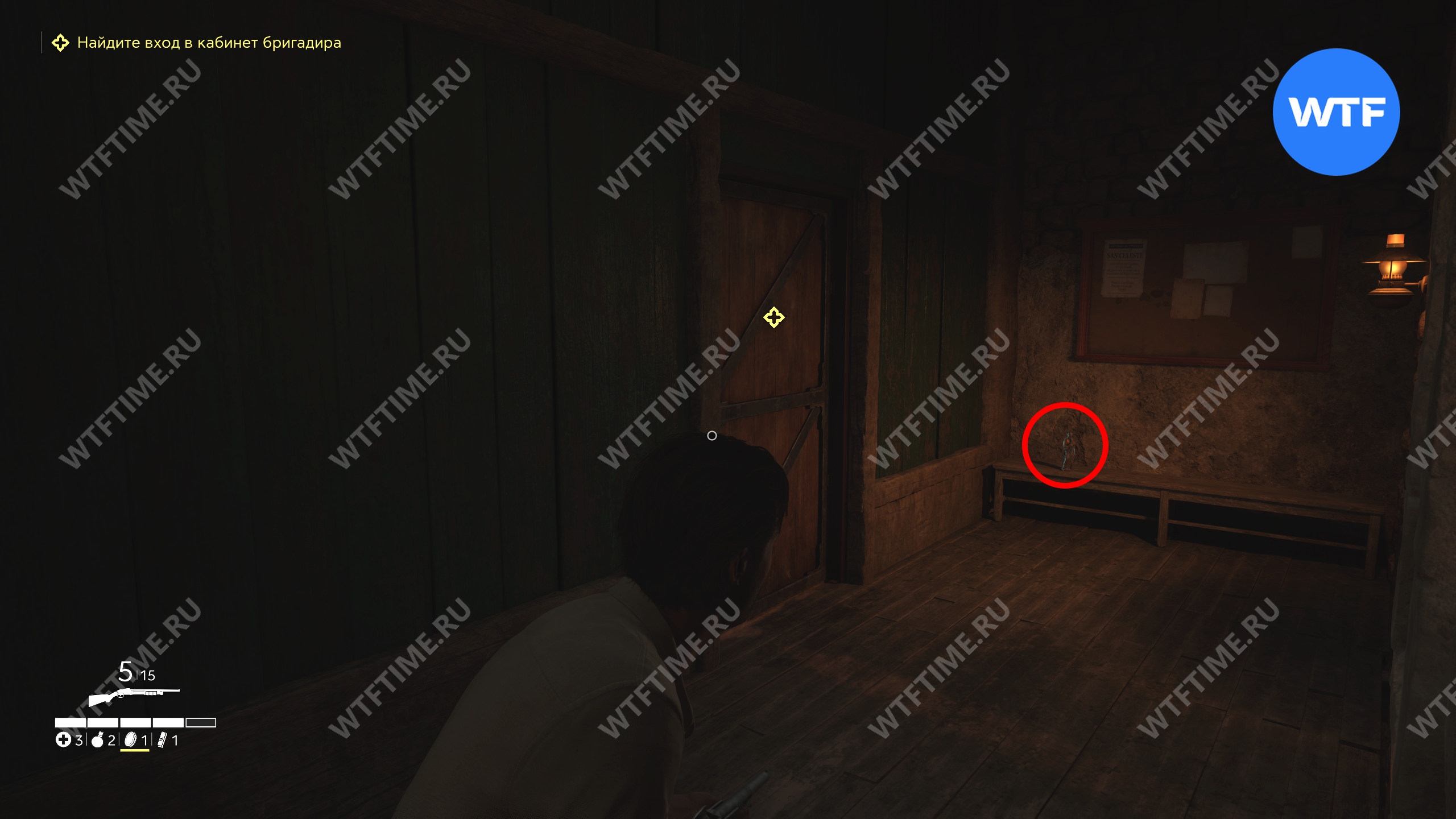 Следуйте за квестовым маркером к кабинету бригадира и поднимитесь по лестнице наверх. Прежде чем заходить в дверь кабинета, заберите справа от неё бусину «Brutale», увеличивающую урон, который наносит ваше оружие дальнего боя.