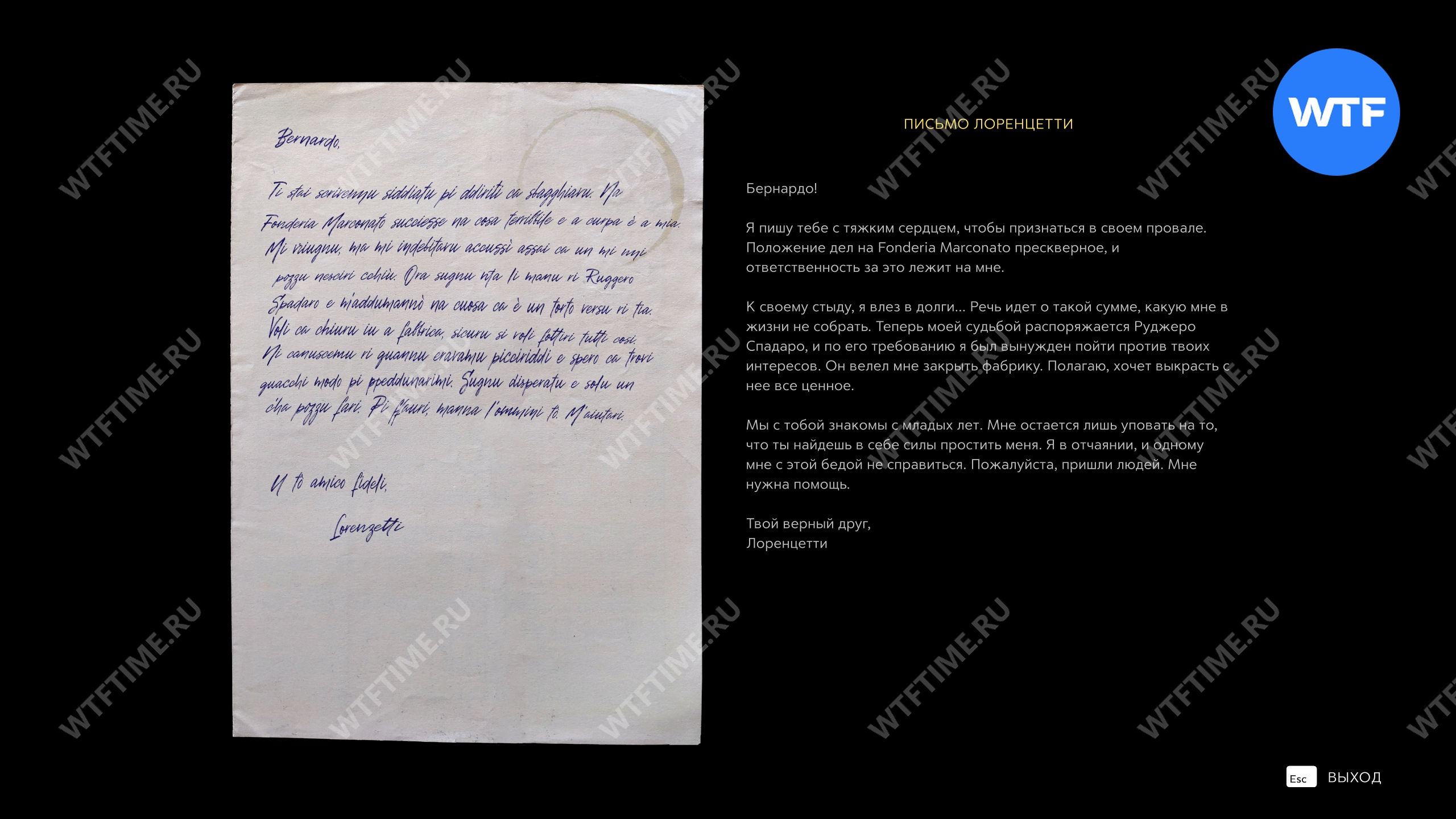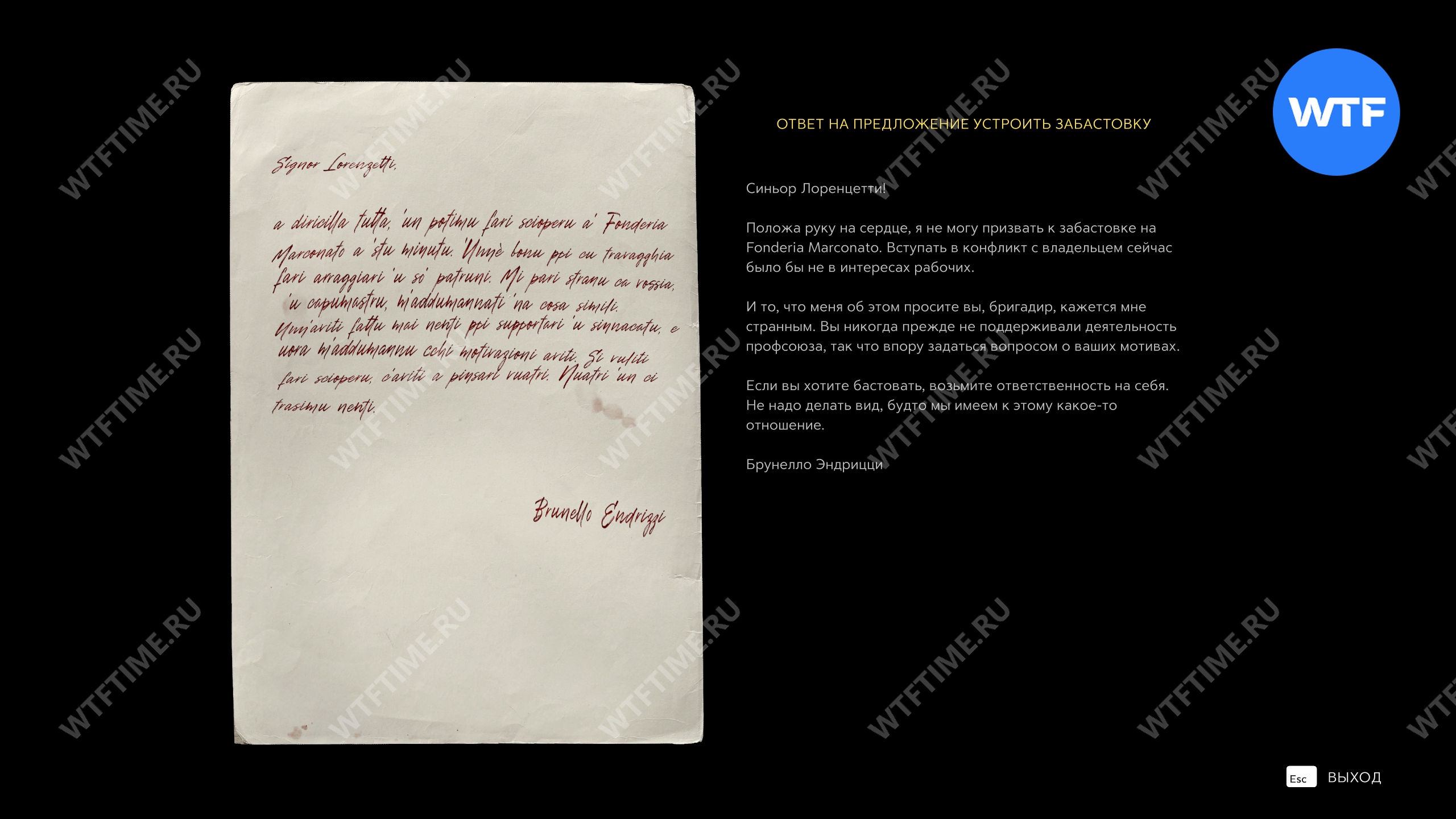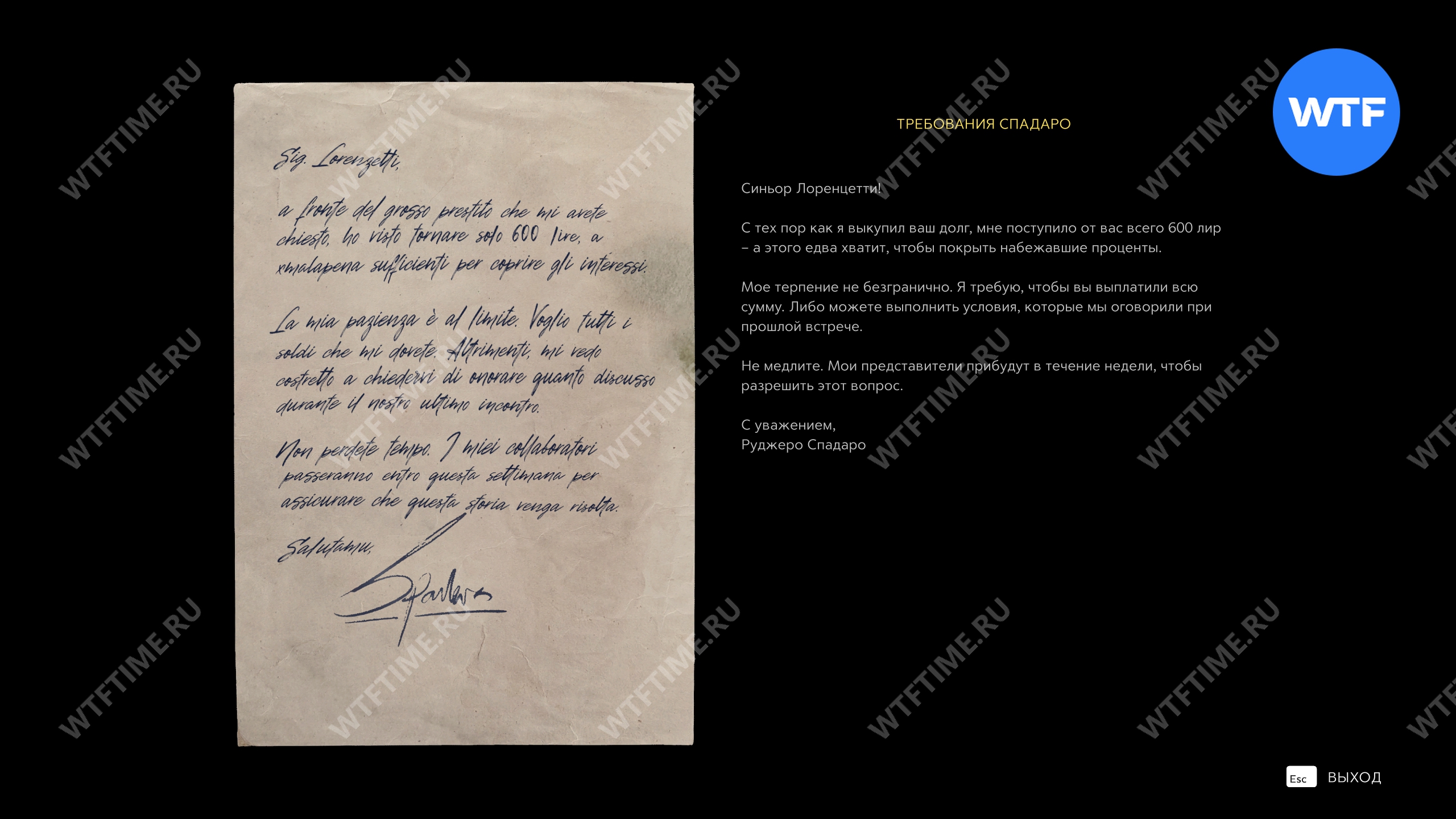 На столах в следующей комнате можно найти еще две записки: «Требования Спадаро» и «Письмо Лоренцетти».