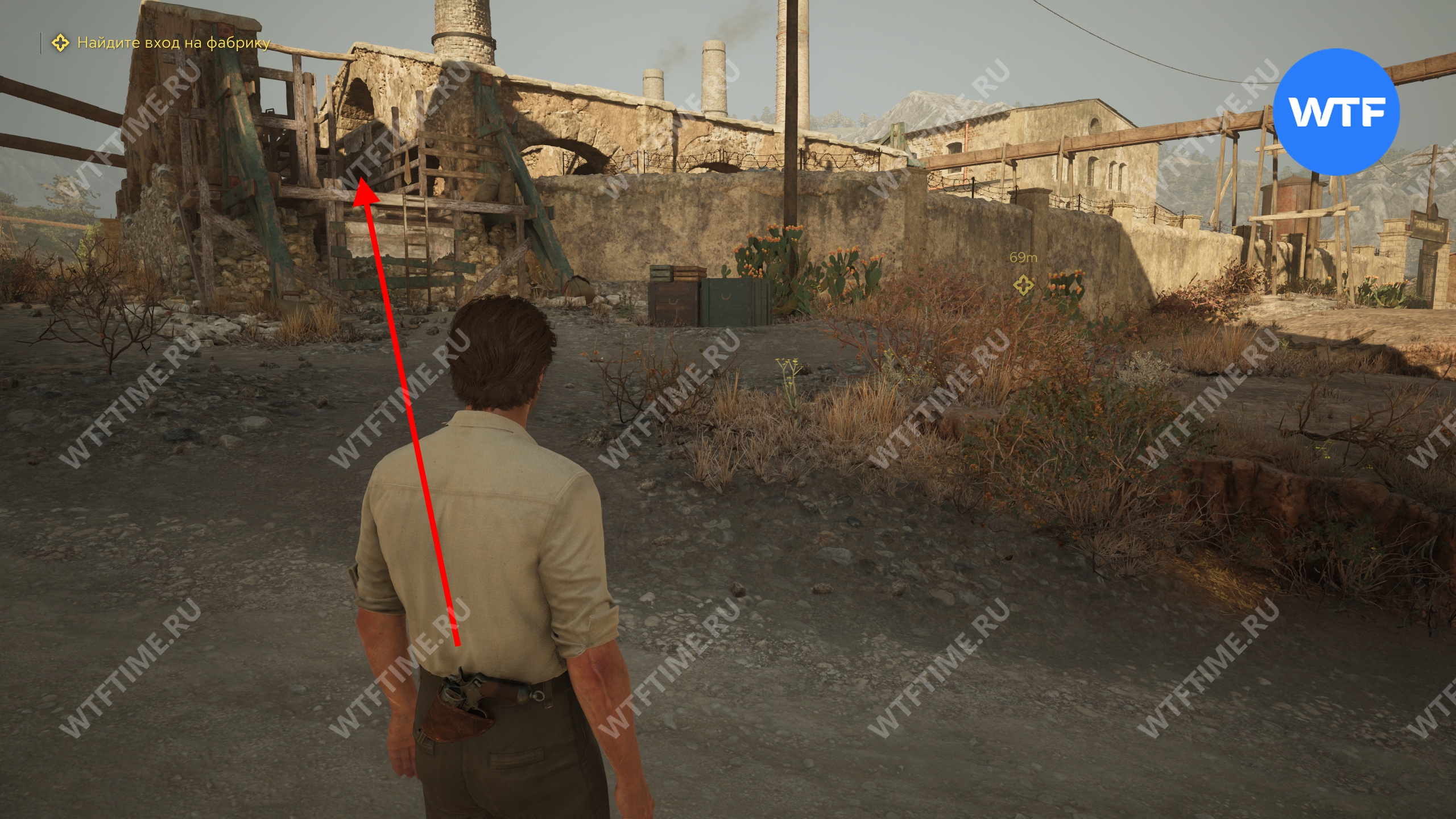 Есть два боковых пути, которыми вы можете проникнуть на фабрику: по приставной лестнице слева или через дыру в заборе справа. Оба пути примерно равнозначны по сложности и приведут вас к главному зданию.
