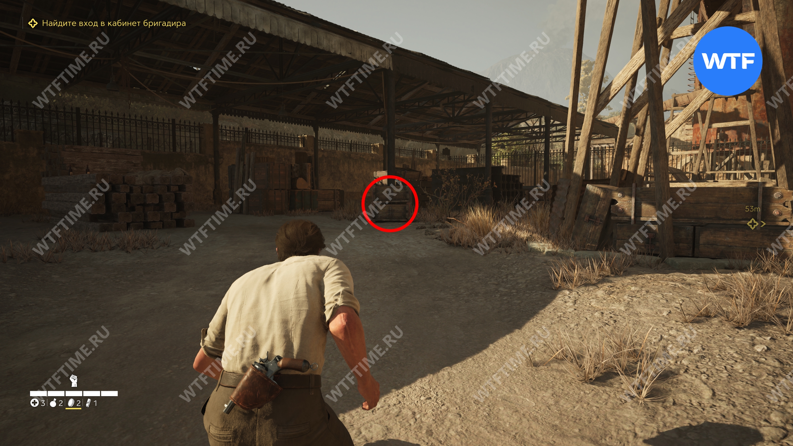 Из этого здания вы сначала должны выйти во двор слева, чтобы забрать фигурку загадочной лисицы, лежащую в деревянном ящике возле металлической опоры в дальней части двора.