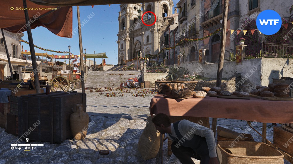 Когда вы приблизитесь к ступенькам церкви, Чезаре начнет стрелять в Il Merlo, чтобы дать вам зайти внутрь. Начинайте бежать, как только услышите звуки пуль, которые попадают в колокол.