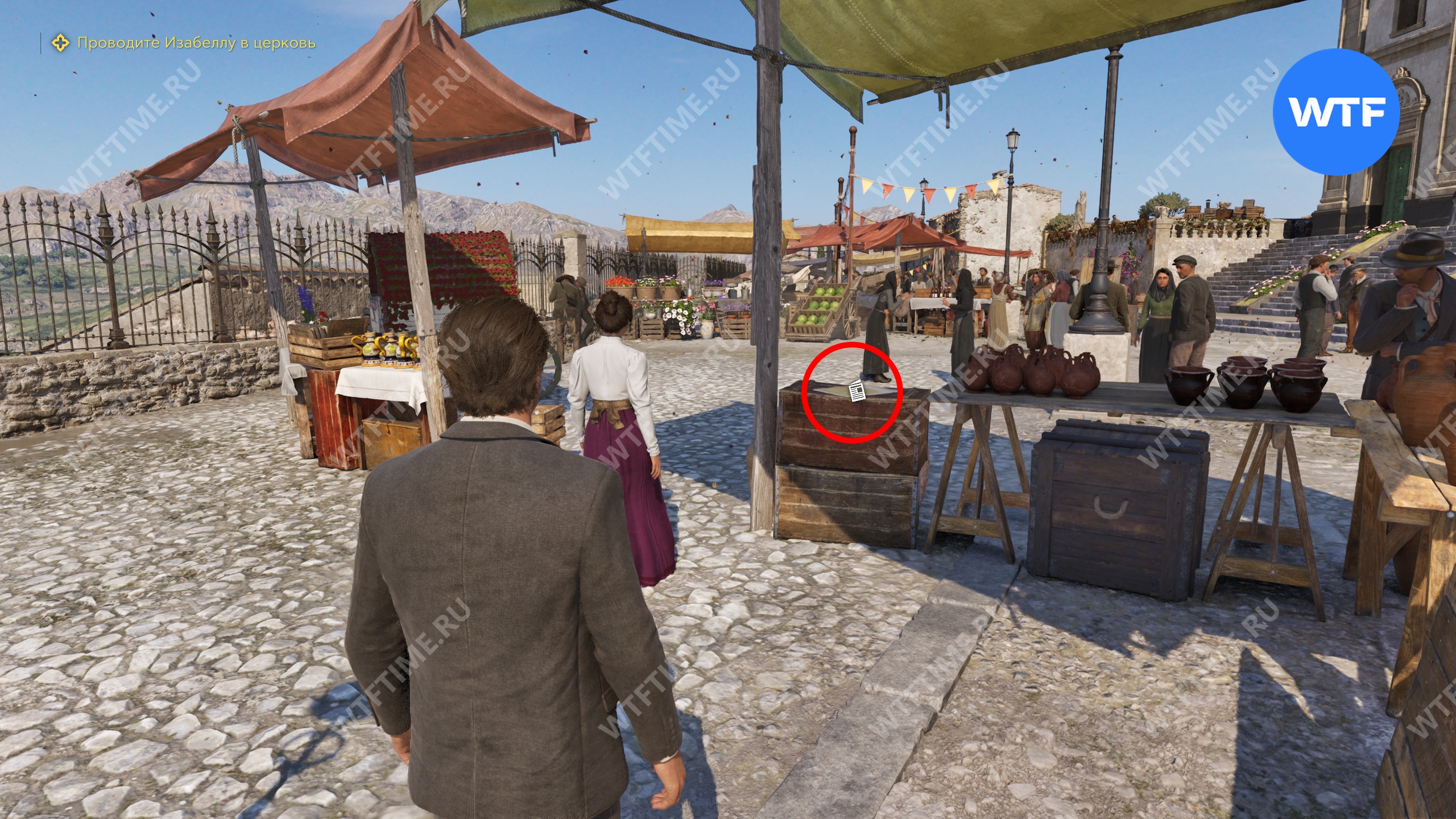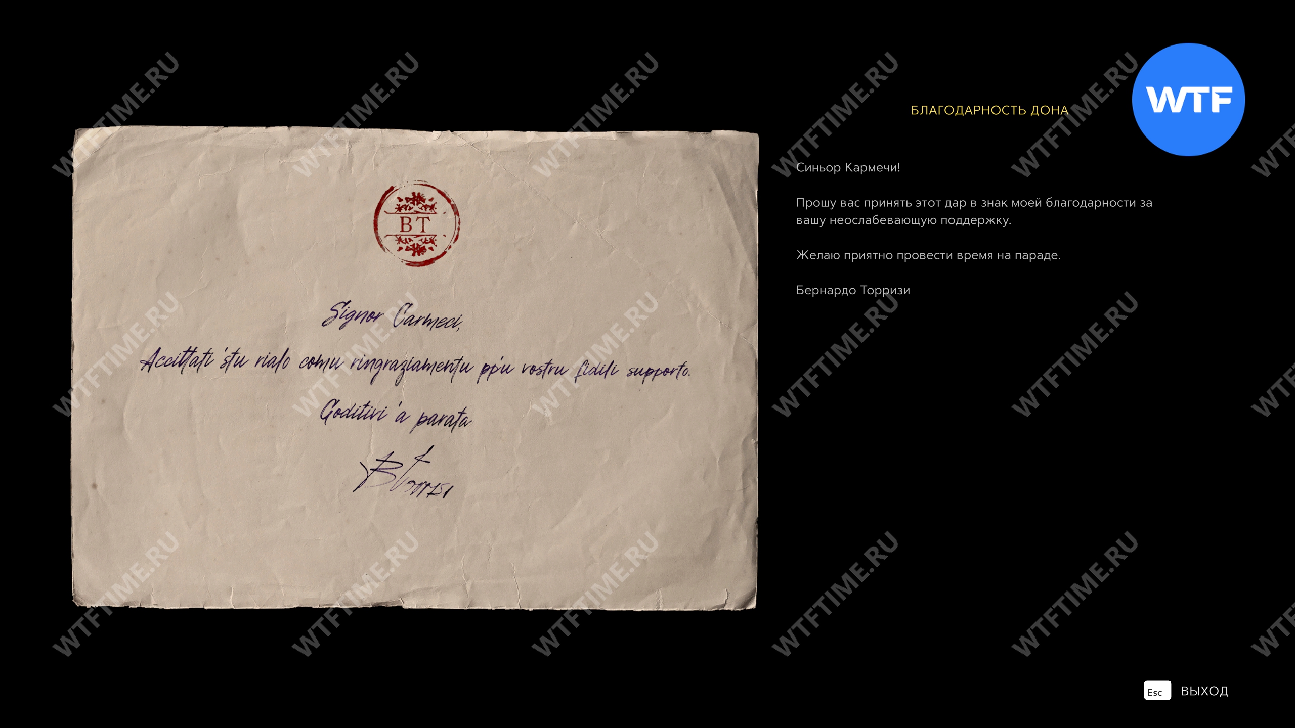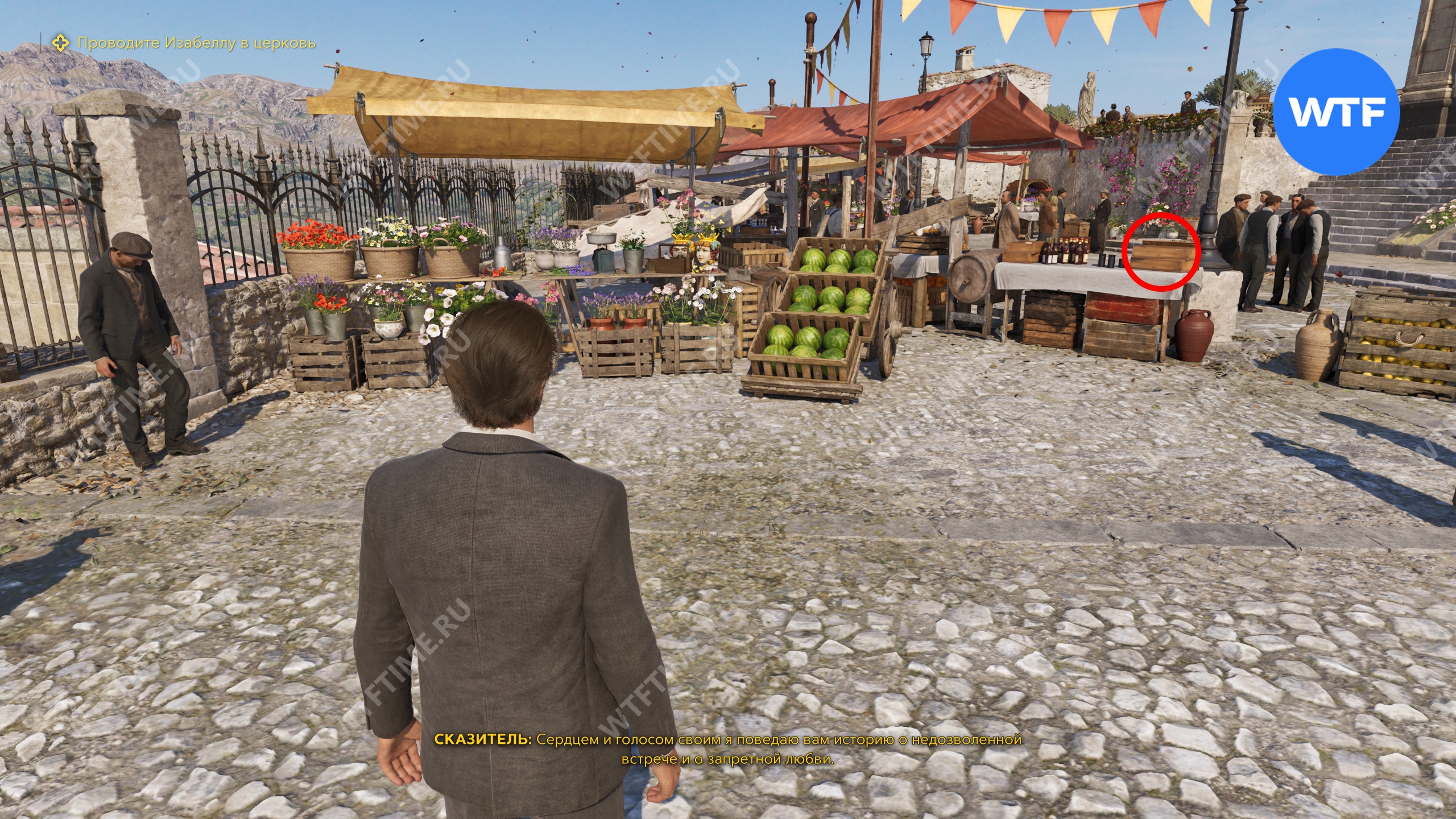 Затем идите в сторону тележки с арбузами и заберите записку «Благодарность дона» из ящика с вином справа.