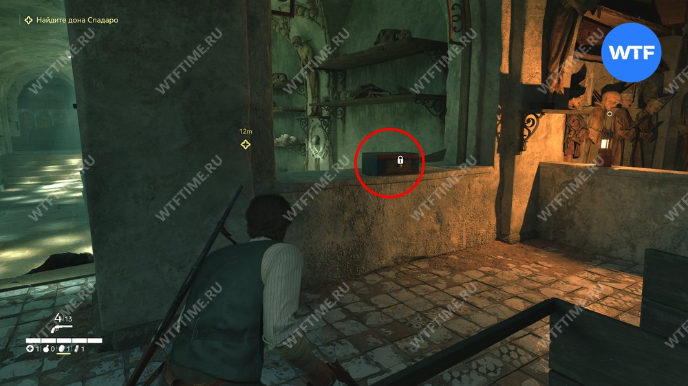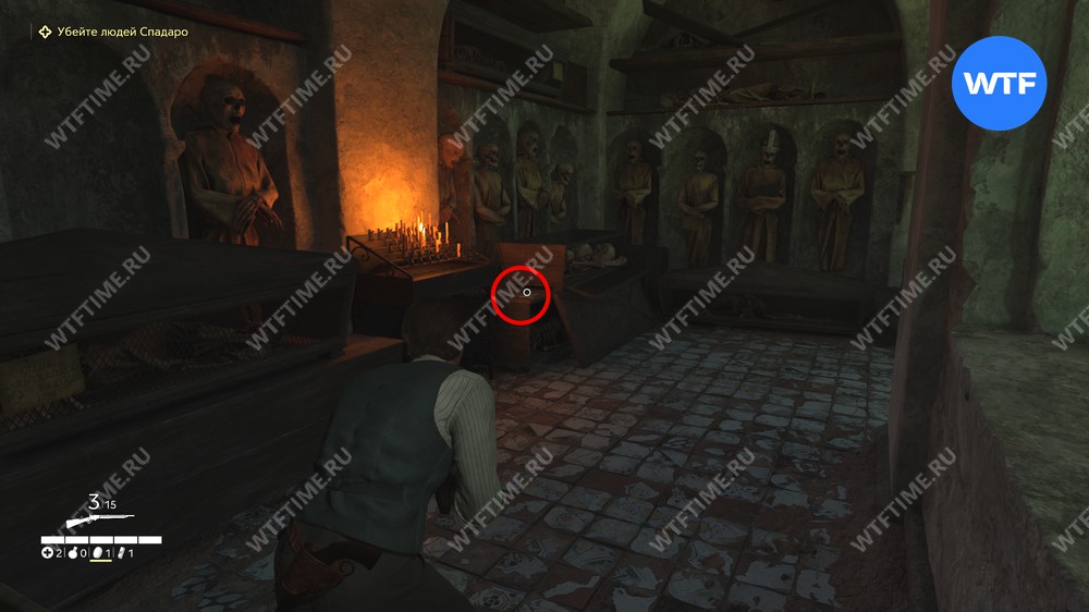 Выбравшись из воды, вы окажетесь в небольшой часовне, которую вам нужно зачистить от людей Спадаро. В левом ближнем ко входу углу на столе можно найти еще одну тринакрию.