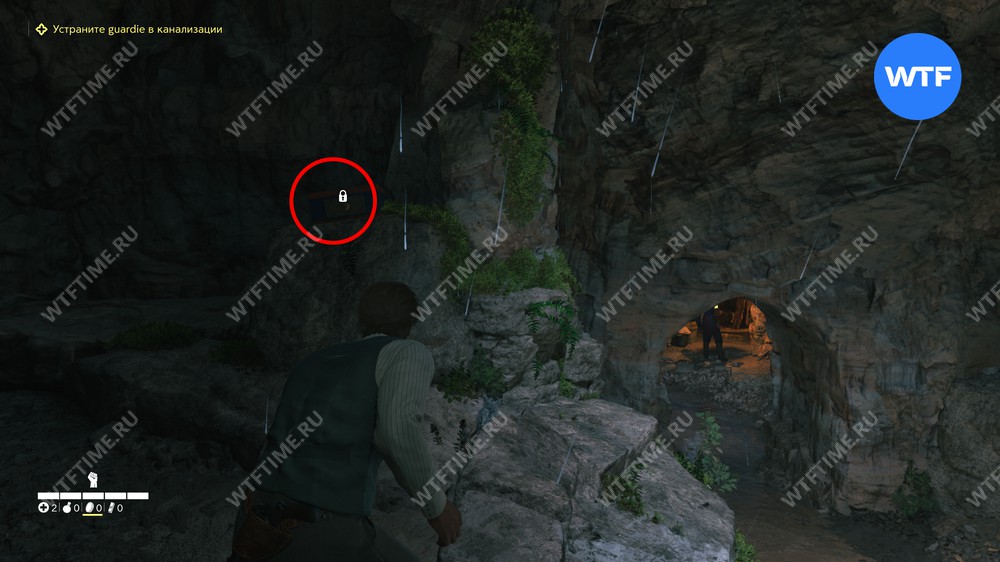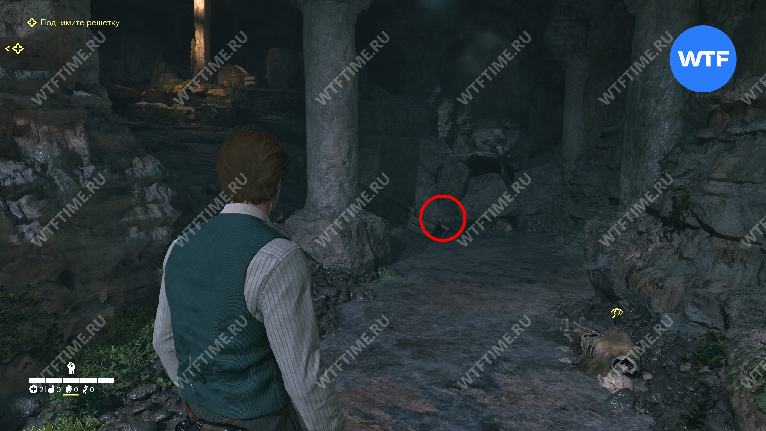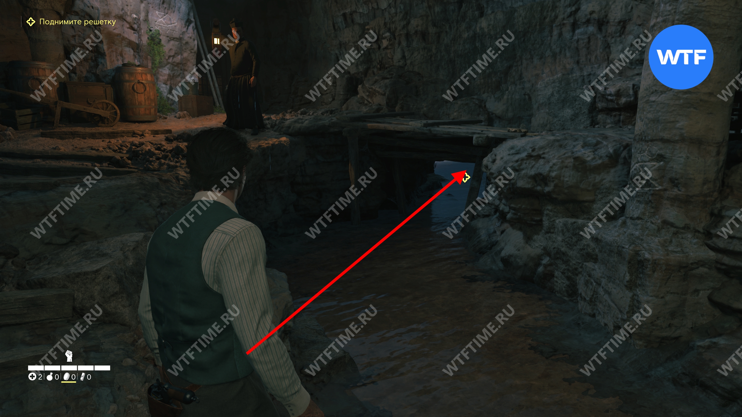 Продолжайте идти за священником, пока не упретесь в запертую решетку, которую он попросит вас поднять. Для этого вам придется спуститься в воду и пройти под небольшим мостиком.