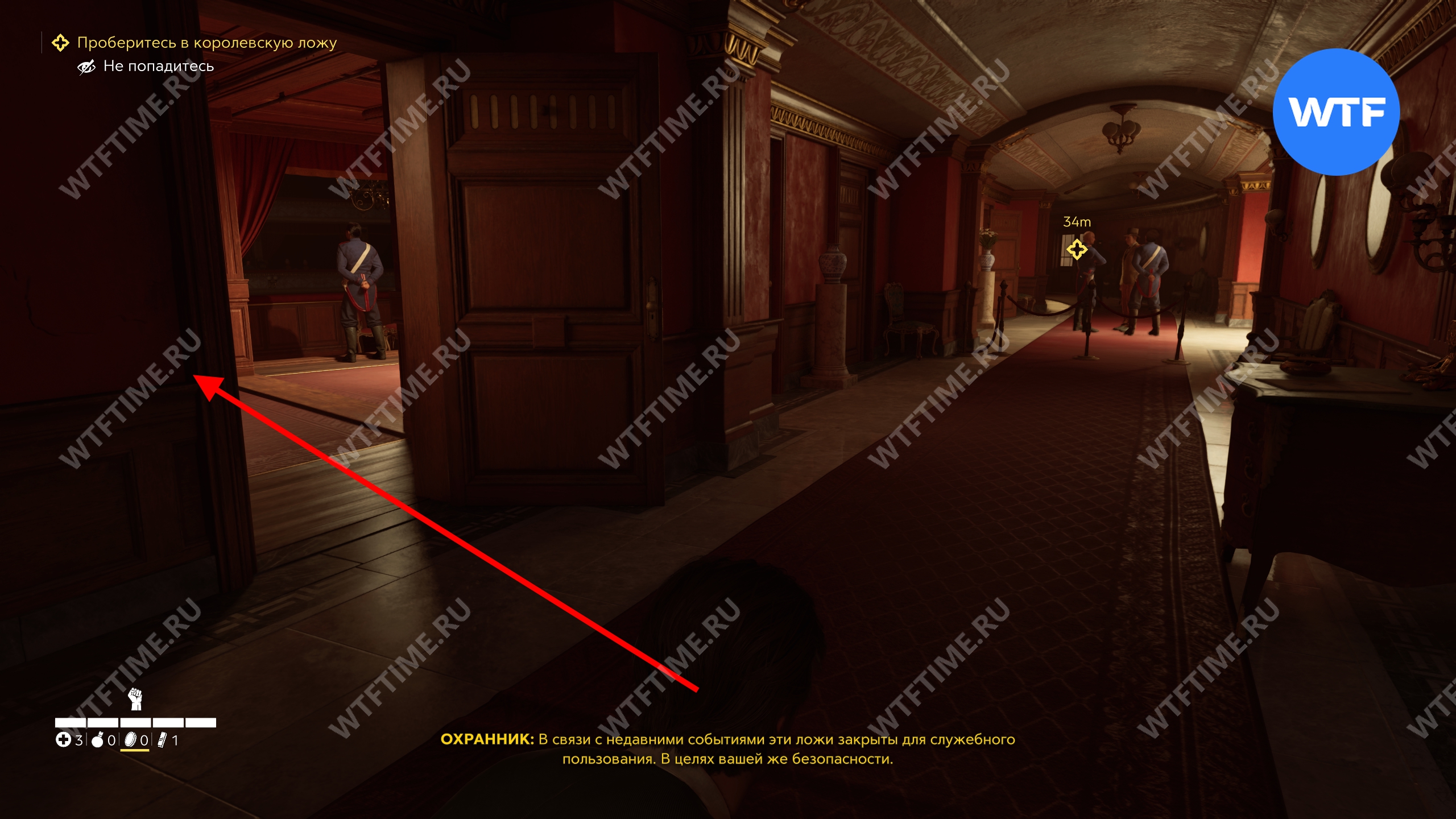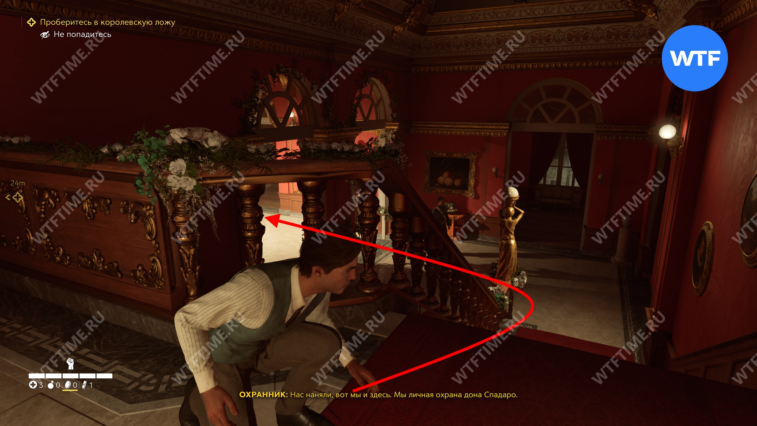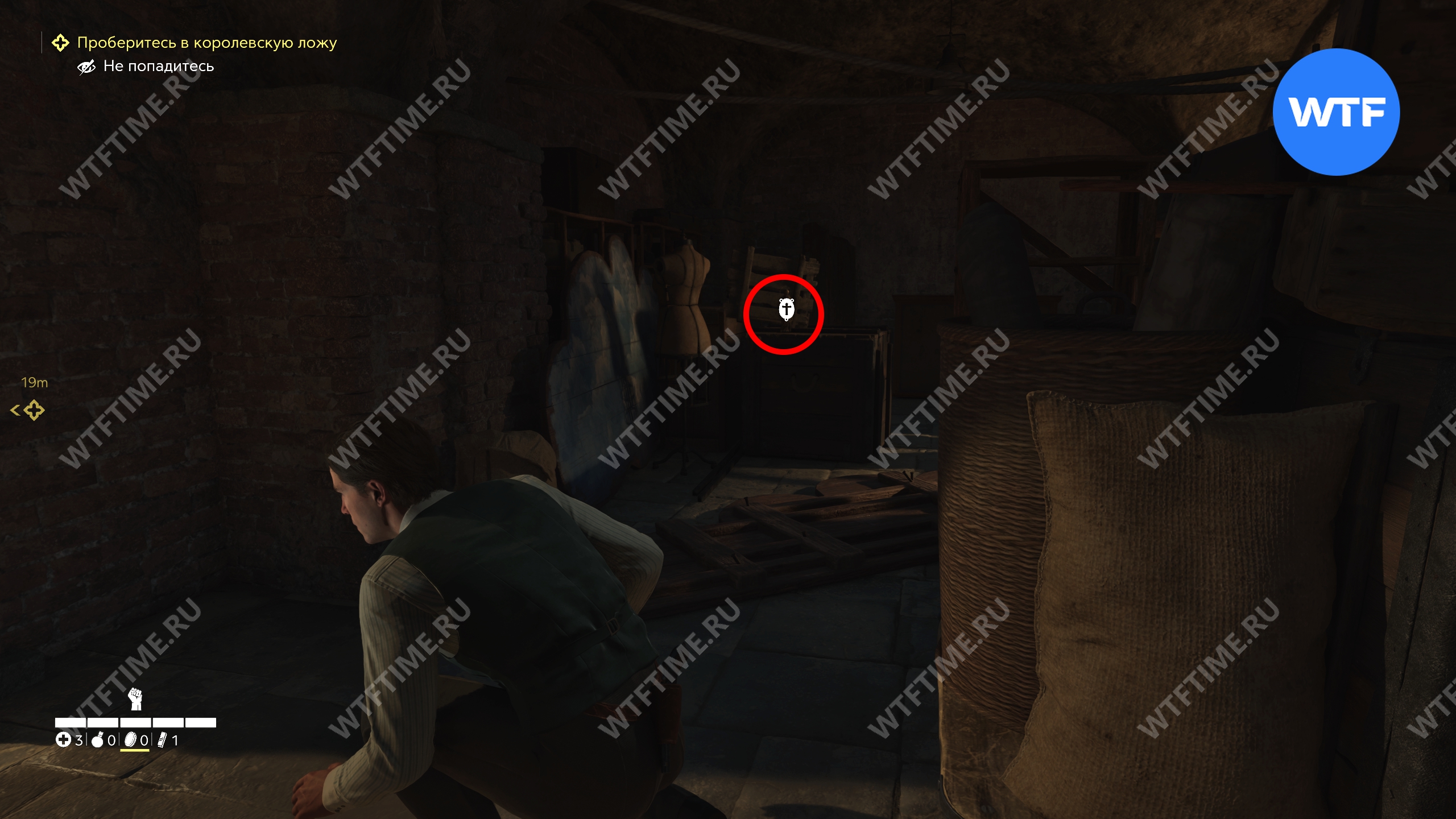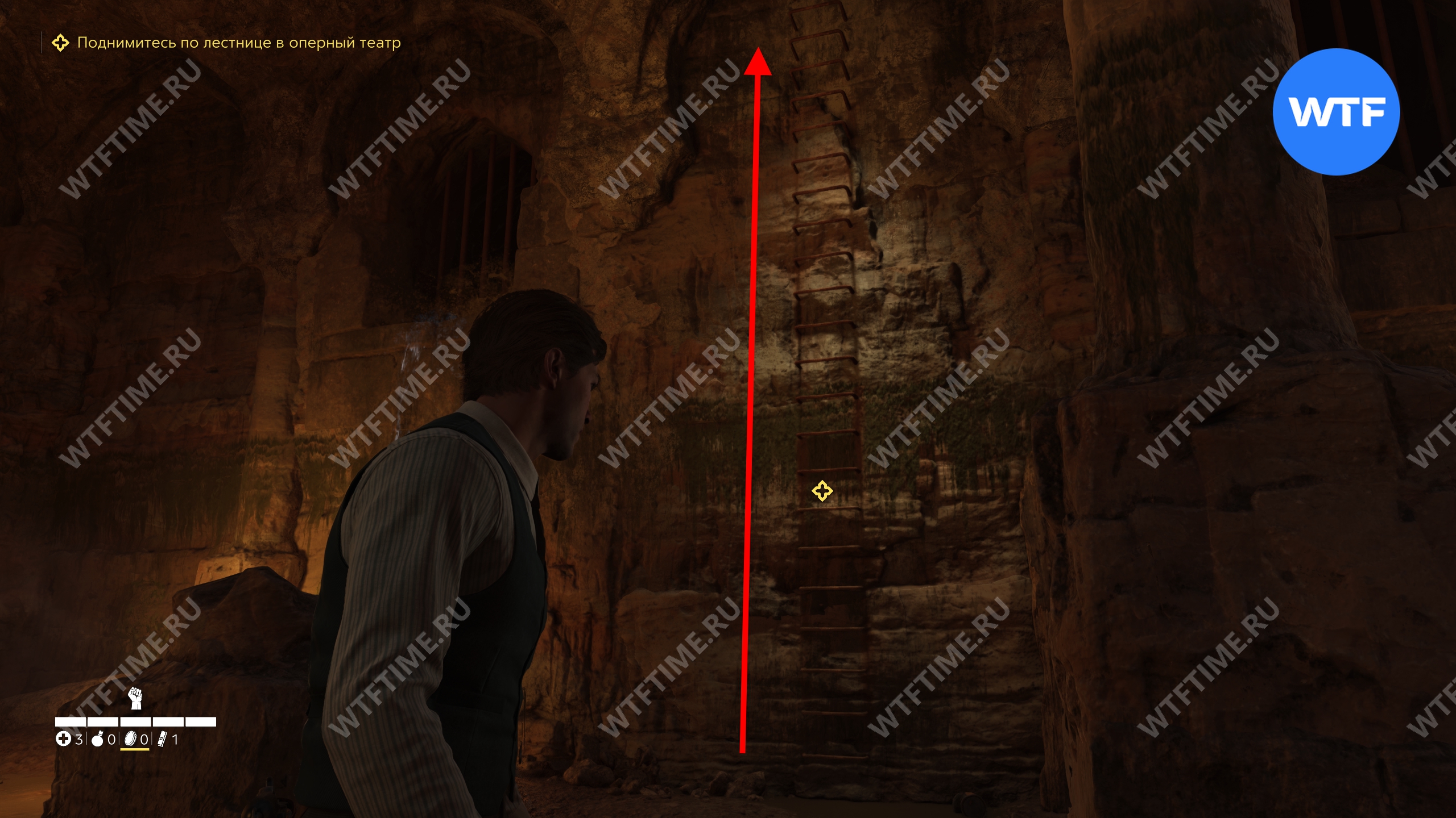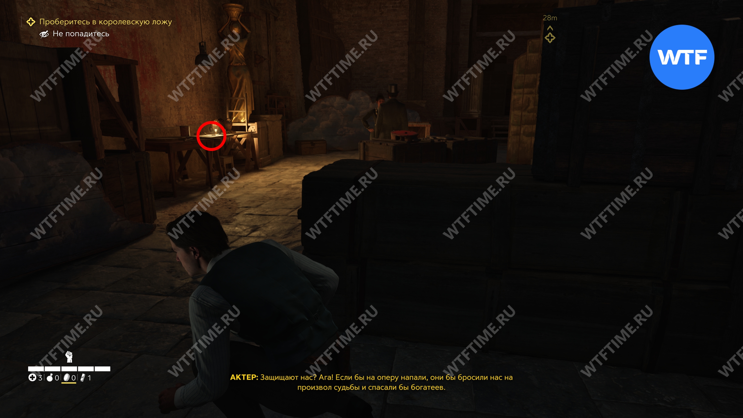 Зачистив канализацию от охранников, поднимитесь по длинной лестнице в оперный театр. Затем вы должны будете подвинуть тележку, чтобы пройти дальше. Сразу после этого посмотрите направо и подберите бусину «Paziente», повышающую точность прицеливания.