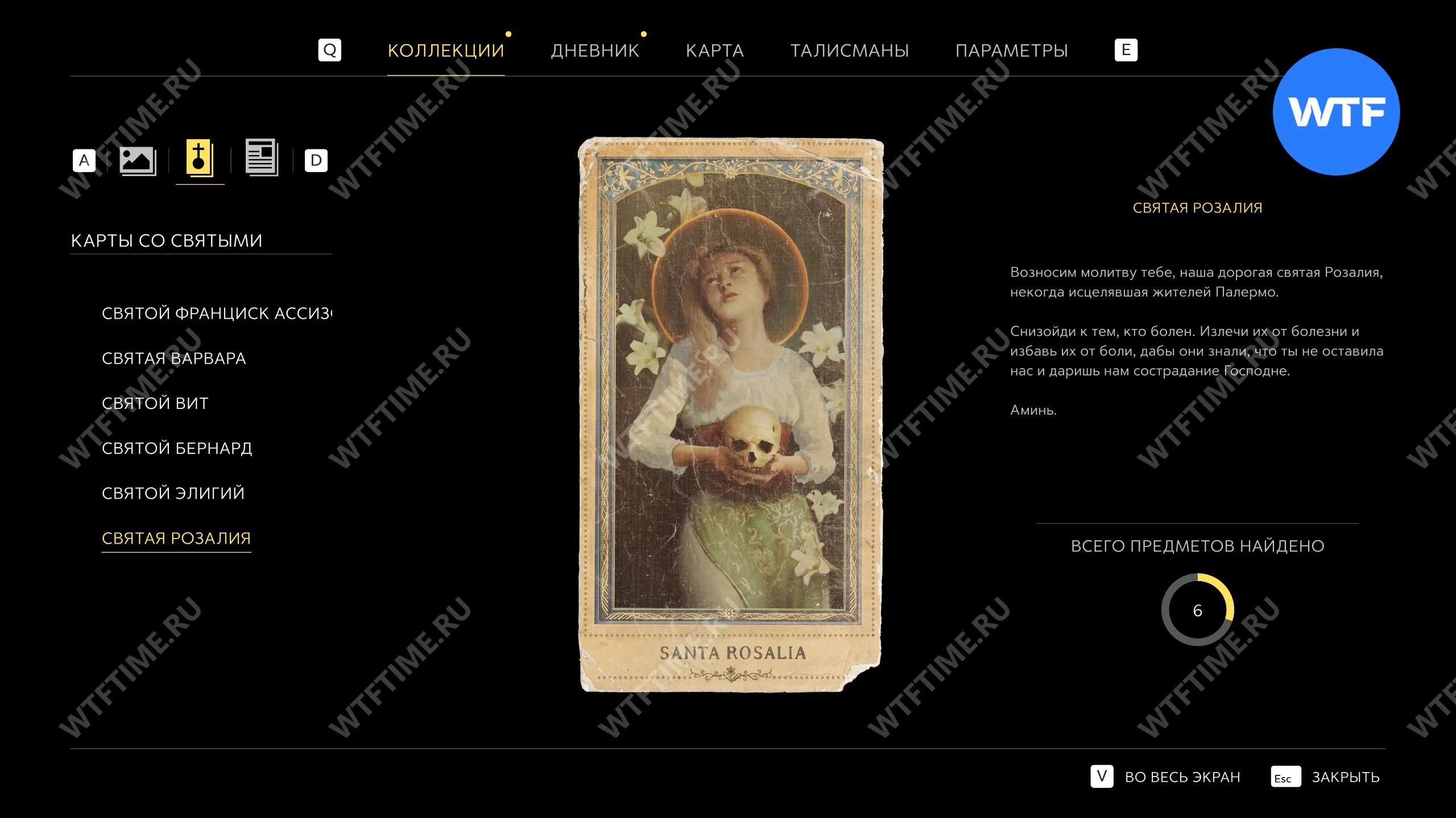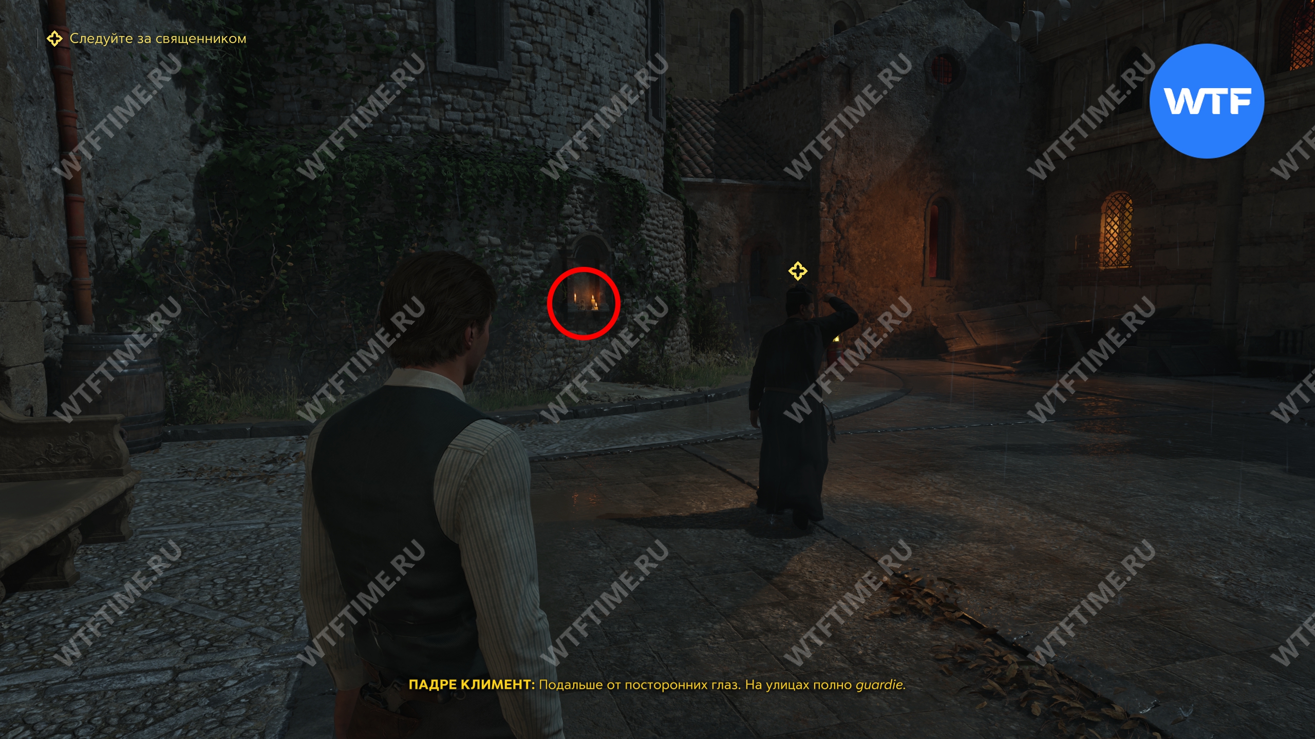 Этим человеком окажется падре Климент. Как только завершится кат сцена вашей встречи с ним, посмотрите налево и заберите карту со святым «Святая Розалия» с небольшого алтаря.