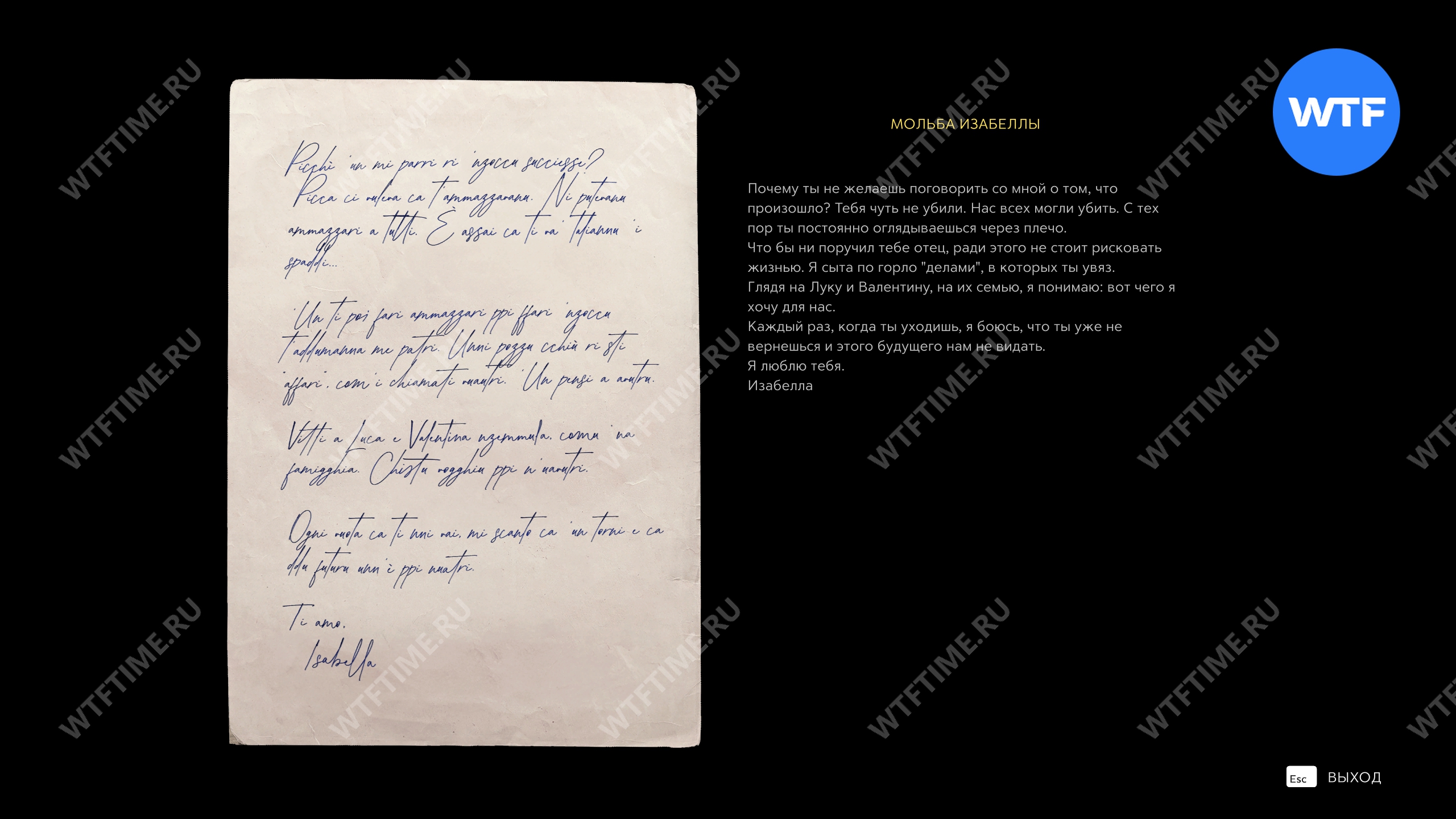 После выхода от дона Торризи запустится еще одна кат сцена, в которой Энцо повстречается с Изабеллой. Она в очередной раз попросит его не лезть под пули, а также сообщит неожиданную новость.
