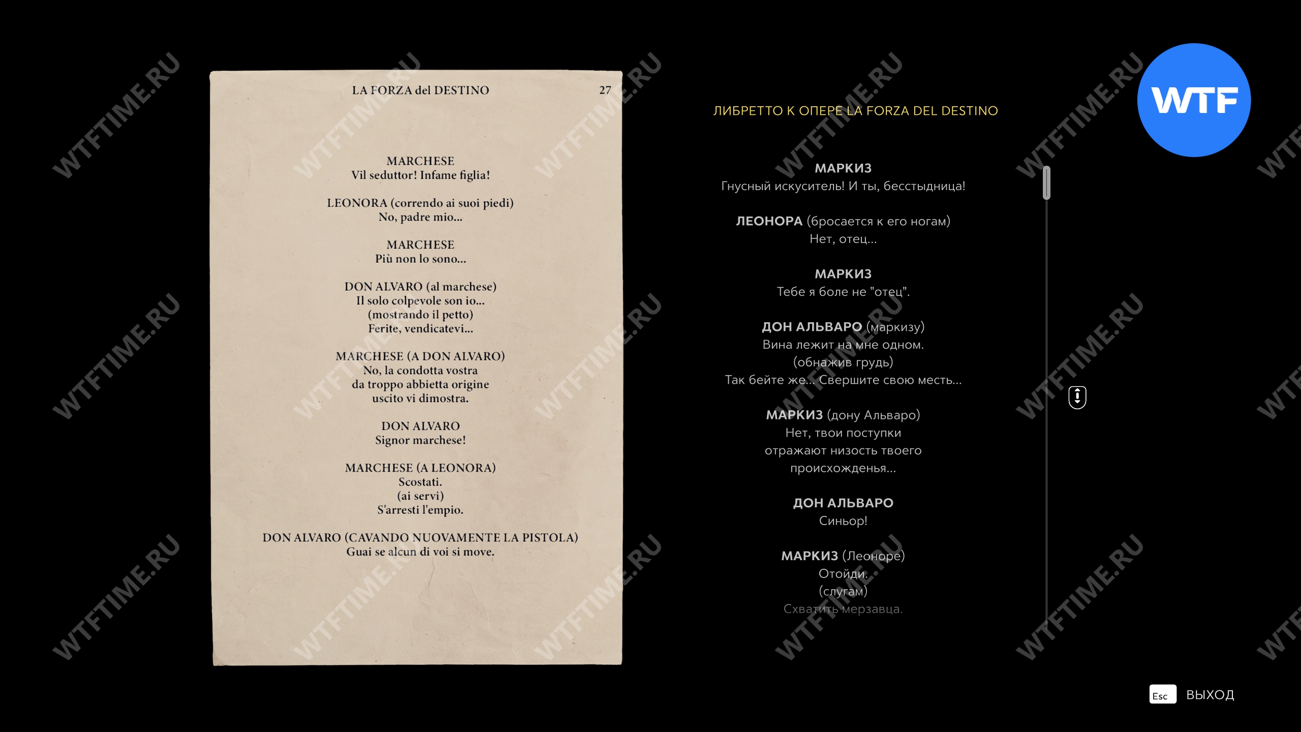 Поднимитесь по лестнице и в следующей комнате загляните за деревянную ширму напротив входа. За ней вы найдете фигурку загадочной лисицы, а на столе рядом записку «Либретто к опере La forza del destino».