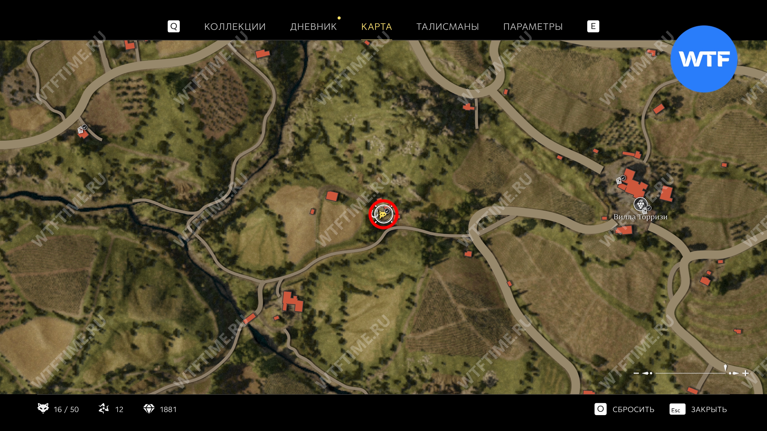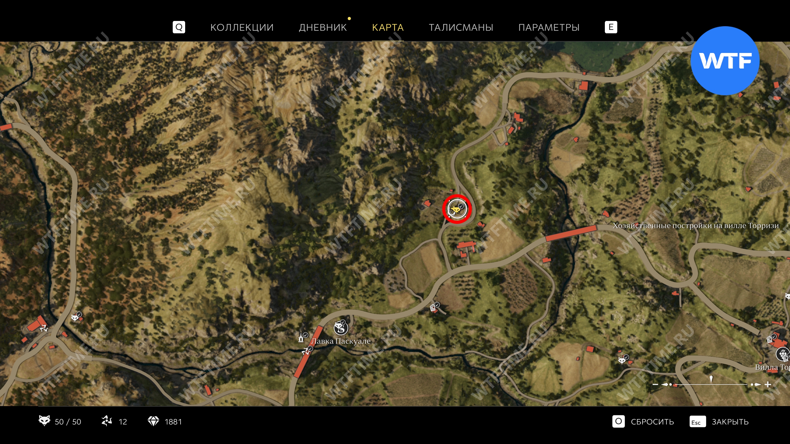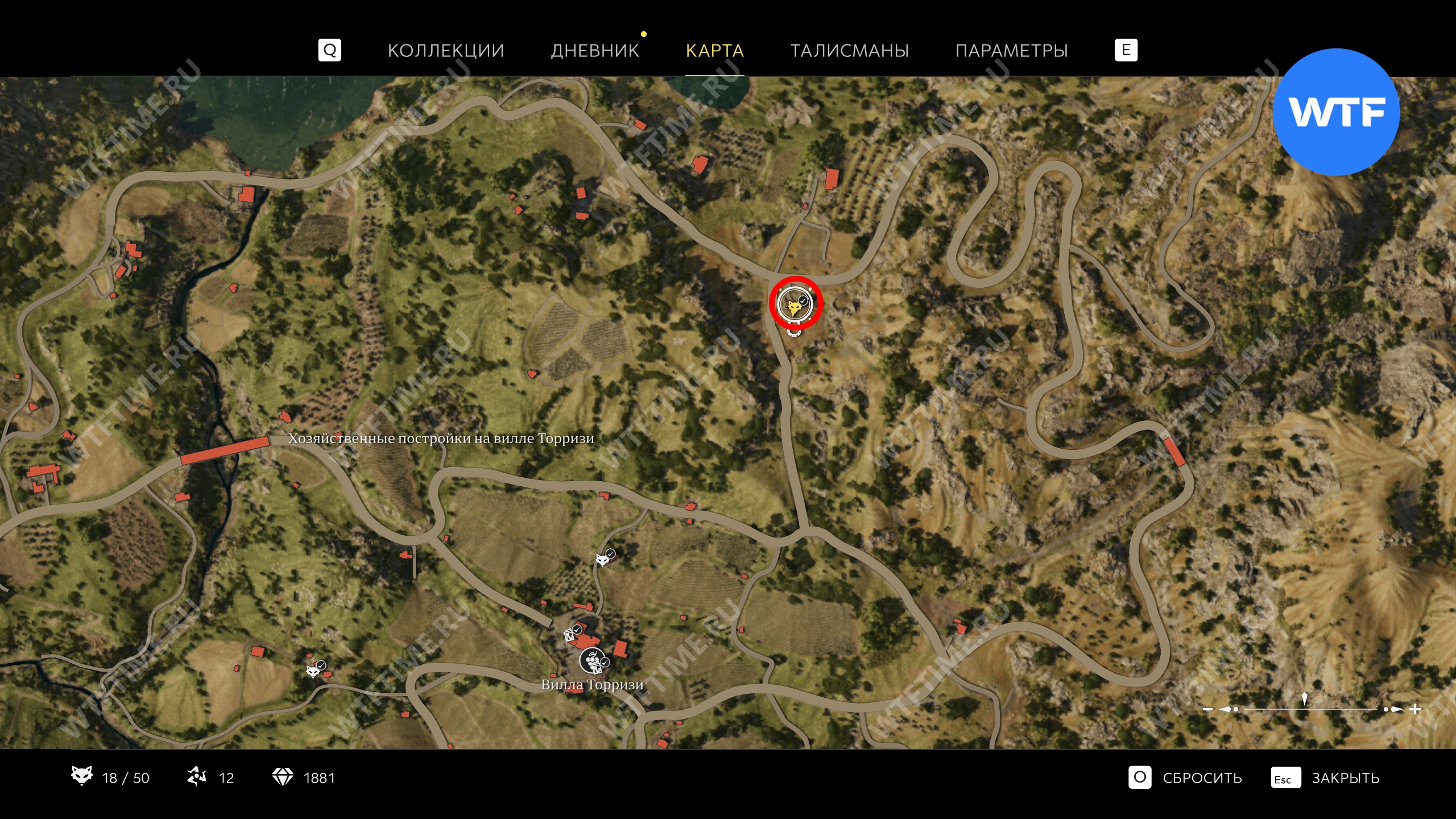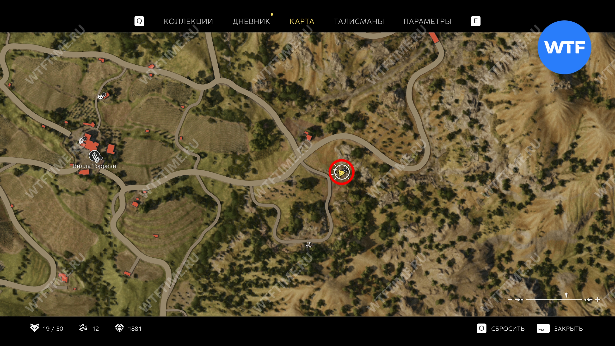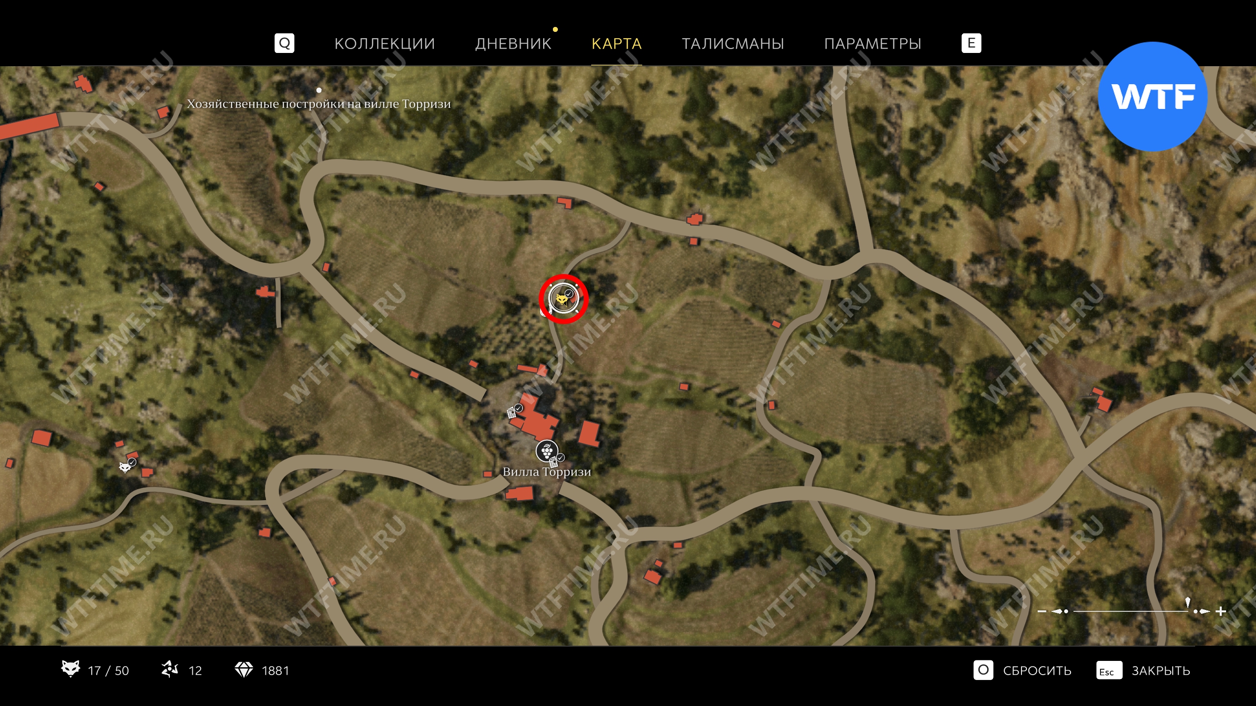 От Виллы Торризи езжайте по дороге на запад до ближайшей группы домов. Затем поднимитесь по небольшому склону справа и заберите лисицу, стоящую на каменной террасе справа от дома.