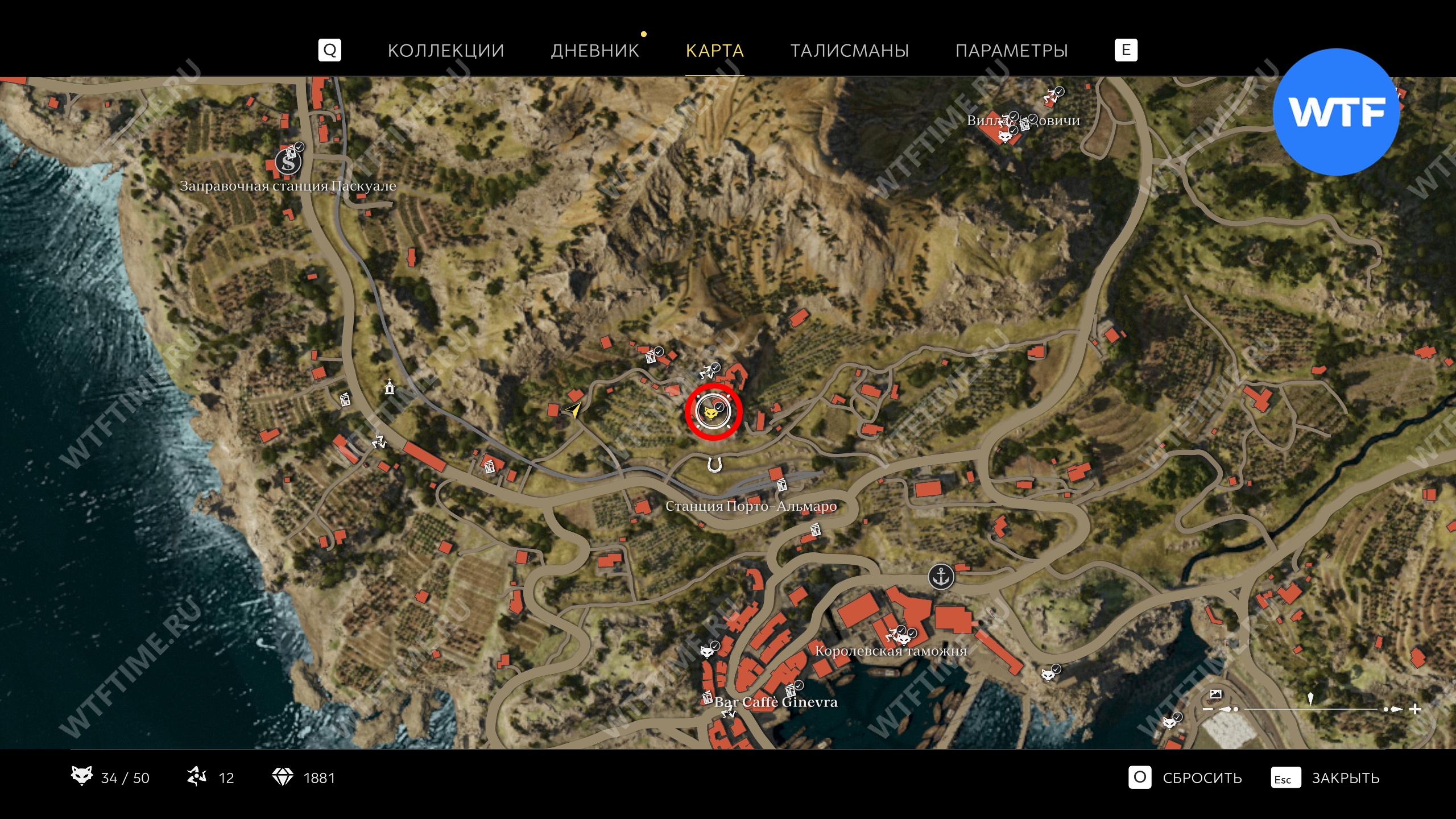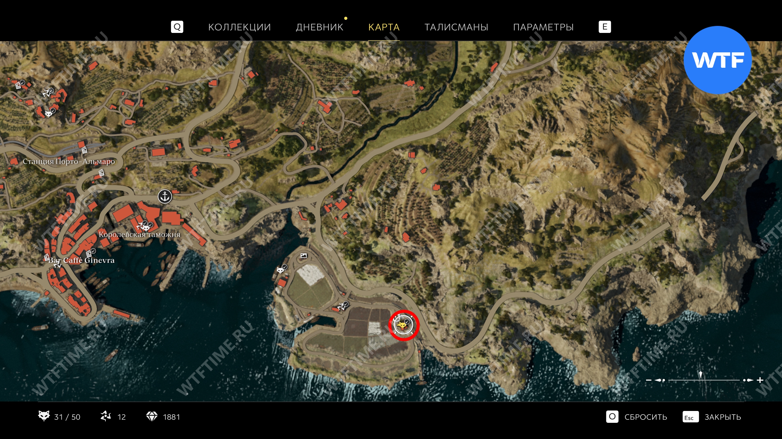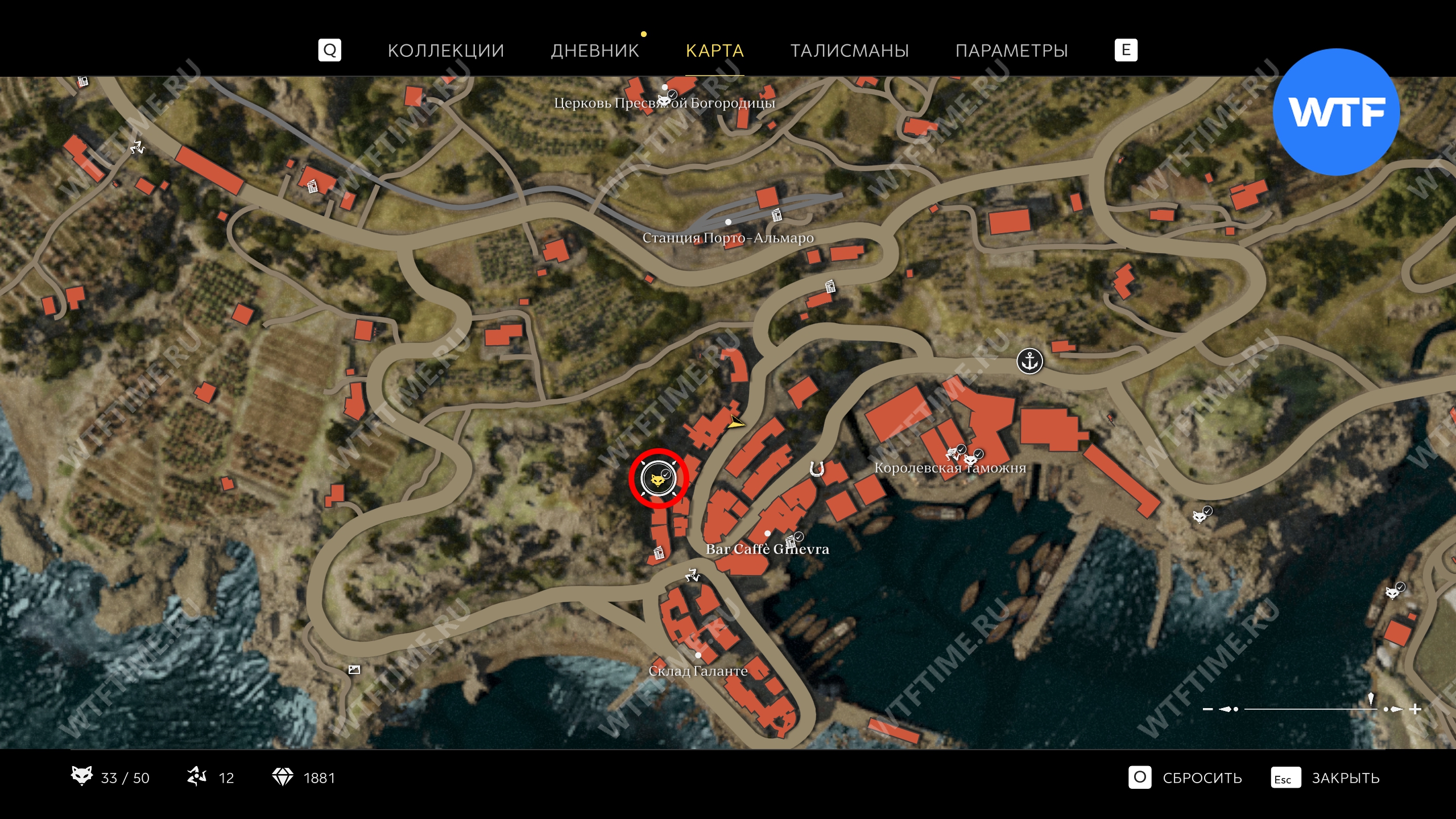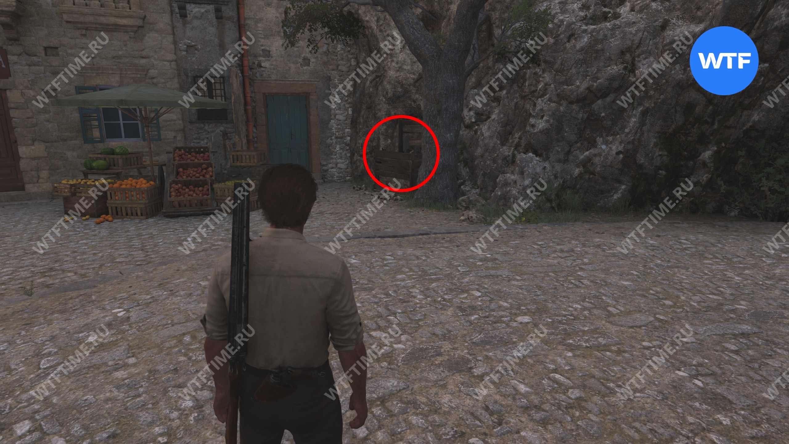 Следующую фигурку вы найдете в западной части Порто-Альмаро. Она лежит в деревянном ящике справа от фруктовой лавки. Вход в нужный переулок находится там, где стоит метка игрока на скриншоте ниже.