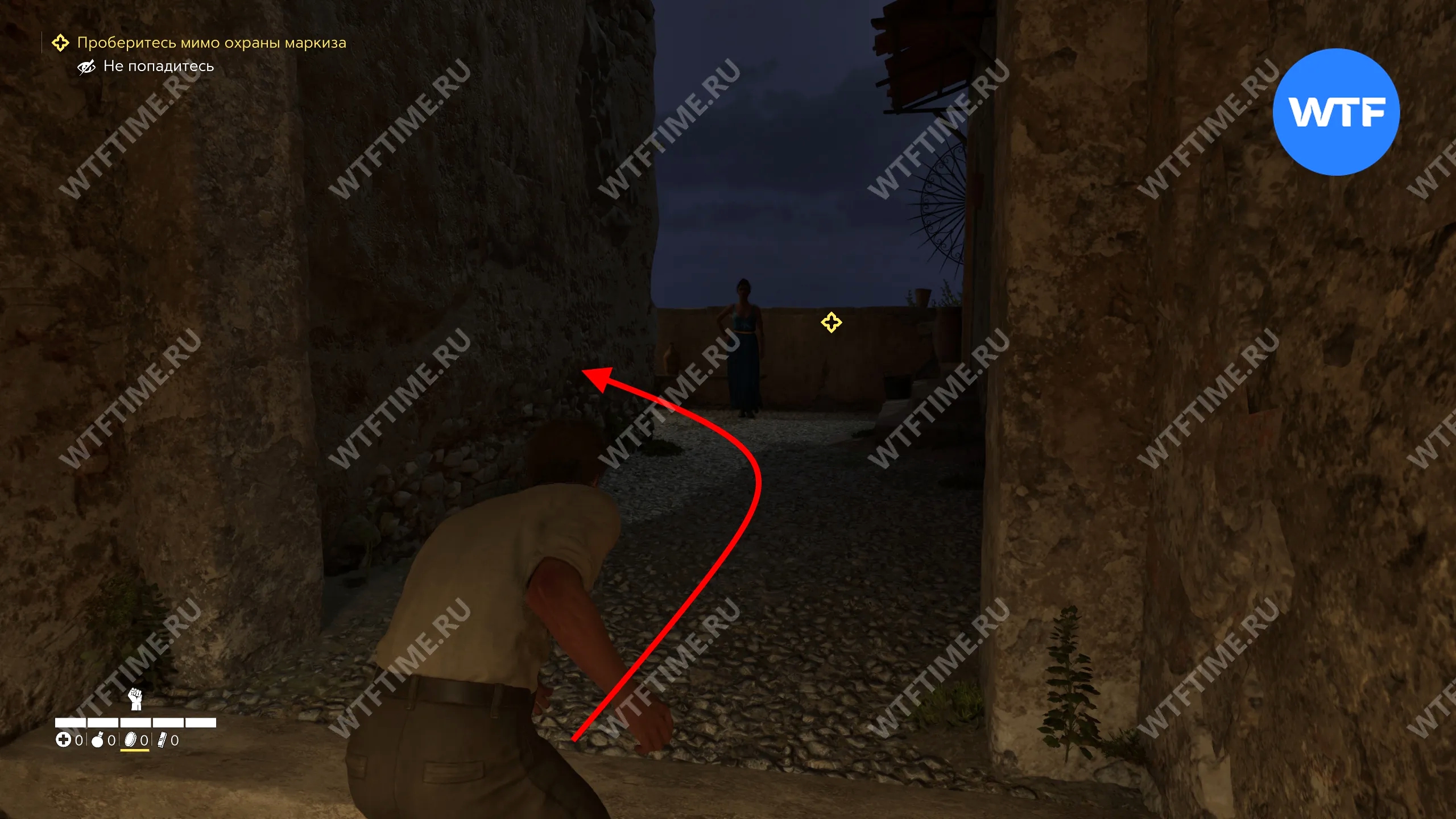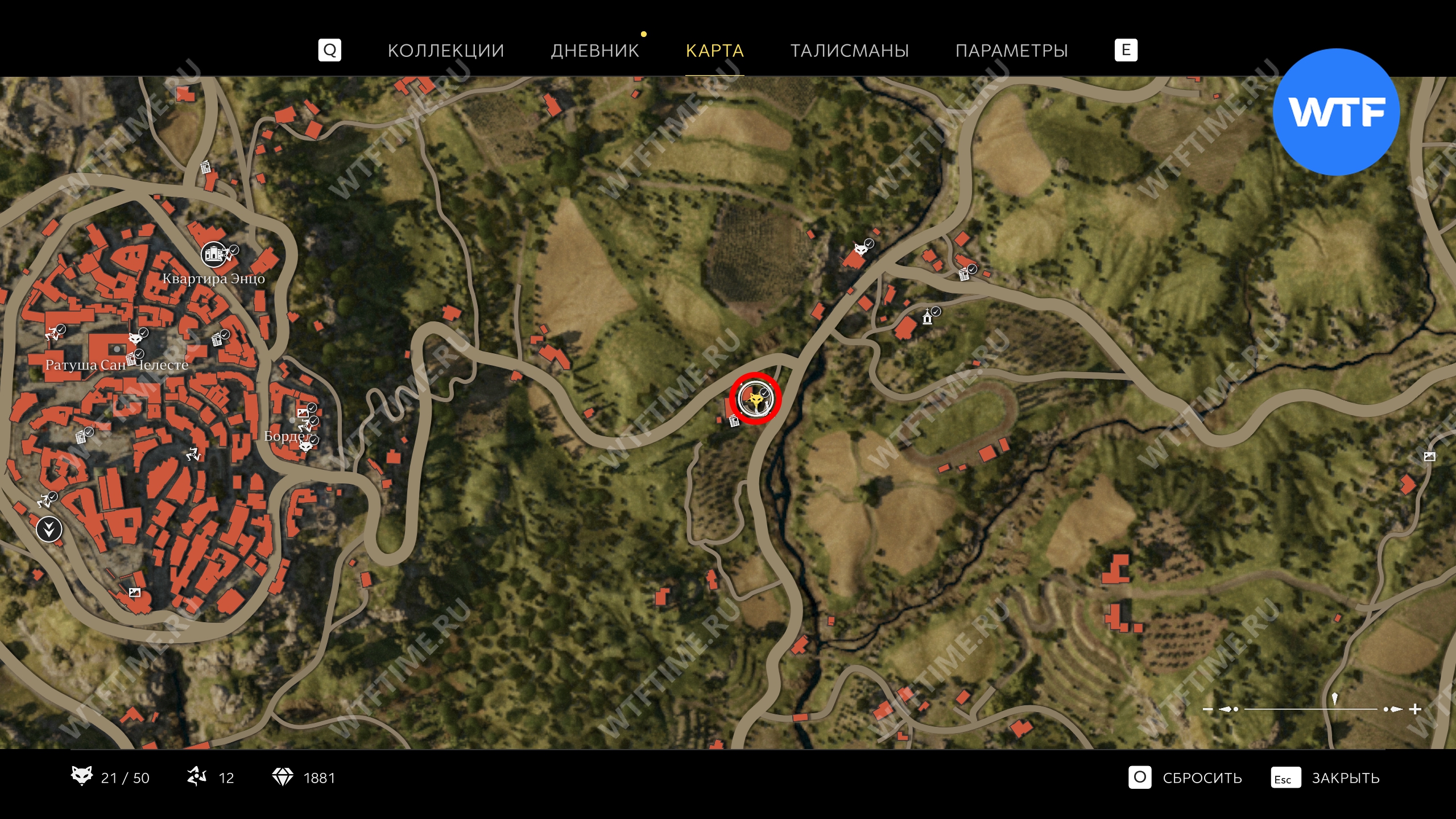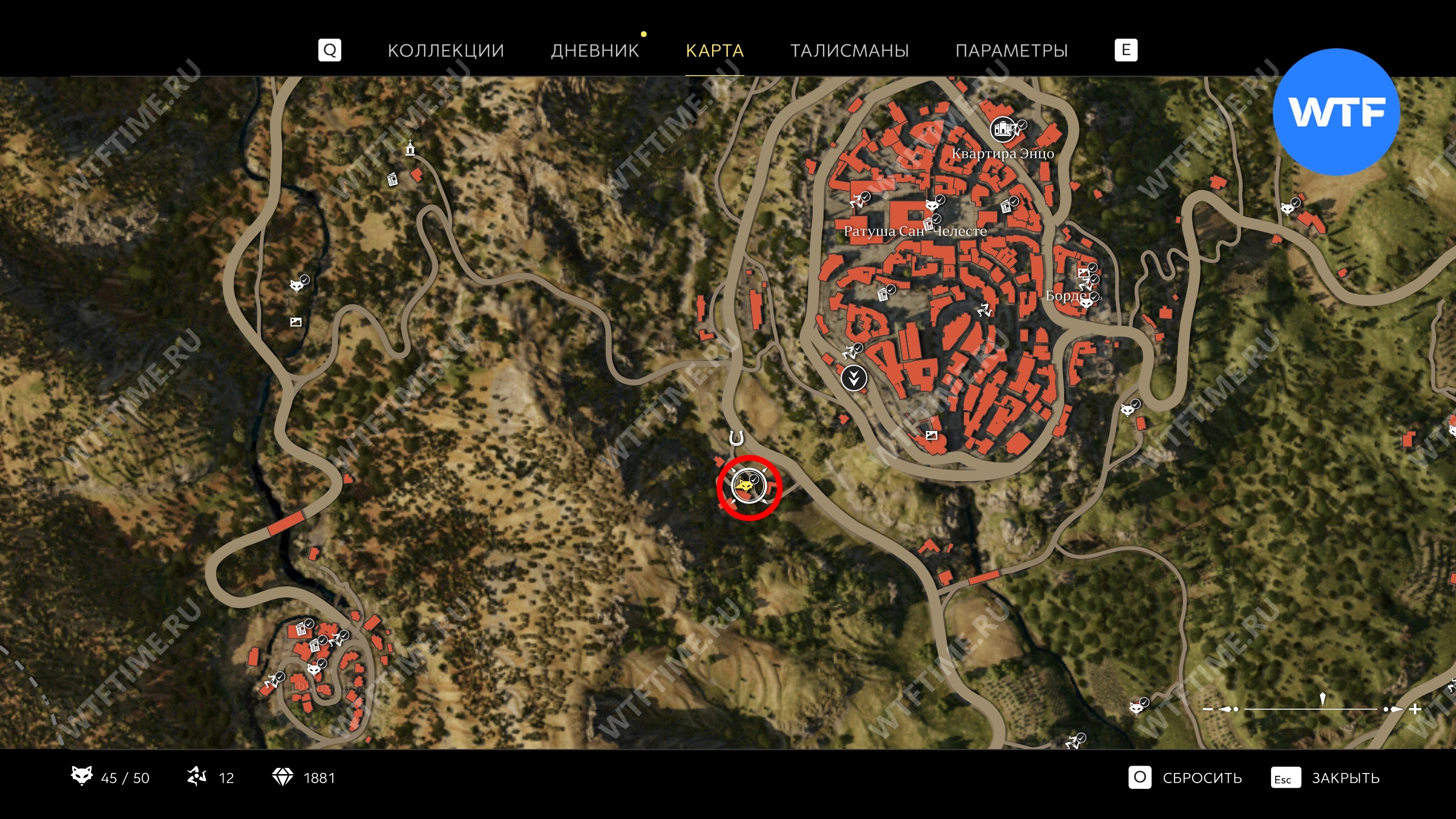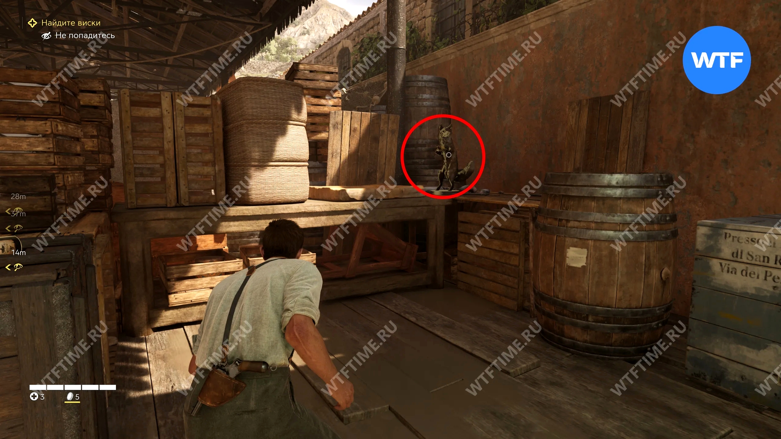 Следующую фигурку вы найдете в западной части Порто-Альмаро. Она лежит в деревянном ящике справа от фруктовой лавки. Вход в нужный переулок находится там, где стоит метка игрока на скриншоте ниже.